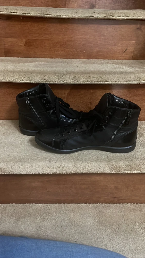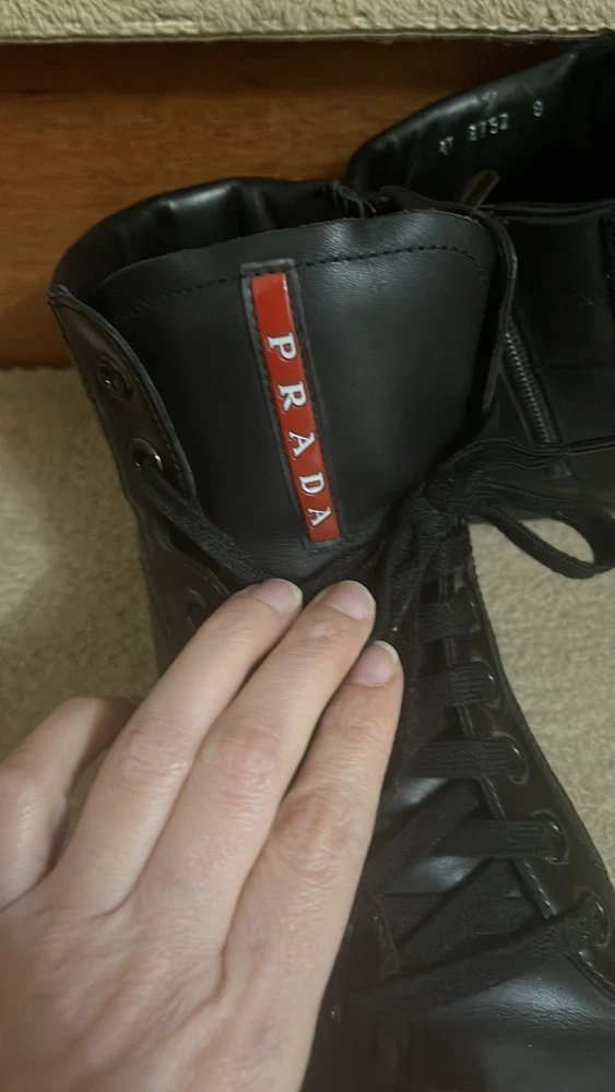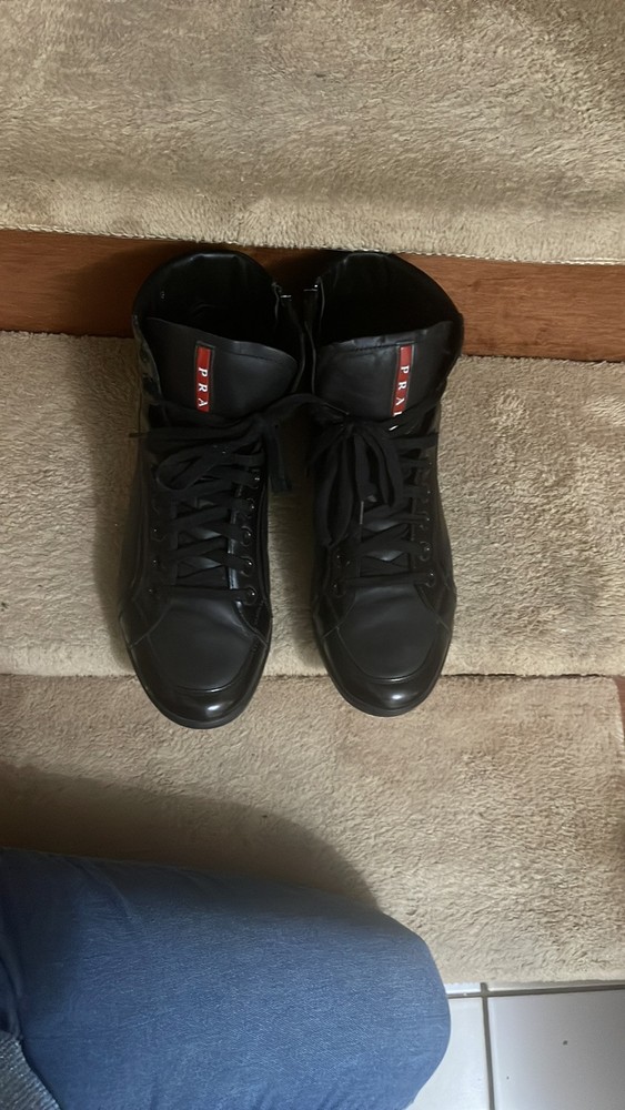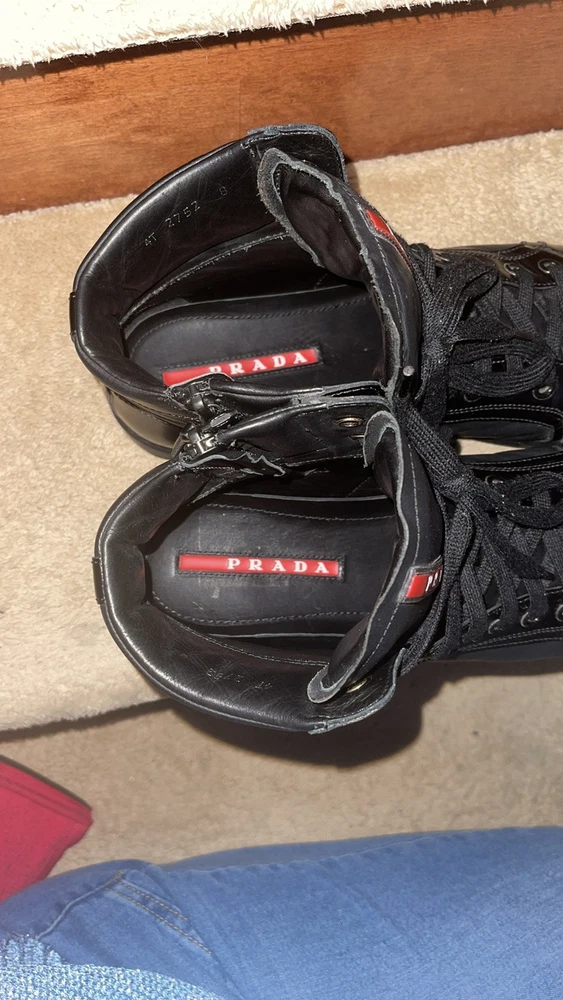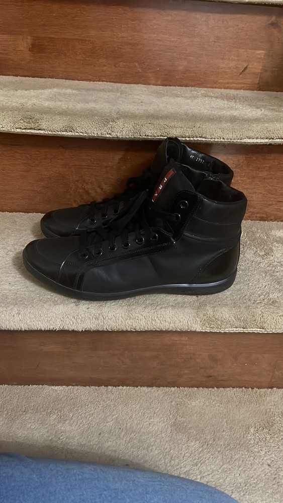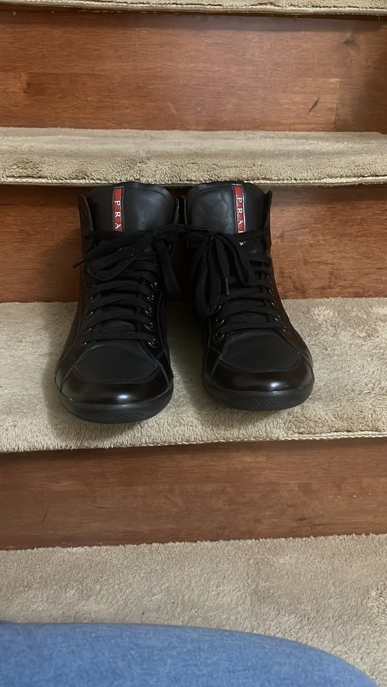 These Prada high-tops are a game-changer—luxurious leather, flawless stitching, and unbeatable comfort. The sleek black and red design adds a bold touch, while the ankle support makes them perfect for all-day wear. A must-have for any sneaker lover looking for premium quality and style.