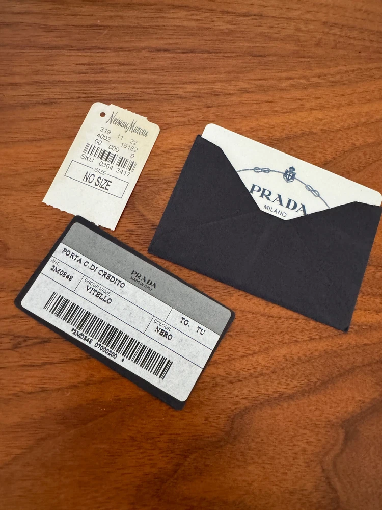 Prada Mens Black Vitello Leather Bifold Wallet NEW in Box Neiman Marcus tag along with Prada info
