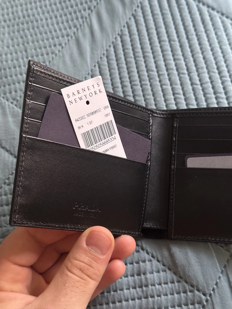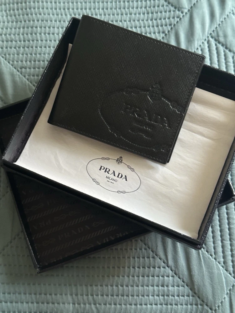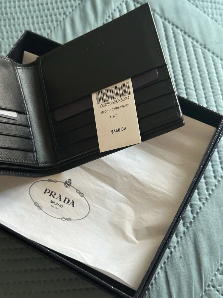 Year Manufactured:2020-2029Material:LeatherVintage:NoPattern:SolidColor:BlackCountry/Region of Manufacture:ItalyDepartment:MenPersonalize:NoAccents:LogoHandmade:NoType:WalletStyle:BifoldBrand:PRADA