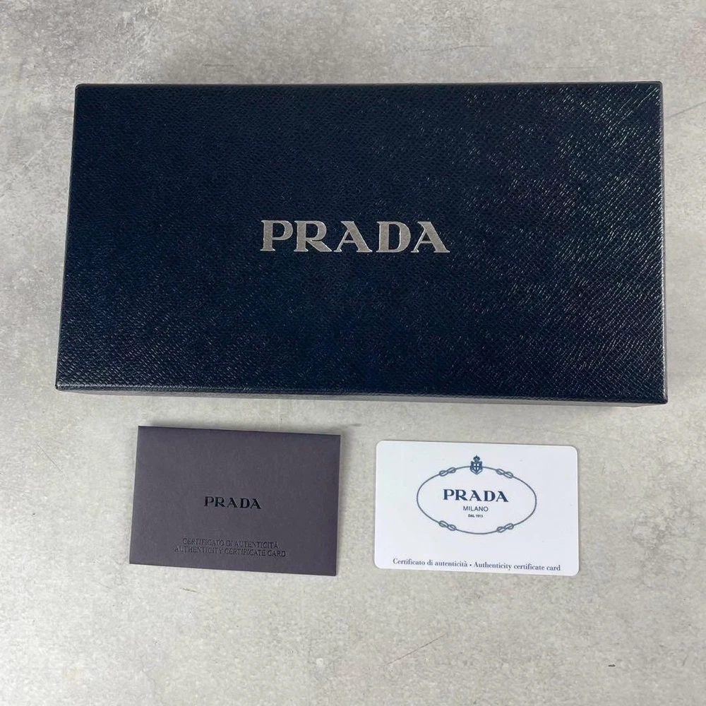 Prada Saffiano Leather Long Wallet with Metal Logo and Round Zipper