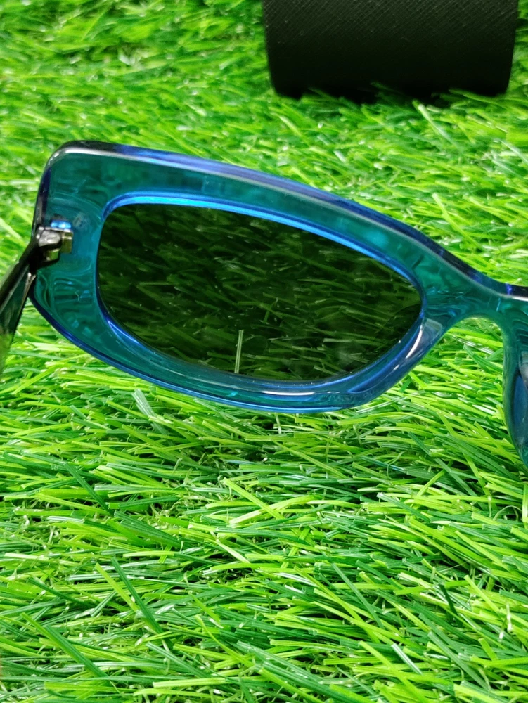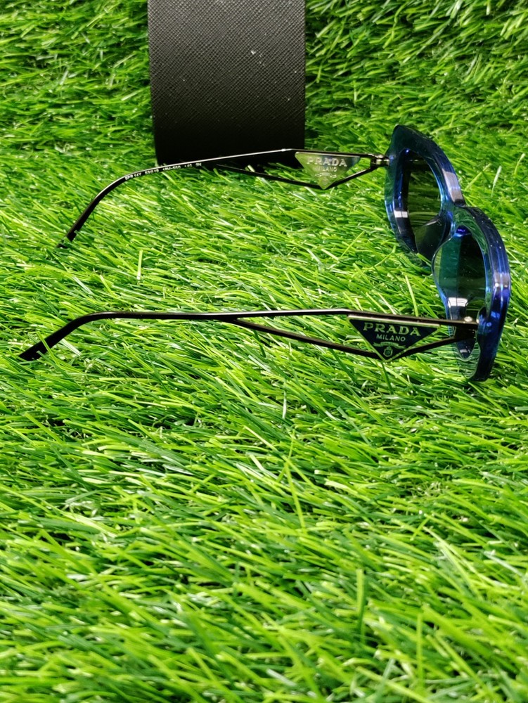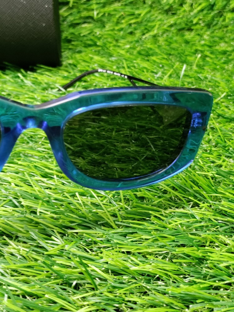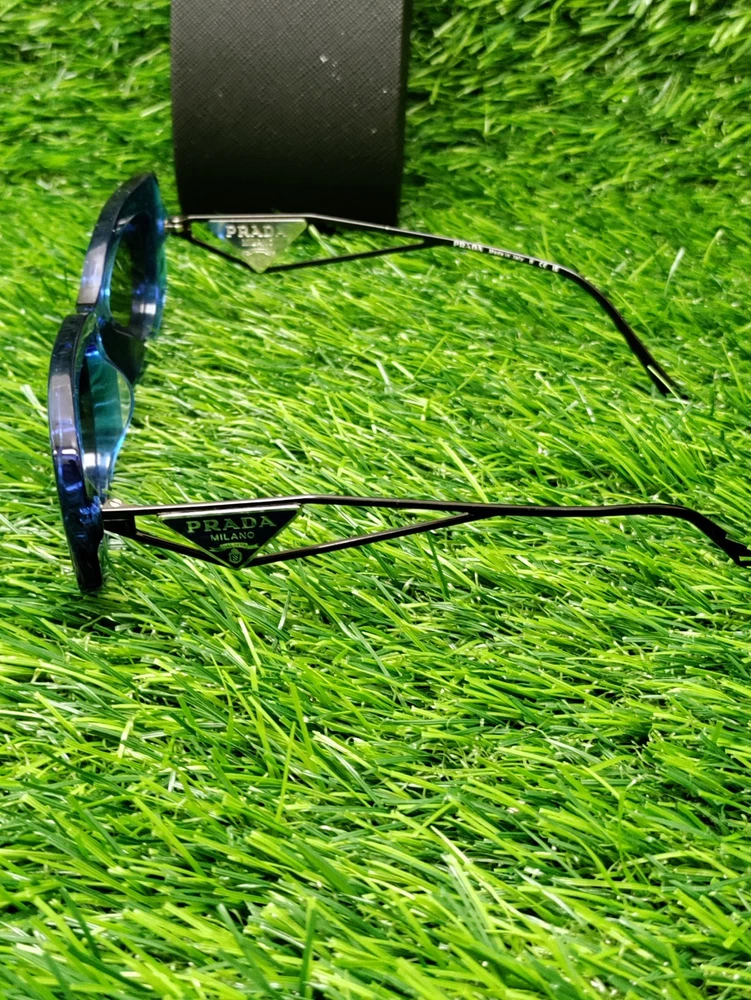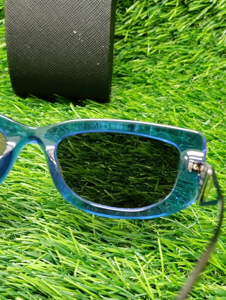 Has some wear. These are PRADA sunglasses in a geometric style with a frame color of Crystal Electric Blue and dark grey lenses. The model number is PR14YS-18M5S0-53, made of plastic in Italy. The sunglasses are unisex. Please check pictures for condition. We do our best to assure that you receive your order correctly and promptly but sometimes we can make an honest mistake, please contact us directly if you are not satisfied with your order for any reason. If your order is not as described we will cover all the return shipping costs and issue a prompt refund once it is receive. All items must be sent back in their original condition with all parts or pieces along with the original packaging. If any order is sent back and is as described and there is nothing wrong with it, not in the original packaging or missing parts or pieces, you will be responsible to pay the return shipping costs and there will be a 35% restocking fee to help recoup some of the original shipping and handling costs, Ebay and Paypal fees no exceptions