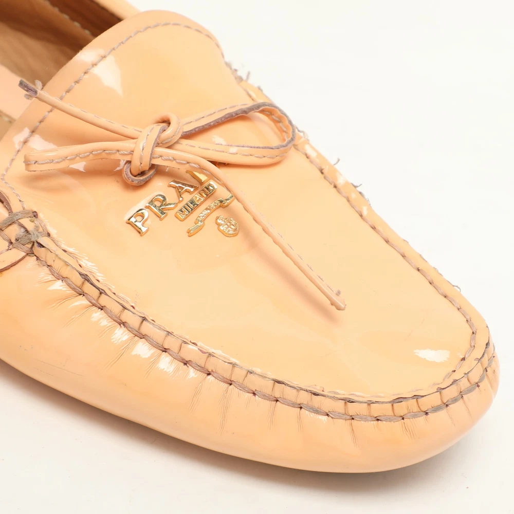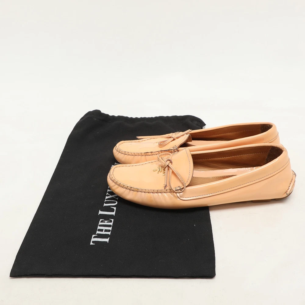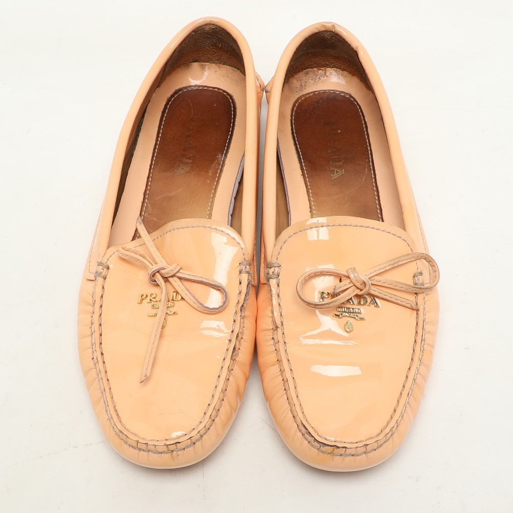Refresh your wardrobe with these glossy peach patent leather loafers from Prada, featuring a clean silhouette and subtle logo accent. Ideal for springtime styling or adding warmth to neutral tones, they offer a refined pop of color with everyday ease.Certified by The Luxury Closet - This item has gone through a detailed authentication process overseen by our experts. We offer a lifetime guarantee of authenticity on all our items. Import duties, taxes and charges are not included in the item price. These charges are the buyers responsibility. Please check with your country’s customs office to determine what these additional cost will be prior to buying. Our eBay Store About Us Contact Us Add to Favorite Sellers Prada Peach Patent Leather Logo Loafers Size 37 $213.4 Refresh your wardrobe with these glossy peach patent leather loafers from Prada, featuring a clean silhouette and subtle logo accent. Ideal for springtime styling or adding warmth to neutral tones, they offer a refined pop of color with everyday ease. Product Details Brand Color Pink Dimensions Material Patent Leather Size 37 Outsole Width Outsole Length Heel Height Includes Certified by The Luxury Closet This item has gone through a detailed authentication process overseen by our experts. We offer a lifetime guarantee of authenticity on all our items. How We Check The in-house team of experts at The Luxury Closet is highly trained to verify the authenticity and the condition of the luxury products. They ensure that only 100% authentic items are put on sale.The evaluation process is unique with its own mix of assessment criteria and differs according to the category. Each item is evaluated based on the following combination of hallmarks, hardware, stitching, symmetry, material, craftsmanship, stamping, codes, hologram stickers, and packaging. Our authenticators also check if the items have been modified or amended (e.g., aftermarket diamonds, replaced batteries, repaired bags, etc.) International Buyers Import duties, taxes and charges are not included in the item price. These charges are the buyers responsibility. Please check with your country’s customs office to determine what these additional cost will be prior to buying.