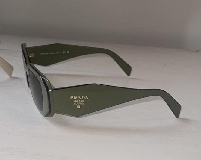 Elevate your style with these Prada Sunglasses SPR17W 13N-5S0, featuring a sophisticated geometric design. The sage green rectangle frames are made of lightweight and durable acetate material, while the dark grey lenses provide UV400 protection. These sunglasses are perfect for women who want to add a touch of designer to their look. The solid pattern and tinted lens technology make these sunglasses a great accessory for any occasion. The frame width is 140 mm, and the temple length is 145 mm. These Prada sunglasses are made in Italy and are a great addition to any wardrobe.