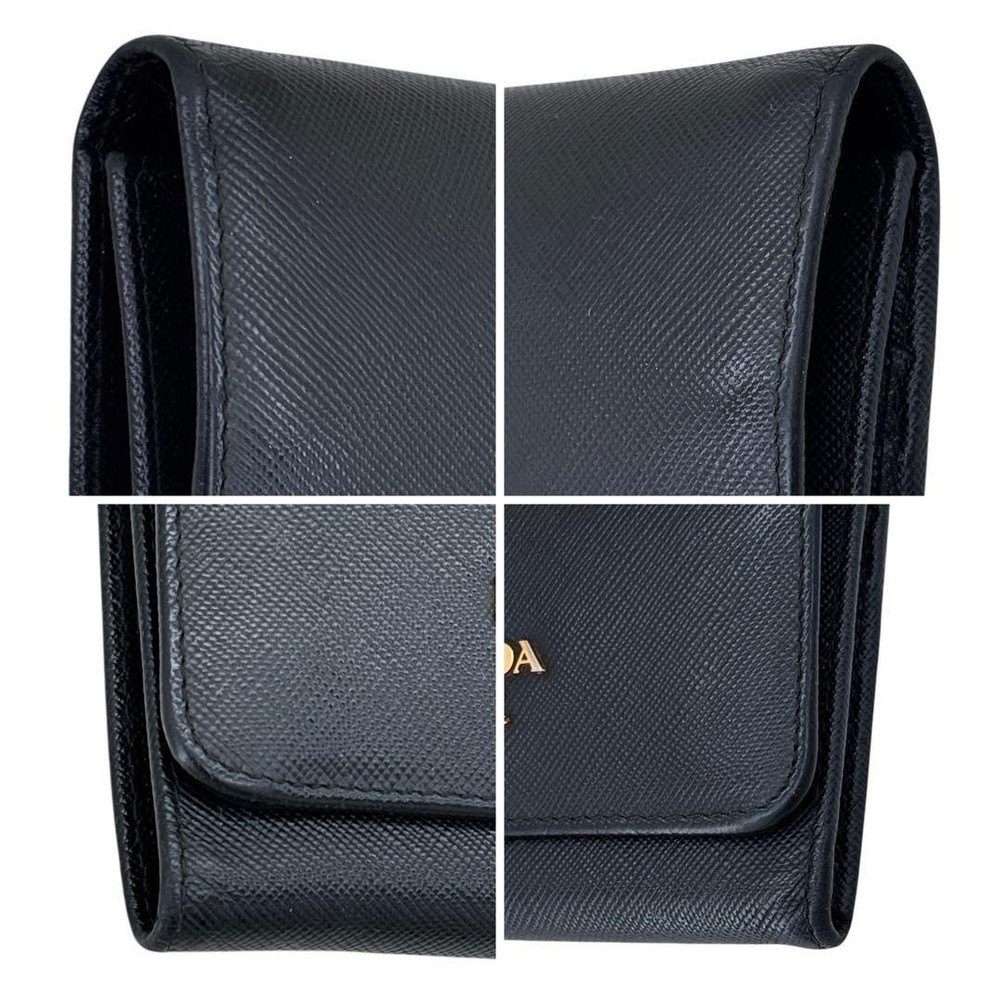 Prada Saffiano Black Leather Tri-Fold Wallet Compact Purse Used Key Features - Brand: Prada - Product Type: Leather Wallet - Model Number: 164 - Size: approximately 3.9 inches (10cm) height x 4.5 inches (11.5cm) width x 2 inches (5cm) depth - Material: Genuine leather (black) - Condition: S (Excellent; no noticeable scratches or stains, very clean) - Notes: Authentic product verified and inspected in Japan. No accessories are included unless noted in the title or product description. If you have any questions, please ask before purchasing. - Please review photos for detailed condition. - We handle genuine products only; in case of counterfeit, we offer returns or exchanges. Specifications Brand Prada Country Japan Color Black Material Leather Product Description Item Title Prada/Saffiano/Tri-Fold Wallet/Compact Wallet/Leather/Black Payment Supports managed payments Please pay within 5 days after auction is finished. About Us We are located in Japan. It's our pleasure to make you happy by proposing our recommend item. If you have any questions or request about items, please feel free to ask us. International Buyers - Please Note: -Import duties, taxes, and charges are not included in the item price or shipping charges. These charges are the buyer's responsibility. -Please check with your country's customs office to determine what these additional costs will be prior to bidding/buying. -These charges are normally collected by the delivering freight (shipping) company or when you pick the item up - do not confuse them for additional shipping charges. -We do not mark merchandise values below value or mark items as - gifts - The US and International government regulations prohibit such behavior. Thank you for your understanding.