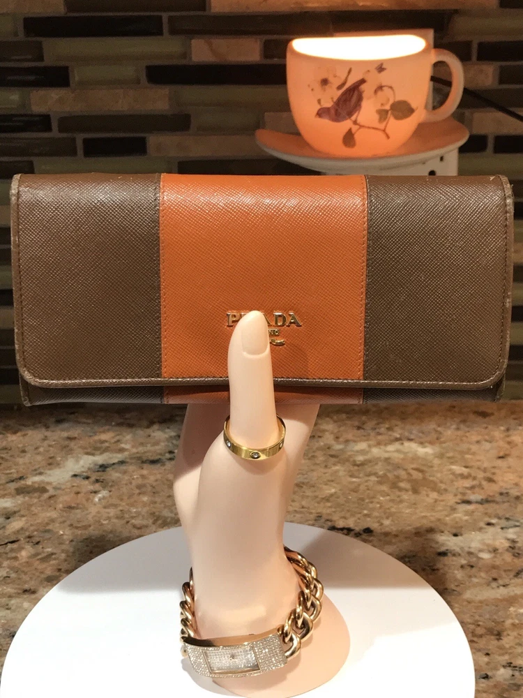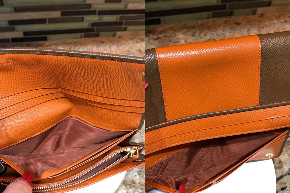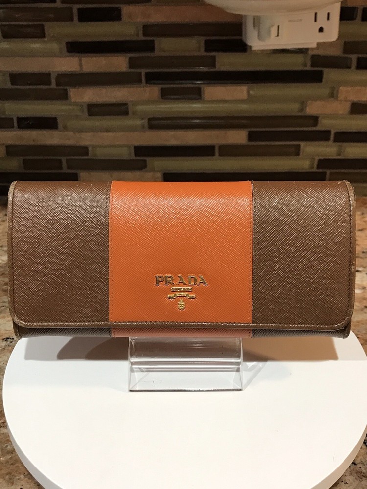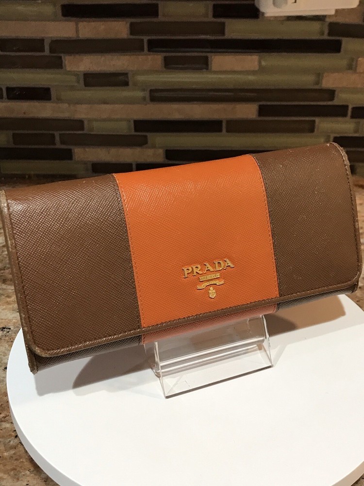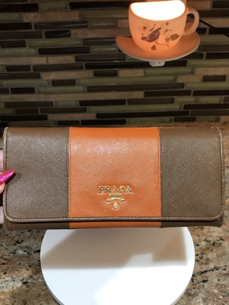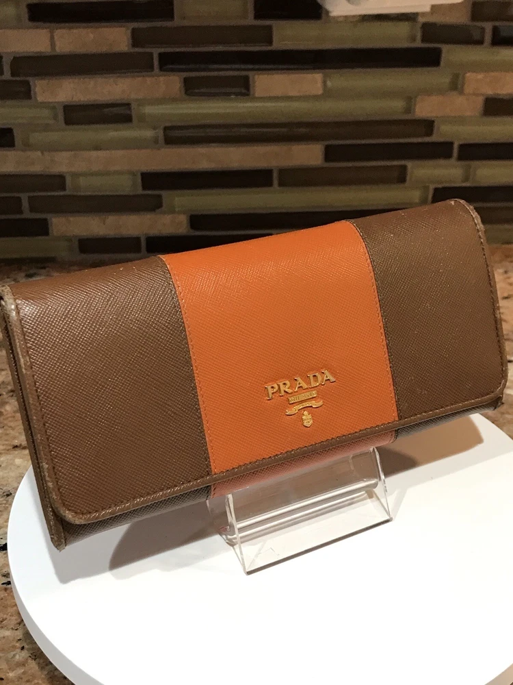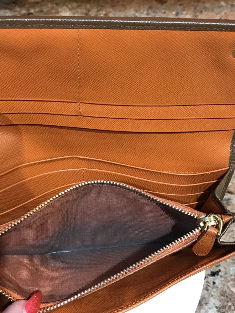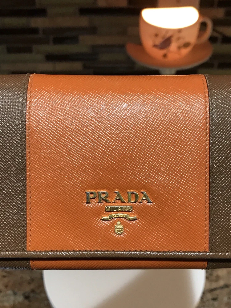 -Condition: Pre-owned ✅ ; in excellent condition! ❤️ -Wear on corners/edges & coin residue; scratches/scuffs -Signature Prada 🔥😍 -Material: Saffiano Leather -Color: Multicolor 🧡 -Two Tone 🔥 -Separated compartments -Credit card slots -Gold Hardware -She’s a stunner 😍✨ -Reasonable offers are welcome 🤗 -This is pre-loved item that has signs of wear, please kindly adjust your expectations 💕- No Returns