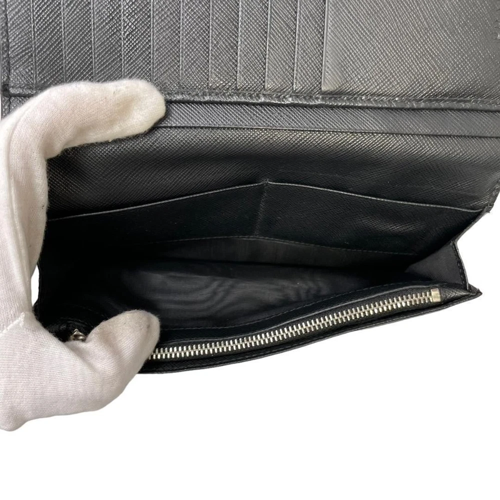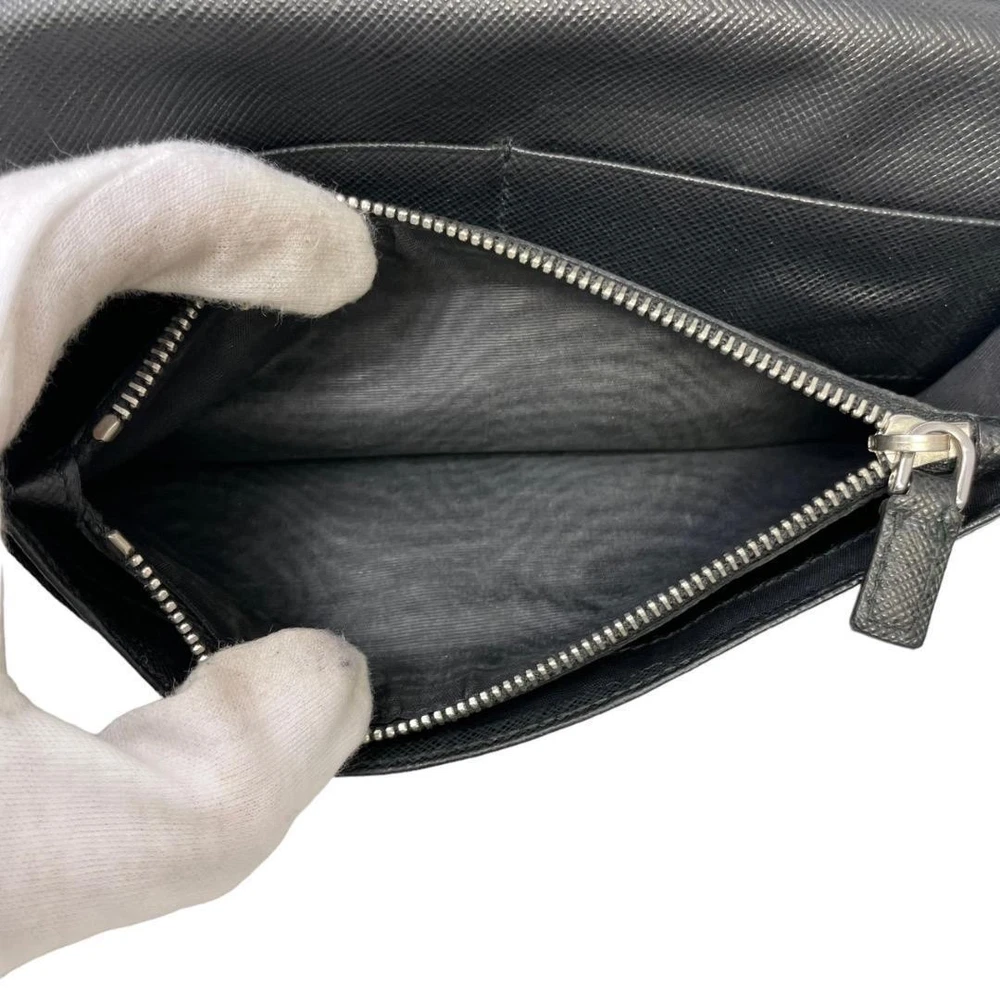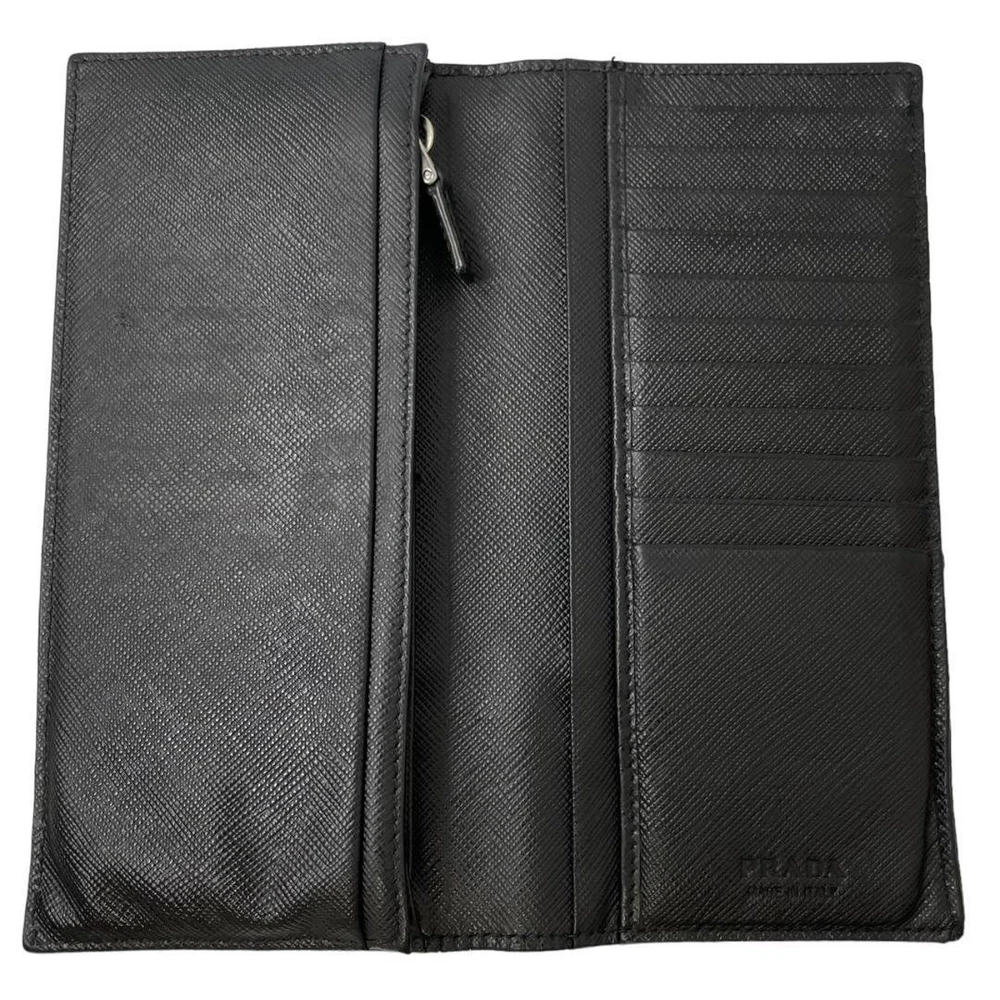 Prada Saffiano Leather Wallet Black Silver Logo Genuine Used Key Features - Brand: PRADA - Product: Long Wallet - Model: Prada Silver Logo Series - Features: Elegant design with silver Prada logo, suitable for men and women - Dimensions: approximately 7.5 inches (19 cm) height, 3.9 inches (10 cm) width, 0.8 inches (2 cm) depth - Condition: Used; minor dirt and scuffs on the exterior, interior shows slight wear but no issues with zipper or functionality - Details: 1 bill compartment, 13 card slots, 3 open pockets, 1 coin pocket - No accessories are included unless noted in the title or product description. If you have any questions, please ask before purchasing. Specifications Brand Prada Country Japan Color Black Material Leather Accents Logo Pattern Logo Product Description Item Title Prada Wallet Saffiano Black Leather Silver Logo Payment Supports managed payments Please pay within 5 days after auction is finished. About Us We are located in Japan. It's our pleasure to make you happy by proposing our recommend item. If you have any questions or request about items, please feel free to ask us. International Buyers - Please Note: -Import duties, taxes, and charges are not included in the item price or shipping charges. These charges are the buyer's responsibility. -Please check with your country's customs office to determine what these additional costs will be prior to bidding/buying. -These charges are normally collected by the delivering freight (shipping) company or when you pick the item up - do not confuse them for additional shipping charges. -We do not mark merchandise values below value or mark items as - gifts - The US and International government regulations prohibit such behavior. Thank you for your understanding.