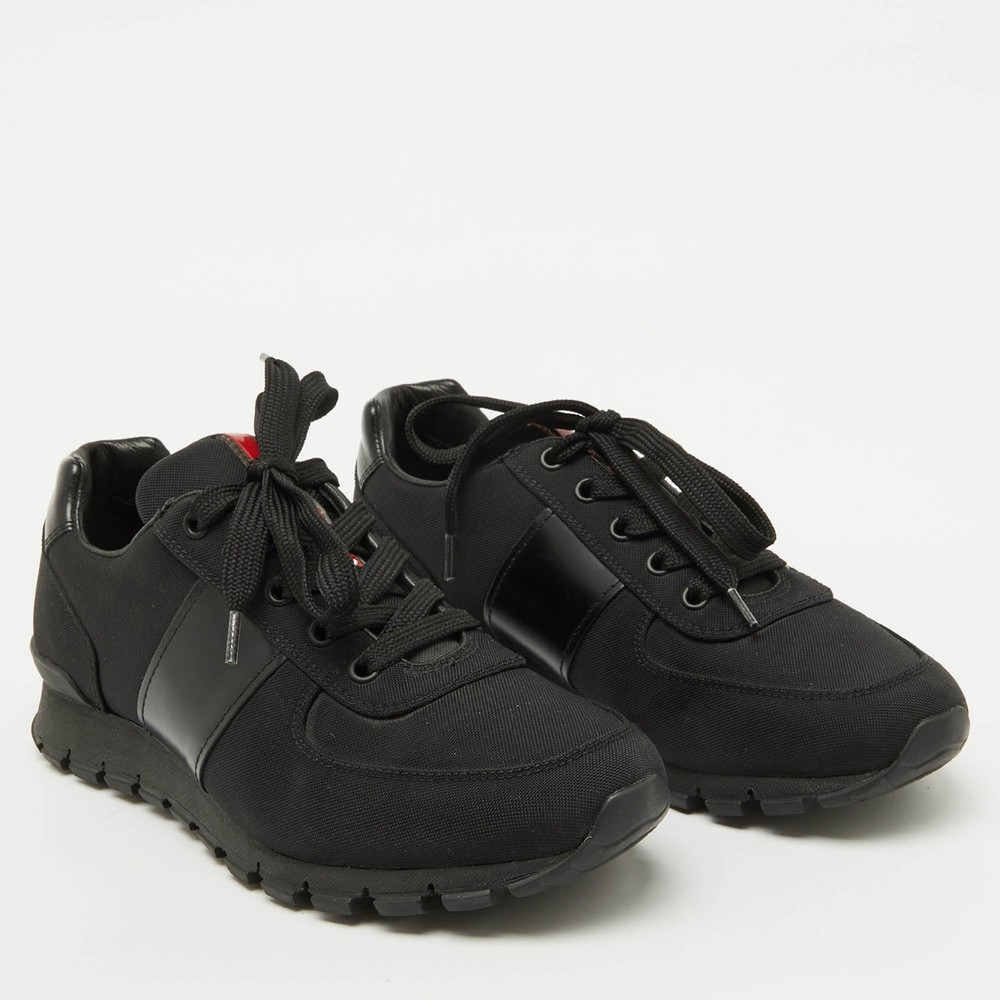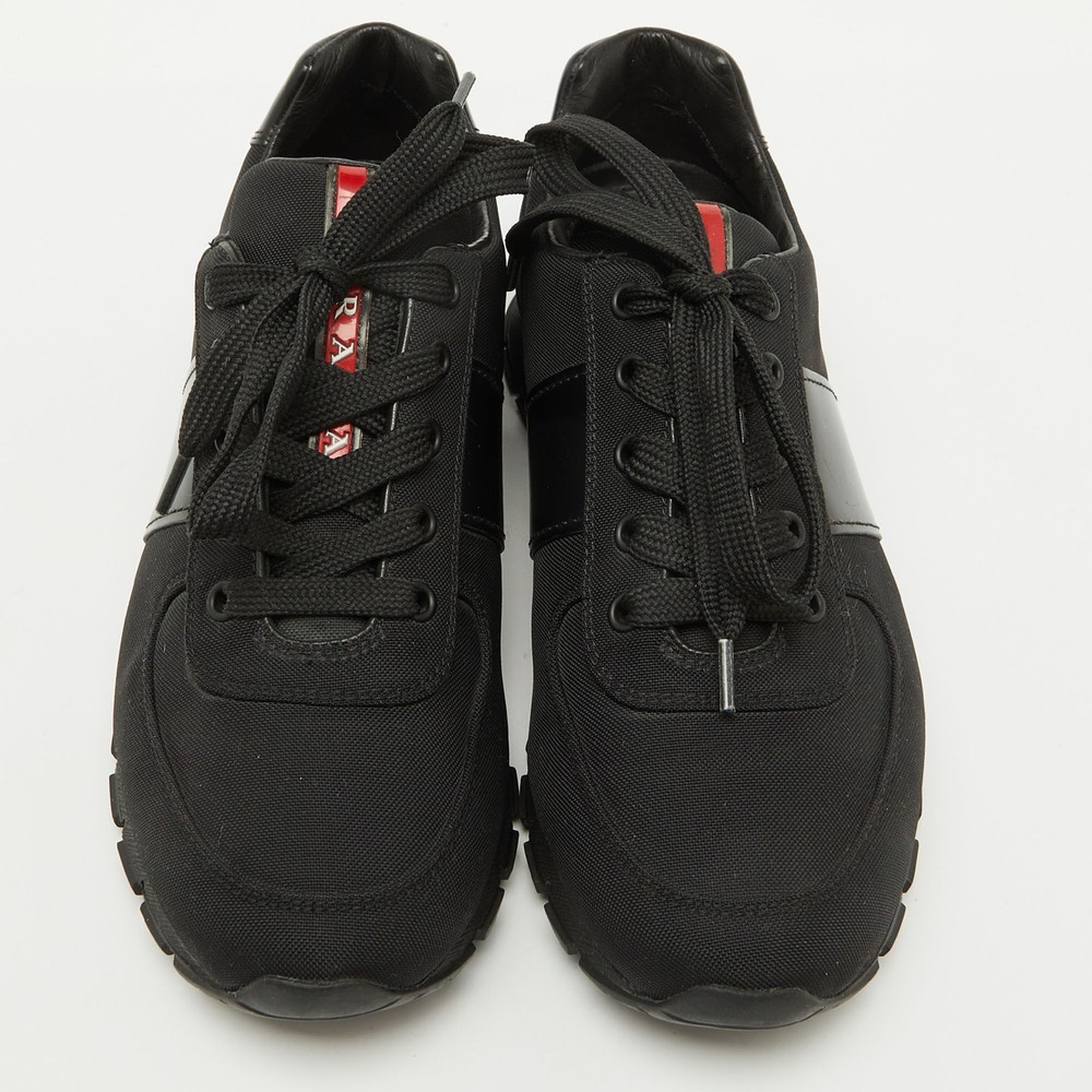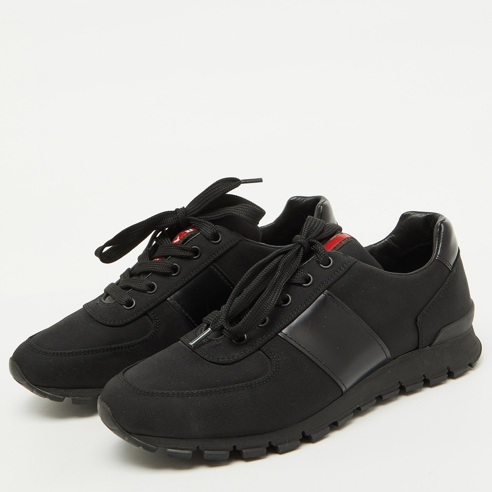 Crafted with skill, these sneakers come in a luxe design complemented by signature detailing. You can count on them to elevate any outfit. Embrace the ultimate in sophistication and comfort with every step you take.Certified by The Luxury Closet - This item has gone through a detailed authentication process overseen by our experts. We offer a lifetime guarantee of authenticity on all our items. Import duties, taxes and charges are not included in the item price. These charges are the buyers responsibility. Please check with your country’s customs office to determine what these additional cost will be prior to buying. Our eBay Store About Us Contact Us Add to Favorite Sellers Prada Sport Black Canvas and Leather Low Top Sneakers Size 39 $181.5 Crafted with skill, these sneakers come in a luxe design complemented by signature detailing. You can count on them to elevate any outfit. Embrace the ultimate in sophistication and comfort with every step you take. Product Details Brand Color Black Dimensions Material Canvas, Leather Size 39 Outsole Width 10 cm Outsole Length 28 cm Heel Height Includes Original Dustbag Certified by The Luxury Closet This item has gone through a detailed authentication process overseen by our experts. We offer a lifetime guarantee of authenticity on all our items. How We Check The in-house team of experts at The Luxury Closet is highly trained to verify the authenticity and the condition of the luxury products. They ensure that only 100% authentic items are put on sale.The evaluation process is unique with its own mix of assessment criteria and differs according to the category. Each item is evaluated based on the following combination of hallmarks, hardware, stitching, symmetry, material, craftsmanship, stamping, codes, hologram stickers, and packaging. Our authenticators also check if the items have been modified or amended (e.g., aftermarket diamonds, replaced batteries, repaired bags, etc.) International Buyers Import duties, taxes and charges are not included in the item price. These charges are the buyers responsibility. Please check with your country’s customs office to determine what these additional cost will be prior to buying.