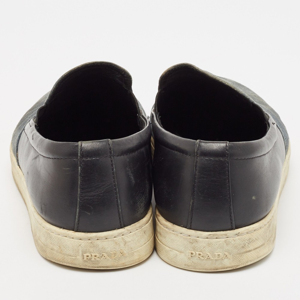 Designed to elevate your style quotient and give you comfort at the same time, these kicks are crafted using the best materials. Pair them with your casuals for a cool look.Certified by The Luxury Closet - This item has gone through a detailed authentication process overseen by our experts. We offer a lifetime guarantee of authenticity on all our items. Import duties, taxes and charges are not included in the item price. These charges are the buyers responsibility. Please check with your country’s customs office to determine what these additional cost will be prior to buying. Our eBay Store About Us Contact Us Add to Favorite Sellers Prada Sport Black/Blue Suede and Leather Slip On Sneakers Size 43 $151.8 Designed to elevate your style quotient and give you comfort at the same time, these kicks are crafted using the best materials. Pair them with your casuals for a cool look. Product Details Brand Color Black Dimensions Material Leather, Suede Size 43 Outsole Width 11 cm Outsole Length 30 cm Heel Height Includes The Luxury Closet Packaging Certified by The Luxury Closet This item has gone through a detailed authentication process overseen by our experts. We offer a lifetime guarantee of authenticity on all our items. How We Check The in-house team of experts at The Luxury Closet is highly trained to verify the authenticity and the condition of the luxury products. They ensure that only 100% authentic items are put on sale.The evaluation process is unique with its own mix of assessment criteria and differs according to the category. Each item is evaluated based on the following combination of hallmarks, hardware, stitching, symmetry, material, craftsmanship, stamping, codes, hologram stickers, and packaging. Our authenticators also check if the items have been modified or amended (e.g., aftermarket diamonds, replaced batteries, repaired bags, etc.) International Buyers Import duties, taxes and charges are not included in the item price. These charges are the buyers responsibility. Please check with your country’s customs office to determine what these additional cost will be prior to buying.