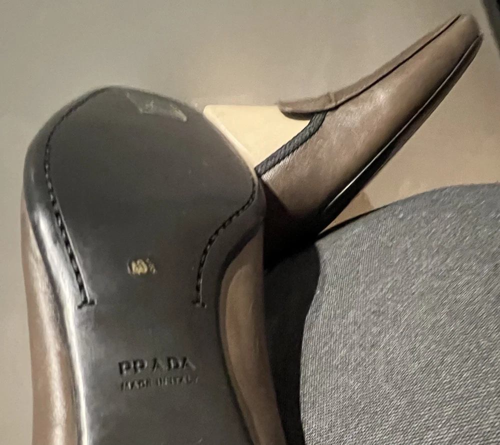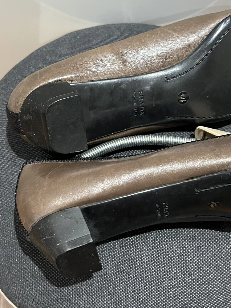 Prada Women's 40.5 Pumps low heel leather shoes in US size 10.5. Very good condition. Would fit best narrow feet. Made in Italy.