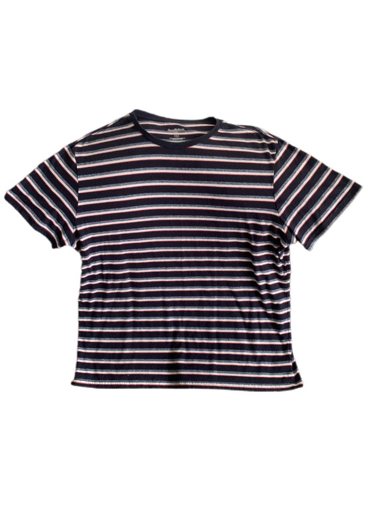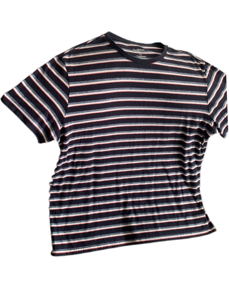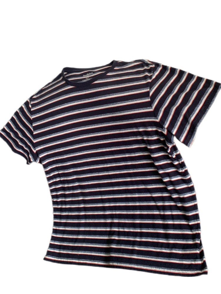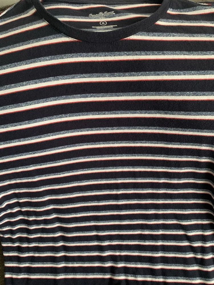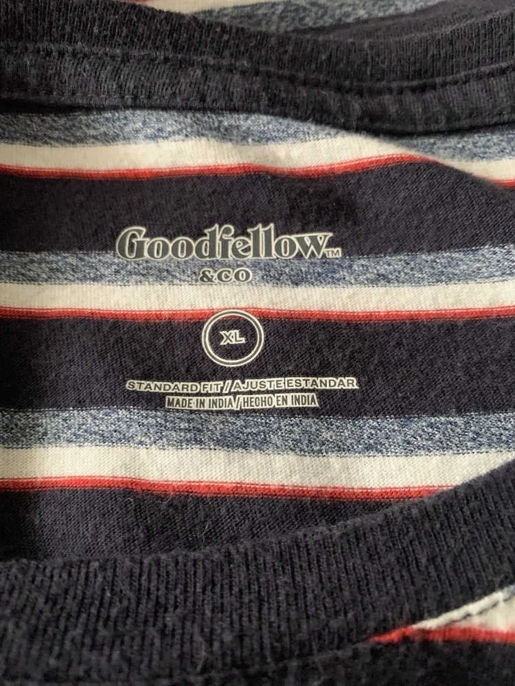 This pre-owned men's Goodfellow & Co short sleeve shirt in size XL features a classic casual striped pattern in multicolor, perfect for all seasons. The pullover style shirt has a round neckline and is machine washable for easy care. Designed for a regular fit, this colorful and classic shirt is suitable for various occasions and is a versatile addition to any man's wardrobe. All measurements are approximate with item resting. Back Collar Bottom 29” Pit to Pit 24” Shoulder to Cuff 8” The item is thoroughly washed/cleaned as per the manufacturer's guidelines before shipment. See my other listings for more stuff you didn’t know you needed.