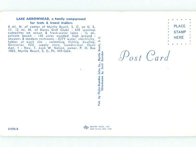 Pre-1980 LAKE ARROWHEAD Myrtle Beach South Carolina SC 11/8 AE3718