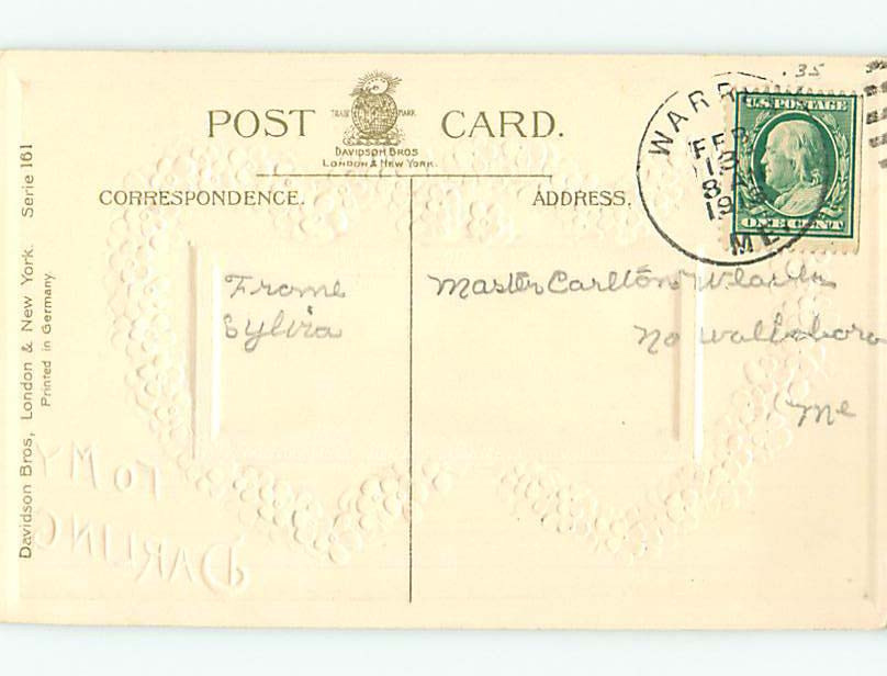 Signed: No Postage Condition: n/a Type: Printed (Lithograph) Occasion: Valentine's Day Theme: Holiday Size: Standard (5.5 x 3.5 in) Features: White Border Era: see features for era Material: Paper Unit of Sale: Single Unit Original/Licensed Reprint: Original