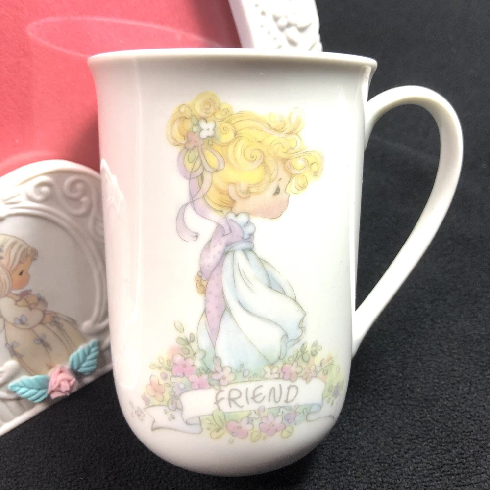 The Precious Moments Porcelain 8x10 Picture Frame from 1995 by Enesco features a delicate rose pattern on a classic white rectangular design. Made of high-quality porcelain, this photo frame can hold one 8x10 inch photo and measures 12 inches in height and 9 inches in width. Perfect for vintage collectors or those who appreciate timeless elegance in their home decor, this item captures the essence of the 1990s with its nostalgic design and intricate details.