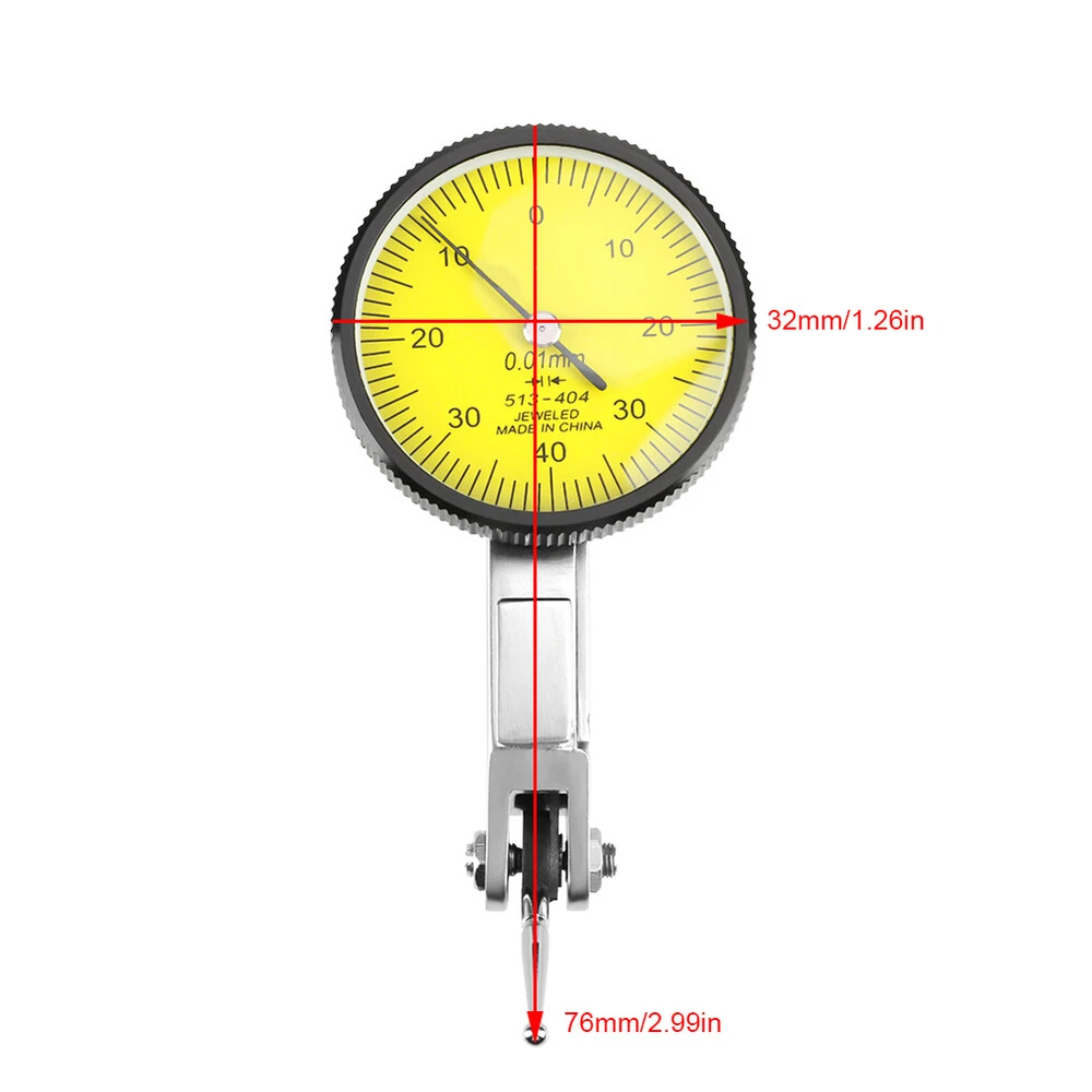 Feature: 1. It is designed to measure surface variations in narrow or recessed areas 2. Durable, accurate measurement, with high sensitivity and rapid response capability 3. The probe can be 180° rotation, free to adjust the measurement direction, left and right swing-type probe 4. Magnetic pointer and stylus can be used reliably in a magnetic environment 5. This dial test indicator is designed for measurement during machining, layout and inspection work Specification: Features: It is designed to measure surface variations in narrow or recessed areas. Durable, accurate measurement, with high sensitivity and rapid response capability. The probe can be 180° rotation, free to adjust the measurement direction, left and right swing-type probe. Magnetic pointer and stylus can be used reliably in a magnetic environment. This dial test indicator is designed for measurement during machining, layout and inspection work. Specifications: Shell Material: Aluminum + Plastic Color: Yellow Length: Approx. 76mm / 3in Diameter: approx. 32mm/1.26in Range: 0-0.8mm Graduations: 0.01mm Weight: Approx. 122g Package Included: 1 x Dial test indicator 1 x 3/8" Dovetail clamp 1 x 5/32" Dovetail clamp 1 x Molded case Note: Please note that the new type and old type of this product will be sent randomly, and make sure you will not mind before ordering.