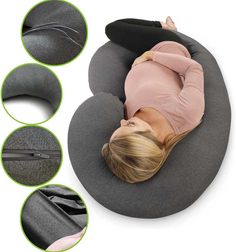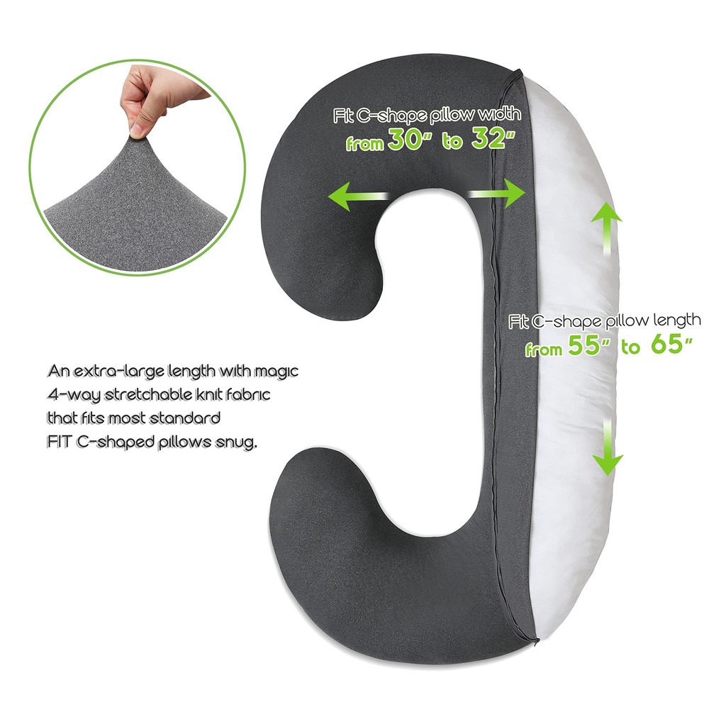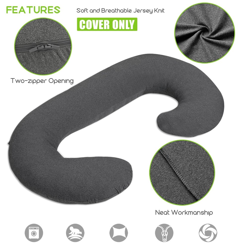 Pregnancy-Pillow-Cover-C Shaped Full Body Pillow Case Cover for Maternity,Stretchy Cool Breathable Jersey Fabric,Provides Sleep and Pregnancy Support,Heather Grey FULL BODY PILLOW COVER: Designed for fit C-shaped pregnancy pillows and long sleep pillows these pillowcases provide form-fitting coverage to create a snug fit that optimizes your pillow comfort and support SOFT AND BREATHABLE JERSEY KNIT: Our cool body pillow is made with a soft stretch jersey knit fabric that helps wick away sweat and moisture when you’re sleeping, snuggling up, or just relaxing CONVENIENT ZIPPERED ACCESS: This large body pillow cover also features a strong, easy-pull zipper to make it easier to add a remove a pillow with less effort, which is important for washing or regular maintenance MACHINE WASH SAFE MATERIAL: Along with being gentler on sensitive skin our C-shaped pregnancy pillow cover can also be added to the washing machine to make keeping it clean quick and easy. Tumble dry on low SATISFACTORY SERVICE: If you have any questions about our products, please send a simple email to us, and we will solve your problem within two working days