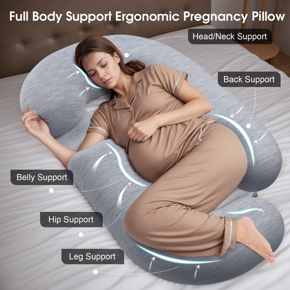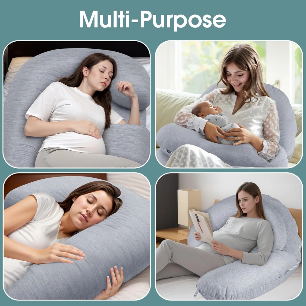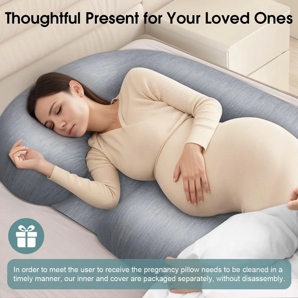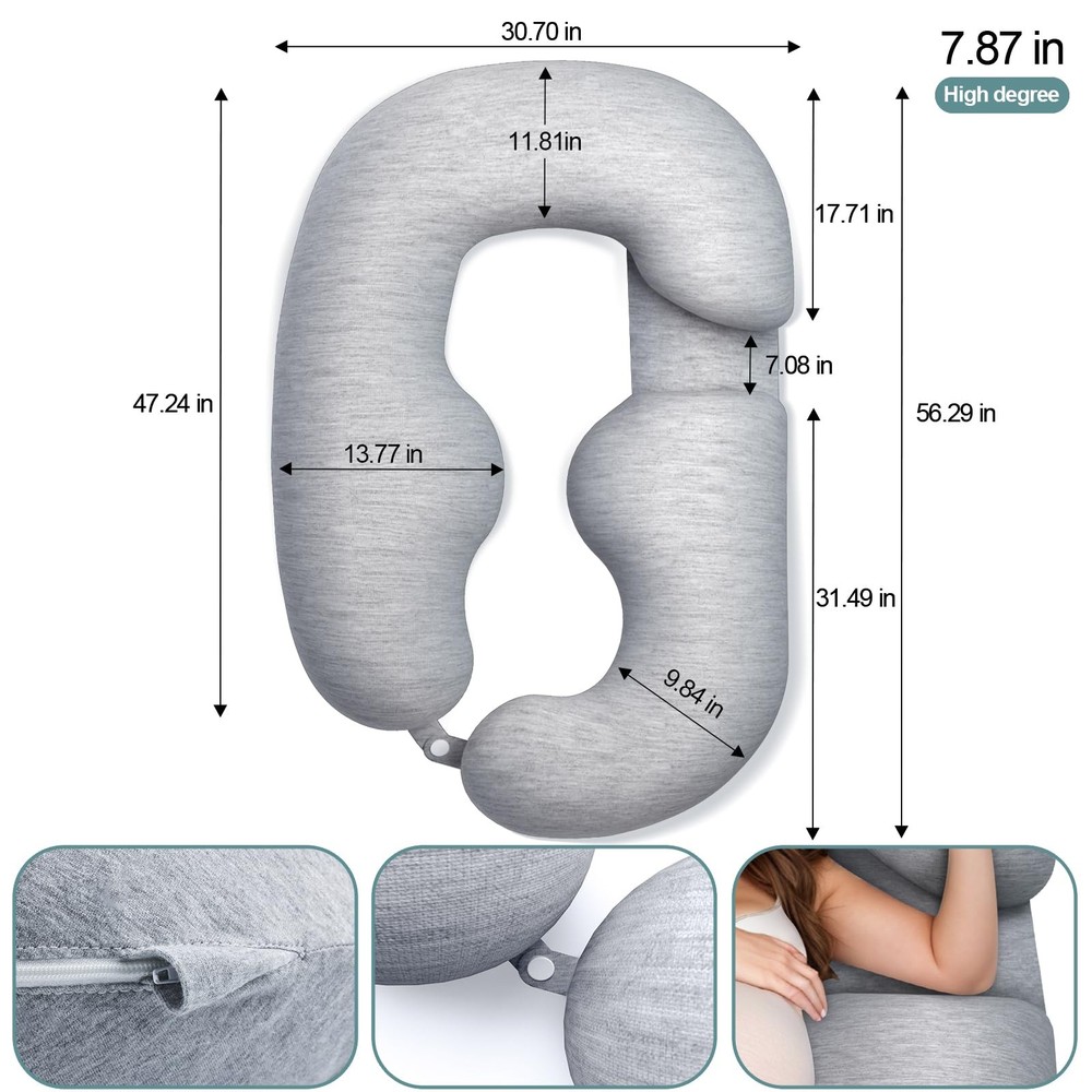 Designed for women during pregnancy, Pregnancy Pillow is a pillow that provides extra comfort and support. It is often specially shaped and sized to accommodate the changing physical needs of pregnant women, ensuring that both mom and baby enjoy a peaceful night's sleep. Premium Fill for Ultimate Comfort: Maternity Pillow is filled with high-quality virgin 3D32 Silicone Cotton, which ensures long-lasting softness while still being resilient and providing the user with even, strong support for a restful night's sleep throughout pregnancy and labor. Tip: As the product is compressed packaging, you need to rub and pat the pillow after receiving it to make the cotton inside fluffy again Ergonomic Design for Full Body Support: Pregnancy Pillow is carefully crafted to fit the natural curves of a mom-to-be's body. Its ergonomic shape pampers your abdomen, back and legs, relieving pressure points and providing full support where you need it most Versatile Comfort for Every Moment: From daytime lounging to peaceful nights, this versatile pillow meets all your relaxation needs. Not only can it be used while sleeping, but also while reading, breastfeeding, or relaxing after a busy day - its adaptability makes it a must-have companion throughout pregnancy and beyond Thoughtful Design Features: Maternity Pillow has a removable pillowcase for easy cleaning; neat, tight stitching to extend the life of the pillow, and a clever zipper design for easy access and filling height adjustment. These thoughtful design elements make all the difference Perfect Present for Expectant Mothers: Wrap the mom-to-be in your life in love and comfort. Maternity Pillow is more than just a product, it's a thoughtful gesture that shows how much you care about her well-being at this special time