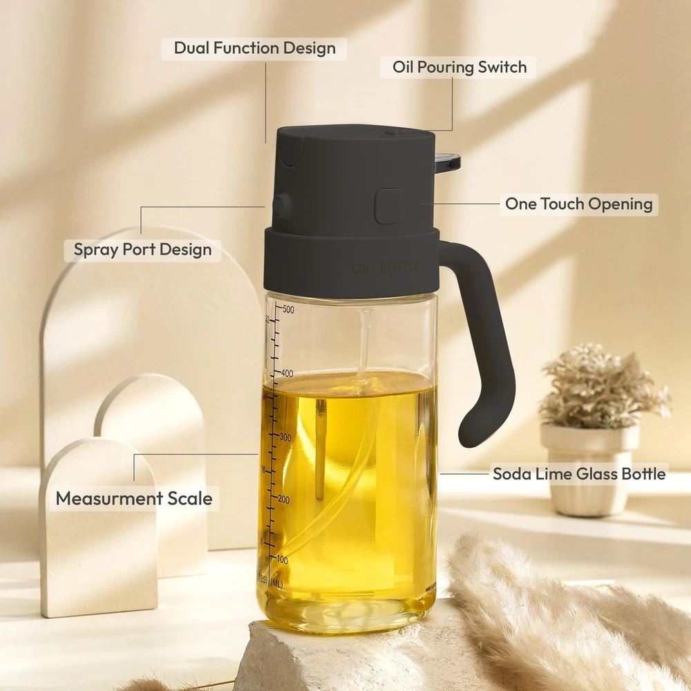 2-in-1 470ml Oil Dispenser & Sprayer Bottle for Pouring and Spraying