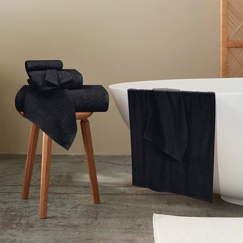 100% Ring Spun Cotton Premium Bath Towels, 27x54 inches, Pack of 4, 550 Black