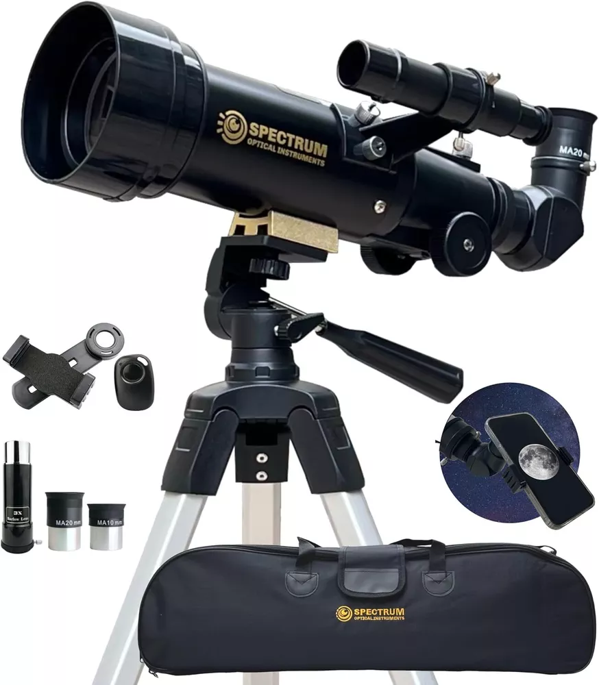 Telescope for Kids 8-12 - Premium Refractor Telescope 70mm Aperture with Carry Bag and Phone Holder Item Description Compact and Portable Design: The AstroLite 70AZ Refractor is a lightweight and compact telescope kit, designed for travelers who want to explore the night sky on the go. It comes with a carry bag, making it easy to transport and set up during camping trips, hiking, or other outdoor adventures. Optics and Accessories: This telescope features a 70mm aperture and a 400mm focal length, allowing for clear and detailed views of celestial objects like the Moon, Jupiter, and Mars. It includes two eyepieces (10mm and 20mm), a 3X Barlow lens for increased magnification up to 120X, and a smartphone adapter for astrophotography. Altazimuth Mount and Tripod: The telescope is mounted on an Altazimuth mount, which provides easy maneuverability for tracking celestial objects. It also comes with a stable and portable tripod, ensuring steady viewing experiences. Payment safe payment via eBay Shipping Fast and Free Shipping Return 30 Days Return