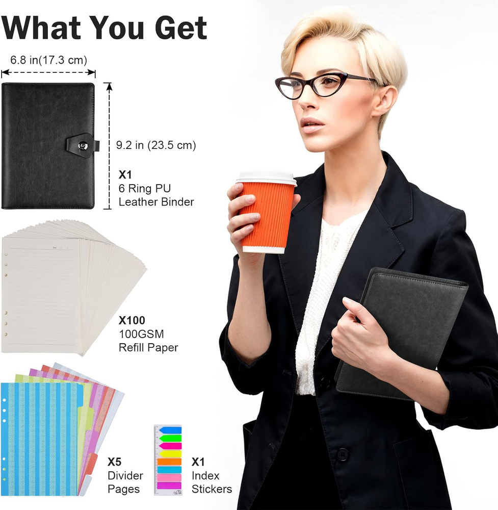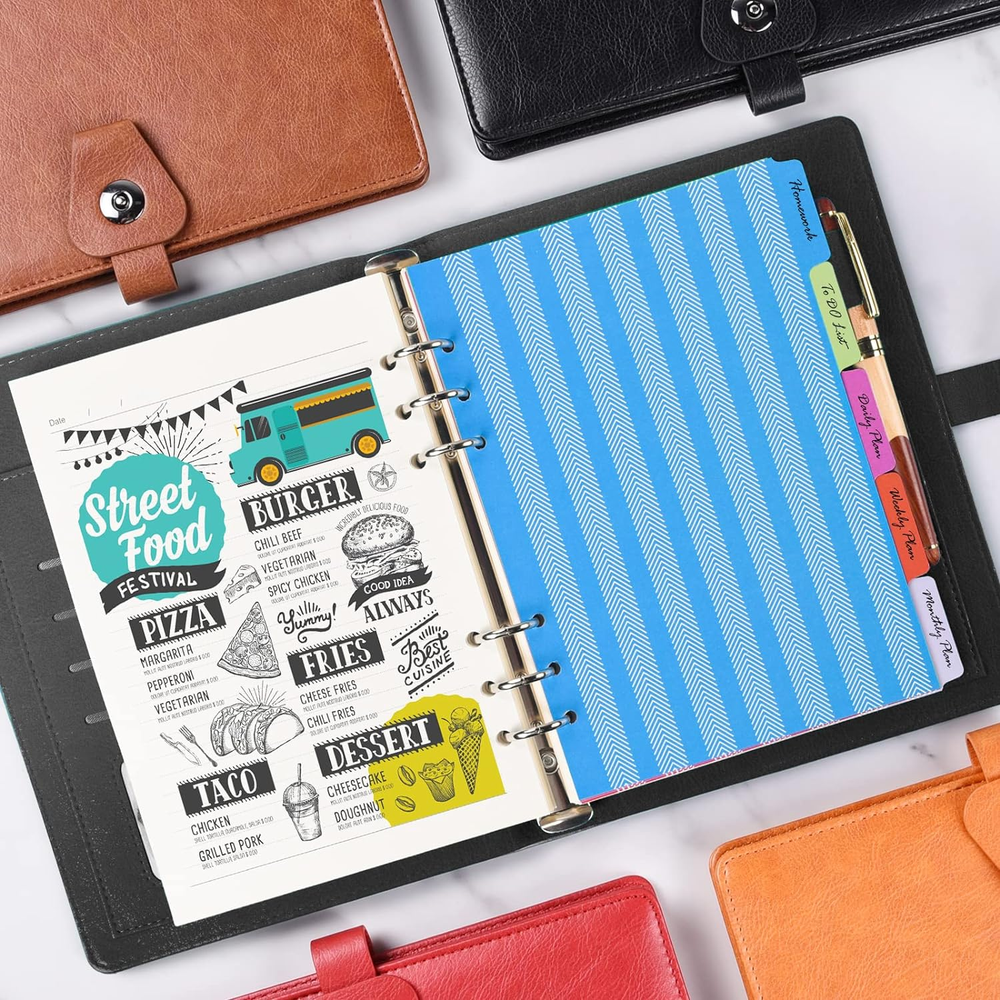 This A5 binder journal is a game-changer for organization lovers! The faux leather feels premium, and the 6-ring design makes refilling pages a breeze. I love the included dividers and index stickers—perfect for keeping notes, plans, and ideas neatly sorted. The ruled pages are great for writing, and the A5 size is spacious yet portable. A must-have for professionals and students alike!