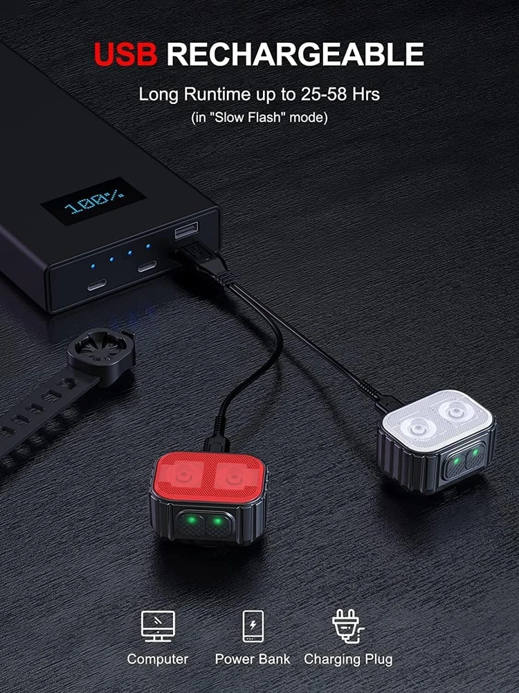 Premium Bike Lights with Emergency Flashlight - 58 Hrs Long Runtime & USB Charge ‹ › ‹ › ‹ › ‹ › ‹ › ‹ › ‹ › ‹ › ‹ › Premium Bike Lights with Emergency Flashlight 58 Hrs Long Runtime & USB Charge Features: High brightness with 2 main LEDs and 19 surrounding auxiliary LEDs for maximum visibility. Independent switches control front light (4 modes) and tail light (6 modes) for versatile use. Large capacity battery: 1100MAH for front light, 350MAH for taillight, ensuring extended use. Reminds you to charge: Battery indicator flashes green when below 20% battery. IPX6 rated waterproof, performed well in rain and fog, protected by waterproof silicone cover on USB port. Easy installation with no additional tools needed - children can do it too! Benefits: Enjoy rides in any weather condition with powerful light. Long runtime means you can ride worry-free for hours. Versatile modes tailored to different environments and activities. Be safe in outdoor adventures like hiking and camping with a reliable emergency flashlight. Ideal for cyclists who prioritize safety and visibility. A thoughtful gift for outdoor enthusiasts this holiday season. Why choose our Premium Bike Lights? Light up your adventure with our Premium Bike Lights that combine superior brightness and long-lasting performance. With multiple light modes and easy installation, you'll feel confident and secure on every ride, no matter the terrain. Don't let darkness limit your explorations; embrace the thrill of the outdoors with reliable lighting that lasts. Perfect for yourself or as a meaningful gift for the cyclist in your life, our bike lights are the ultimate safety accessory. Illuminate your journey today! Shipping Free & Fast Shipping - We offer free shipping to most of the USA with a normal delivery time of 3-7 days. However, due to the current situation, additional delivery time (up to 3 weeks) may be required for some items. Alternative Carriers - We may use alternative carriers (e.g. USPS, FedEx, UPS, etc.) to ensure your package arrives safely and on time. Due to the use of multiple carriers, we are unable to provide a tracking number automatically. Handling Time - Orders are processed and shipped within 1-2 business days of receiving cleared payment. Shipping Restrictions - Shipping to Alaska, Hawaii, Puerto Rico, Guam, and other US territories may incur shipping charges or delivery restrictions. Please contact us before ordering, or your order can be refunded/cancelled. State Restrictions - There may be restrictions based on your state of purchase. For example, certain items may not be shipped to California due to state regulations. Contact for Tracking Updates - If you require tracking updates or have any concerns about the delivery of your order, please feel free to contact us, and we will be happy to assist you. Return 30-Day Hassle-Free Returns - We want you to be completely satisfied with your purchase. If you are not, you can return the item within 30 days of receiving it for a full refund or exchange. Easy Return Process - To start a return, simply contact us and we will provide you with a prepaid return shipping label and detailed instructions. Restocking Fee - There are no restocking fees for returns. However, the buyer is responsible for return shipping costs if the return is not due to a seller's error. Refund Processing Time - Refunds will be processed within 5 business days of receiving the returned item in its original condition. Payment We accept all major credit cards, PayPal, and Apple Pay for your convenience. Your payment information is secure and encrypted to ensure a safe and seamless transaction. Please complete your payment within 3 days of purchase to avoid any delays in shipping. Feedback Your feedback is extremely important to us. We strive to provide the best products and customer service possible. If you are satisfied with your purchase, please take a moment to leave us a positive review. If you have any concerns or issues with your order, please contact us before leaving negative feedback. We are committed to resolving any problems and ensuring your satisfaction. Contact Us If you have any questions or concerns, please feel free to reach out to our customer support team. You can contact us through the eBay messaging system. We are available Monday to Friday, 9:00 am to 5:00 pm EST, and we will do our best to respond to your inquiry within 24 hours. Buy it now and enjoy a pleasant shopping experience! UPC: Not Set Model: Bicycle Lights Item Height: Bicycle Lights Item Length: Bicycle Lights Item Weight: 0.28 kg Item Width: Not Set Unit Quantity: 2 Features: Rechargeable Batteries,Super Bright,8 Modes,12 Modes,Battery Indicator,Independent Switches,Long Runtime,Easy Installation,Emergency Flashlight,Lightweight Material: Plastic,Polyvinyl Chloride Brand: Unbranded Type: Head & Tail Light Set Bulb Type: LED Color: Black Country/Region of Manufacture: Not Set MPN: Not Set Manufacturer Warranty: Not Set Unit Type: Unit Vintage: Not Set