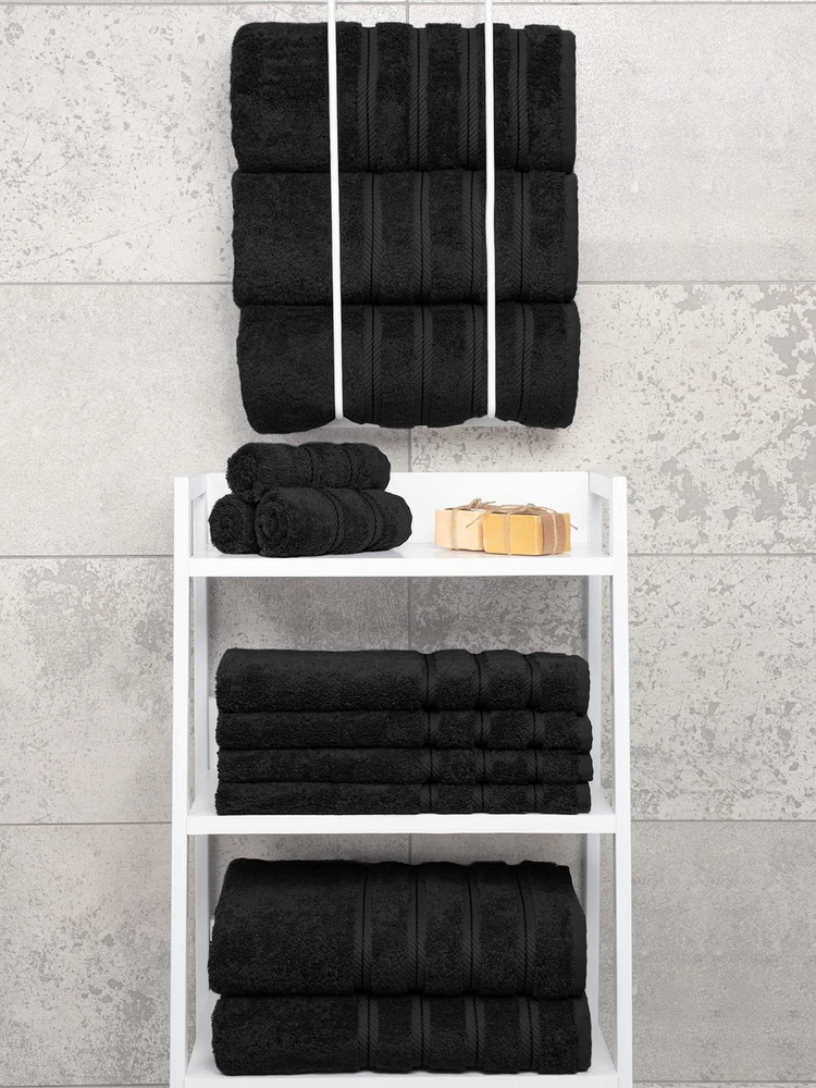 Luxury 4 Piece Bath Towel Set, 100% Cotton Turkish Bath Towels for Bathroom, 27x54 in Extra Large Bathroom Shower Towels, Black ✅ Luxury Bath Towel Set Includes 4 Piece Bath Towels of 27 x 54 inches ✅ 100% Cotton Premium Quality Turkish Bath Towels for your Bathroom ✅ These Towels are OEKO-TEX STANDARD 100 Certified and Tested for Harmful Substances. ✅ Due to variances in computer color management and monitor settings the color displayed on customer screen may differ from the actual product color. ✅ THIS ITEM IS RETURNABLE AND COMPLIES WITH AMAZON'S AND RETURN POLICY. Indulge in the ultimate luxury with our Extra Large Pack of 4 Turkish Cotton Bath Towels. Crafted from 100% premium Turkish cotton, these towels redefine opulence in your bathroom. The black bath towel set boasts a perfect blend of softness, absorbency, and quick-drying capabilities, ensuring a lavish and efficient experience after every shower. Pamper yourself with the plush and fluffy texture that sets our towels apart. The jumbo, oversized design caters to all your drying needs - body, face, and hands. Elevate your home with the high-quality, thick, and premium feel that resembles those found in top-tier hotels and spas. Perfect for adults, these towels are not only an essential for your daily routine but also a luxurious addition to your bathroom decor. The set is versatile enough to cater to hotels, spas, dorms, colleges, families, and Airbnb hosts looking to provide a touch of extravagance to their guests. Our Deluxe Turkish Cotton Bath Towel Set is a beacon of high quality and style, making it an ideal gift for your loved ones. Experience the joy of giving a premium, oversized towel set that is both a practical and thoughtful choice. This essential pack of 4 towels ensures that you always have a fresh, soft, and absorbent towel on hand. Upgrade your bathroom experience with our bulk pack of 4 towels, offering a cost-effective solution without compromising on the premium quality you deserve. Elevate your everyday routine with our Extra Large Turkish Cotton Bath Towel Set – the perfect combination of luxury, softness, quick-dry technology, and high-quality craftsmanship. OEKO TEX Standard 100 Certificated Towels. Try to transform your bathroom into a haven of comfort and style! Shipping We offer FREE shipping on all orders! We ship within Three business days of payment, usually sooner. We use a selection of shipping services such as UPS, FedEx, USPS etc. We only ship to the lower 48 states, no APO/FPO addresses or PO Boxes allowed. Local pickups and combined shipping options are not provided at this time. Return You can return a product for up to 30 days from the date you purchased it. Any product you return must be in the same condition you received it and in the original packaging. Please keep the receipt. Payment We accept payment by any of the following methods: PayPal Please pay as soon as possible after winning an auction, as that will allow us to post your item to you sooner! Feedback Customer satisfaction is very important to us. If you have any problem with your order, please contact us and we will do our best to make you satisfied. Contact Us If you have any queries, please contact us via ebay. We usually respond within 24 hours on weekdays. Please visit our eBay store to check out other items for sale! Thank you for shopping at our store.