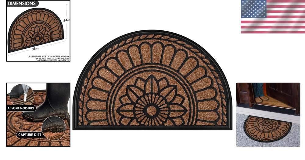 Stylish Half-Round Rubber Door Mat - Durable Non-Slip Entrance Way Mat 24" x 36" ‹ › ‹ › ‹ › ‹ › ‹ › ‹ › ‹ › ‹ › ‹ › ‹ › ‹ › Stylish Half-Round Rubber Door Mat Durable Non-Slip Entrance Way Mat - 24" x 36" Features: Constructed of 100% natural rubber, ensuring no odor and eco-friendly safety for your family and pets. Upgraded technology makes the polypropylene fiber practical and prevents shedding, ensuring longevity. Heavy-duty design for all-around versatility, enhancing the beauty of your porch. Strong rubber beveled border forms a retention dam to trap moisture, mud, and other debris. Patterned polypropylene fabric traps dirt and drains quickly, protecting your home from wear and tear. Low-profile design of 1/2" thick is perfect for low-clearing doors or entryways to prevent obstruction. Anti-slip backing ensures the mat grips effectively to all floor types, providing safety for kids and pets. Benefits: Enhances the aesthetic of your entryway while keeping it clean from dirt and debris. Versatility for both indoor and outdoor use, suitable for various locations around your home. Easily maintained – simply vacuum, shake, or rinse for a clean slate. Durable construction that guarantees longevity, even in high-traffic areas. Fully air dries quickly after washing, ensuring functionality remains intact. Why Choose Our Stylish Half-Round Rubber Door Mat? Elevate your home’s entrance with our Stylish Half-Round Rubber Door Mat, masterfully crafted from 100% natural rubber and premium polypropylene. Enjoy the peace of mind that comes with a mat designed for durability, safety, and easy maintenance. Its low-profile design allows for seamless entry while the non-slip backing guarantees a firm grip—thing more than just a mat, it’s a significant upgrade for your entryway! Don’t settle for ordinary when you can have extraordinary. Transform your doormat experience today! Shipping Free & Fast Shipping - We offer free shipping to most of the USA with a normal delivery time of 3-10 businessdays. However, due to various situations, additional delivery time (up to 3 weeks) may be required for some items. Alternative Carriers - We may use alternative carriers (e.g. USPS, FedEx, UPS, etc.) to ensure your package arrives safely and on time. Due to the use of multiple carriers, we are unable to provide a tracking number automatically. Handling Time - Orders are processed and shipped within 1-5 business days of receiving cleared payment. Shipping Restrictions - Shipping to Alaska, Hawaii, Puerto Rico, Guam, and other US territories may incur shipping charges or delivery restrictions. Please contact us before ordering, or your order can be refunded/cancelled. State Restrictions - There may be restrictions based on your state of purchase. For example, certain items may not be shipped to California due to state regulations. Contact for Tracking Updates - If you require tracking updates or have any concerns about the delivery of your order, please feel free to contact us, and we will be happy to assist you. Return Please see our ebay return policy. We do not accept return on most products. This is to avoid customers mis-using ebay returns. All sales are final. Please be sure to check the return policy listed at the top of the listing. In rare cases, we may accept returns, if the buyer pays both ways shipping and 20% restocking fee. If you are un-sure of return policy of a particular item, please ask before buying. Payment We accept all major credit cards, PayPal, and Apple Pay for your convenience. Your payment information is secure and encrypted to ensure a safe and seamless transaction. Please complete your payment within 3 days of purchase to avoid any delays in shipping. Feedback Your feedback is extremely important to us. We strive to provide the best products and customer service possible. If you are satisfied with your purchase, please take a moment to leave us a positive review. If you have any concerns or issues with your order, please contact us before leaving negative feedback. We are committed to resolving any problems and ensuring your satisfaction. Contact Us If you have any questions or concerns, please feel free to reach out to our customer support team. You can contact us through the eBay messaging system. We are available Monday to Friday, 9:00 am to 5:00 pm EST, and we will do our best to respond to your inquiry within 24 hours. Buy it now and enjoy a pleasant shopping experience! UPC: Not Set Unit Quantity: 4.99 Room: Any Room,Bathroom,Garage,Hallway,Kitchen,Living Room,Patio,Porch Material: 100% Solution Dyed Fiber,100% Natural Rubber,Polypropylene Features: Easy to Clean,Eco Friendly,Non-Slip,Stain Resistant,Water Resistant,Durable,Heavy Duty,Captures Dirt,Low Profile Department: Kids,Adults Theme: Floral Brand: Unbranded Type: Rug Color: Coffee Pattern: Grass Shape: Half-Round Item Width: Not Set Item Length: 36 in MPN: Not Set Model: Not Set Size: 24 x 36 in Style: Patterned Pile Height: Low Pile Regional Design: Not Set Country/Region of Manufacture: Not Set Pile Type: Low Pile Weave: Machine-Woven Era: 21st Century (2000-Now) Unit Type: lb Personalize: Not Set Personalized: Not Set