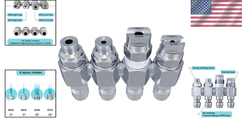 Premium J-Rod Pressure Washer Nozzle with 4 Spray Angles - 2-3 GPM Quick Connect ‹ › ‹ › ‹ › ‹ › ‹ › ‹ › ‹ › ‹ › ‹ › Premium J-Rod Pressure Washer Nozzle Experience the ultimate cleaning power with our Premium J-Rod Pressure Washer Nozzle , designed to revolutionize your washing routine. With four spray angles and compatibility for 2-3 GPM pressure washers, this versatile tool enhances your cleaning experience and efficiency. Product Features: High-Quality Construction: Crafted from robust stainless steel, ensuring durability and exceptional corrosion resistance. Versatile Compatibility: Works with standard 1/4" quick connect fittings, making it a perfect fit for a variety of washing machines. Four Spray Angles: Choose from the 0-degree jet for powerful cleaning, or the 25-degree angle for delicate surfaces, accommodating all your cleaning needs. Wide Application: Perfect for cleaning courtyards, vehicles, high walls, and more, effective against a range of surfaces and resistant to chemicals. Easy to Use: Each nozzle features sealing PTFE tape to prevent leaks and ensure a snug fit. Simply attach and start cleaning! Washing Modes: Jrod Nozzle 0030: 0-degree spray for direct and powerful jets, ideal for tough dirt. Jrod Nozzle 0010: 0-degree jet that reaches up to 20 pounds of pressure, perfect for cleaning high surfaces effortlessly. Jrod Nozzles 2530 & 2510: 25-degree spray angles for a gentle yet effective wash, suitable for delicate surfaces. Why Choose Our J-Rod Nozzle? Cleaning shouldn’t be a chore, and with our Premium J-Rod Pressure Washer Nozzle, it won't be! This exceptional nozzle kit combines durability with versatility, giving you multiple cleaning modes to tackle any job efficiently. Don't take the hard route; simplify your cleaning tasks with our inventive solution. Order your Premium J-Rod Pressure Washer Nozzle today and discover how easy cleaning can be! Shipping Free & Fast Shipping - We offer free shipping to most of the USA with a normal delivery time of 3-7 days. However, due to the current situation, additional delivery time (up to 3 weeks) may be required for some items. Alternative Carriers - We may use alternative carriers (e.g. USPS, FedEx, UPS, etc.) to ensure your package arrives safely and on time. Due to the use of multiple carriers, we are unable to provide a tracking number automatically. Handling Time - Orders are processed and shipped within 1-2 business days of receiving cleared payment. Shipping Restrictions - Shipping to Alaska, Hawaii, Puerto Rico, Guam, and other US territories may incur shipping charges or delivery restrictions. Please contact us before ordering, or your order can be refunded/cancelled. State Restrictions - There may be restrictions based on your state of purchase. For example, certain items may not be shipped to California due to state regulations. Contact for Tracking Updates - If you require tracking updates or have any concerns about the delivery of your order, please feel free to contact us, and we will be happy to assist you. Return 30-Day Hassle-Free Returns - We want you to be completely satisfied with your purchase. If you are not, you can return the item within 30 days of receiving it for a full refund or exchange. Easy Return Process - To start a return, simply contact us and we will provide you with a prepaid return shipping label and detailed instructions. Restocking Fee - There are no restocking fees for returns. However, the buyer is responsible for return shipping costs if the return is not due to a seller's error. Refund Processing Time - Refunds will be processed within 5 business days of receiving the returned item in its original condition. Payment We accept all major credit cards, PayPal, and Apple Pay for your convenience. Your payment information is secure and encrypted to ensure a safe and seamless transaction. Please complete your payment within 3 days of purchase to avoid any delays in shipping. Feedback Your feedback is extremely important to us. We strive to provide the best products and customer service possible. If you are satisfied with your purchase, please take a moment to leave us a positive review. If you have any concerns or issues with your order, please contact us before leaving negative feedback. We are committed to resolving any problems and ensuring your satisfaction. Contact Us If you have any questions or concerns, please feel free to reach out to our customer support team. You can contact us through the eBay messaging system. We are available Monday to Friday, 9:00 am to 5:00 pm EST, and we will do our best to respond to your inquiry within 24 hours. Buy it now and enjoy a pleasant shopping experience! UPC: Not Set Unit Quantity: 2-3 gpm Features: Quick Connect,4 Way Pressure Washer,Soft Wash Nozzle,Pressure Washer Accessories,Corrosion Resistant,Durable,Chemical Resistant,Easy to Use,Sealing PTFE Tape Items Included: User Manual,Jrod Nozzle Material: Stainless Steel Type: Pressure Washer Nozzle Brand: Unbranded Power Source: Manual Maximum Pressure: Not specified Product Line: Not Set Voltage: Not specified Model: Not Set Horsepower: Not specified Engine Type: Not specified Power: Not specified Soap Tank Capacity: Not specified Fuel Tank Capacity: Not specified Engine Size: Not specified Manufacturer Warranty: Not Set Noise Level: Not specified MPN: Not Set Color: Silver Year Manufactured: Not Set Item Height: Not Set Item Diameter: Not specified Cable Length: Not Set Item Length: Not Set Item Width: Not Set Country/Region of Manufacture: Not Set Style: Contemporary Item Weight: 6.7 ounces Unit Type: oz Assembly Required: Not Set