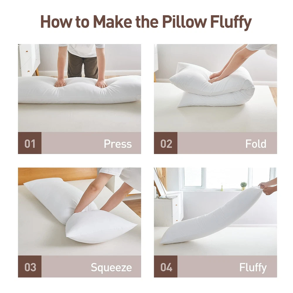 Premium 3D Fiber Filling - The long body pillow is made from quality 3D down-like fiber filling to ensure more elasticity, fluffy, and softness, providing a good bit of thickness and firmness and remaining soft and flexible enough to cradle your body. Pain & Pressure Relief - Soft yet sturdy support 20x60 inch body pillow fits the natural contours of your body to help relieve pressure from your leg, arms, and spine, while allowing for smoother and breathing and comfortable sleep. Ideal For All Sleepers - No chemical smell, no clumpy and the bed pillow won’t catch on dry skin, suitable for those with texture and sensory issues. The long pillow is made for adults and pregnancy. Help ease your body and mind while you’re sleeping, reading, relaxing, or watching TV, no whether you side sleepers, back or stomach sleepers. Hotel Sleeping Experience - Featuring extra soft filling, comfy supportive, smooth, and soft touch, the large pillow lets you experience five-star hotel luxury at home every night. Machine Washable - The big pillow for sleeping is easy to care for and machine washable cold in gentle cycle and tumble dry low. Shipped vacuum packaged and will bounce back to its original shape in seconds.
