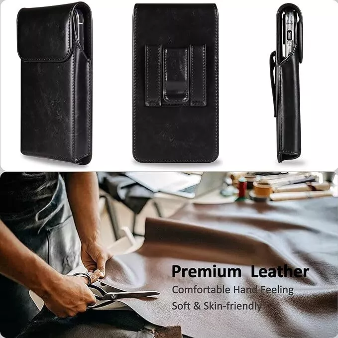 Feature: [Premium Durable PU Leather] The elegant phone holster is made of high-quality PU leather materials with metal belt clip, which not only shows a stylish and unique texture, but also protects your phone from scratches and damage. [Two-Ways to Carry] The flip phone holster has a belt clip and double belt loop. No matter wear a belt or not, you could clip the phone holster to anywhere you like,very convenient to use. The double belt loops are 2 inches wide to ensure that the cell phone belt holder is held tightly on your belt. [Secured Closure] The highly-efficient sturdy magnetic cover of phone pouch can be opened and closed safely and ensure the inside phones in place, slide the phone in and out easily. [Occasions] Suitable for construction work, camping, hiking, outdoor-living, cycling and hiking, etc.. It can also be used as a waist bag, utility belt pouch, outdoor hiking bag, or travel pouch. So convenient to use. Size: Medium is widely compatible with iPhone 15, iPhone 15 Pro, iPhone 14, iPhone 14 Pro, iPhone 13, iPhone 13 Pro, iPhone 12, iPhone 12 Pro, iPhone 11, iPhone 11 Pro, iPhone XR, Samsung Galaxy S24, Samsung Galaxy S23, Galaxy S22, Galaxy S21. Large is widely compatible with iPhone 15 Pro Max, iPhone 15 Plus, iPhone 14 Pro Max, iPhone 14 Plus, iPhone 13 Pro Max,iPhone 12 Pro Max, iPhone 11 Pro Max, iPhone XS Max, Samsung Galaxy S24+, Galaxy Fold 5/4/3, Galaxy S23+ and other folded phones. X-Large is widely compatible with Samsung Galaxy S24 Ultra, Galaxy S23 Ultra, S22 Ultra, S21 Ultra, S20 Ultra, Note 20 Ultra 5G Note 10+ Plus 5G, Google Pixel 7 Pro, Pixel 6 Pro. Package included: 1 x Holster