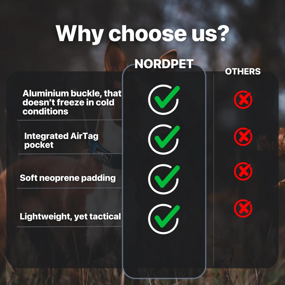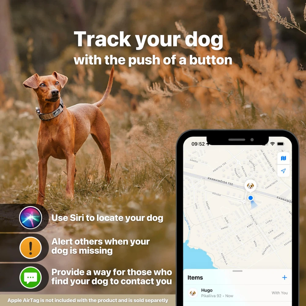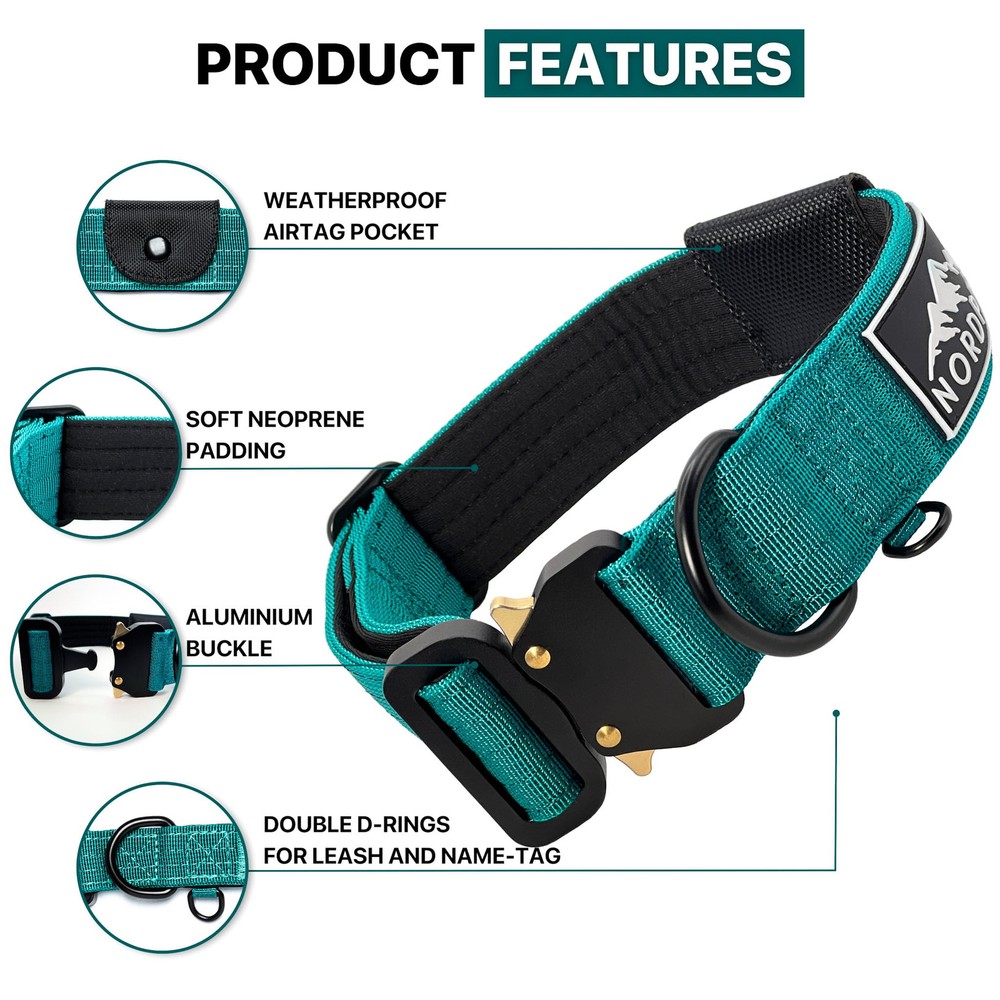 Never Lose Your Dog Again! - Our Premium Air Tag Dog Collar comes with a built-in AirTag holder to ensure your furry friend is always within reach. Never worry about losing them during walks, hikes, or travel again! AIRTAG NOT INCLUDED! Designed to Maximize AirTag Range – Our AirTag pouch minimizes barriers to UWB signals, giving you more reliable and accurate tracking performance compared to plastic cases. Designed for Comfort - Our tactical dog collars for medium dogs ensure a secure fit without compromising on comfort, making it ideal for daily wear, training, or adventures. Built for Long-Term Durability - Our Apple Airtag Dog Collar, crafted with rugged nylon, seamlessly blends tech and style for peace of mind. All essential features in one collar! Easy to Use, Quick to Attach - The heavy-duty quick-release aluminum buckle makes it easy to put on and take off the apple air tag dog collar, while the adjustable straps ensure a perfect fit for your dog. 100% Satisfaction Guarantee - We are confident in the quality of our tactical dog collar with airtag holder and if for any reason you are not satisfied with your purchase, we will provide a refund within 30 days of purchase. Built Tough for Bigger Breeds - Our tactical dog collars for large dogs offer superior strength and durability, perfect for handling the energy and strength of larger breeds.