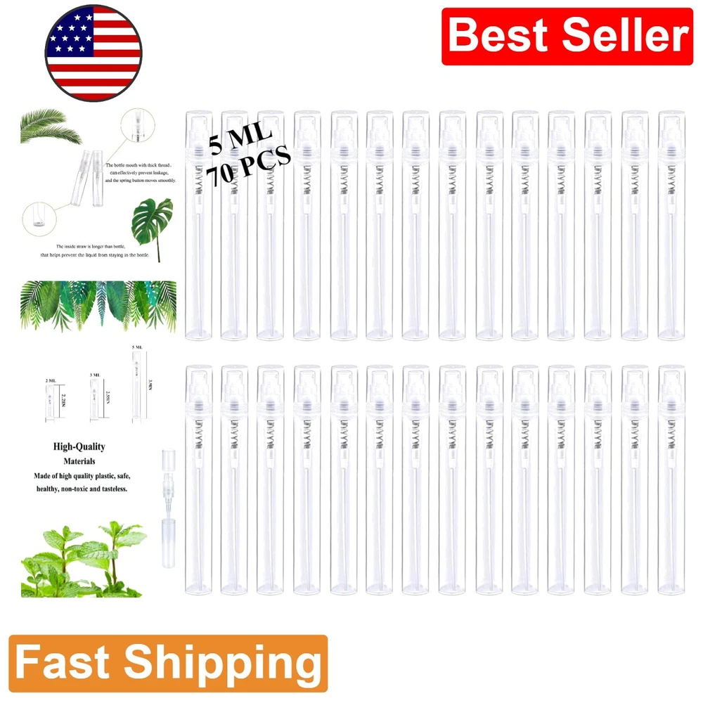 Premium Spray Bottles - 70PCS 5ML - Clear Plastic - Perfume Mouthwash Atomizer ‹ › ‹ › ‹ › ‹ › ‹ › ‹ › ‹ › ‹ › ‹ › Premium Spray Bottles -70PCS 5ML - Clear Plastic - Perfume Mouthwash Atomizer Features: Comes with 70 PCS of mini spray bottles, each with a capacity of 5ml. Made of high-quality plastic, BPA free, durable, odorless, non-toxic, and environment-friendly. Compact and portable, suitable for travel, vacation, gym, etc. Good leak-proof function. TSA carry-on approved size. Widely applicable for perfume, essential oil, makeup remover, air freshener, toiletry, and more. Benefits: Convenient and practical with 70 mini spray bottles. High-quality material ensures safety and durability. Compact and portable for easy carrying. Leak-proof design prevents spills and waste. TSA approved size for hassle-free travel. Wide range of applications for various liquids. Why choose our Premium Spray Bottles? Looking for a reliable and convenient way to carry your perfume or essential oils? Our Premium Spray Bottles are the perfect solution. With 70 mini spray bottles, each with a capacity of 5ml, you'll have enough to meet your daily usage needs. Made of high-quality plastic, these bottles are durable, odorless, and non-toxic, ensuring your safety. The compact and portable design makes them ideal for travel, vacation, or the gym. Plus, the leak-proof function and TSA approved size make them hassle-free to carry on the airline. Whether you need them for perfume, essential oils, makeup remover, or any other mixture, our Premium Spray Bottles are versatile and reliable. Don't settle for inferior alternatives - choose our Premium Spray Bottles for quality and convenience. Order your set of Premium Spray Bottles today and experience the difference! Shipping Free & Fast Shipping - We offer free shipping to most of the USA with a normal delivery time of 3-7 days. However, due to the current situation, additional delivery time (up to 3 weeks) may be required for some items. Alternative Carriers - We may use alternative carriers (e.g. USPS, FedEx, UPS, etc.) to ensure your package arrives safely and on time. Due to the use of multiple carriers, we are unable to provide a tracking number automatically. Handling Time - Orders are processed and shipped within 1-2 business days of receiving cleared payment. Shipping Restrictions - Shipping to Alaska, Hawaii, Puerto Rico, Guam, and other US territories may incur shipping charges or delivery restrictions. Please contact us before ordering, or your order can be refunded/cancelled. State Restrictions - There may be restrictions based on your state of purchase. For example, certain items may not be shipped to California due to state regulations. Contact for Tracking Updates - If you require tracking updates or have any concerns about the delivery of your order, please feel free to contact us, and we will be happy to assist you. Return 30-Day Hassle-Free Returns - We want you to be completely satisfied with your purchase. If you are not, you can return the item within 30 days of receiving it for a full refund or exchange. Easy Return Process - To start a return, simply contact us and we will provide you with a prepaid return shipping label and detailed instructions. Restocking Fee - There are no restocking fees for returns. However, the buyer is responsible for return shipping costs if the return is not due to a seller's error. Refund Processing Time - Refunds will be processed within 5 business days of receiving the returned item in its original condition. Payment We accept all major credit cards, PayPal, and Apple Pay for your convenience. Your payment information is secure and encrypted to ensure a safe and seamless transaction. Please complete your payment within 3 days of purchase to avoid any delays in shipping. Feedback Your feedback is extremely important to us. We strive to provide the best products and customer service possible. If you are satisfied with your purchase, please take a moment to leave us a positive review. If you have any concerns or issues with your order, please contact us before leaving negative feedback. We are committed to resolving any problems and ensuring your satisfaction. Contact Us If you have any questions or concerns, please feel free to reach out to our customer support team. You can contact us through the eBay messaging system. We are available Monday to Friday, 9:00 am to 5:00 pm EST, and we will do our best to respond to your inquiry within 24 hours. Thank you for supporting our small family business!
