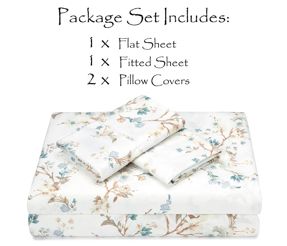 SUPER SOFT & COZY: This 4-piece sheet set is made of a super soft premium quality double brushed microfiber. Add a splash of color to your room with our many classic prints to mix and match with your personal style. This set also makes a perfect personal gift for any occasion such as housewarming or birthday. BEAUTIFUL PRINT: Our variety of prints can suit your personal style and bring a fresh new look to your bedroom. Turn your room into a relaxing space with our simple yet elegant designs. No matter if you want to add a unique pop of color or mix and match with your existing décor, it’s easy to add a fresh elegant look into your room. ELEGANT PRINTED DESIGN: Add a touch of elegance to your room with our unique classic and beautiful design featured on each flat sheet, fitted sheet and pillow case cover. 4-PIECE SET INCLUDES: 1 Fitted Sheet ( 60 x 80 Inches ), 1 Flat Sheet ( 90 x 102 Inches) with 15 inch corners; 2 Pillow Shams ( 20x30 Inches ). Fabric Content: 100% double brushed microfiber. EASY CARE: Machine wash on gentle cycle with cold water, tumble dry at very low temperature.