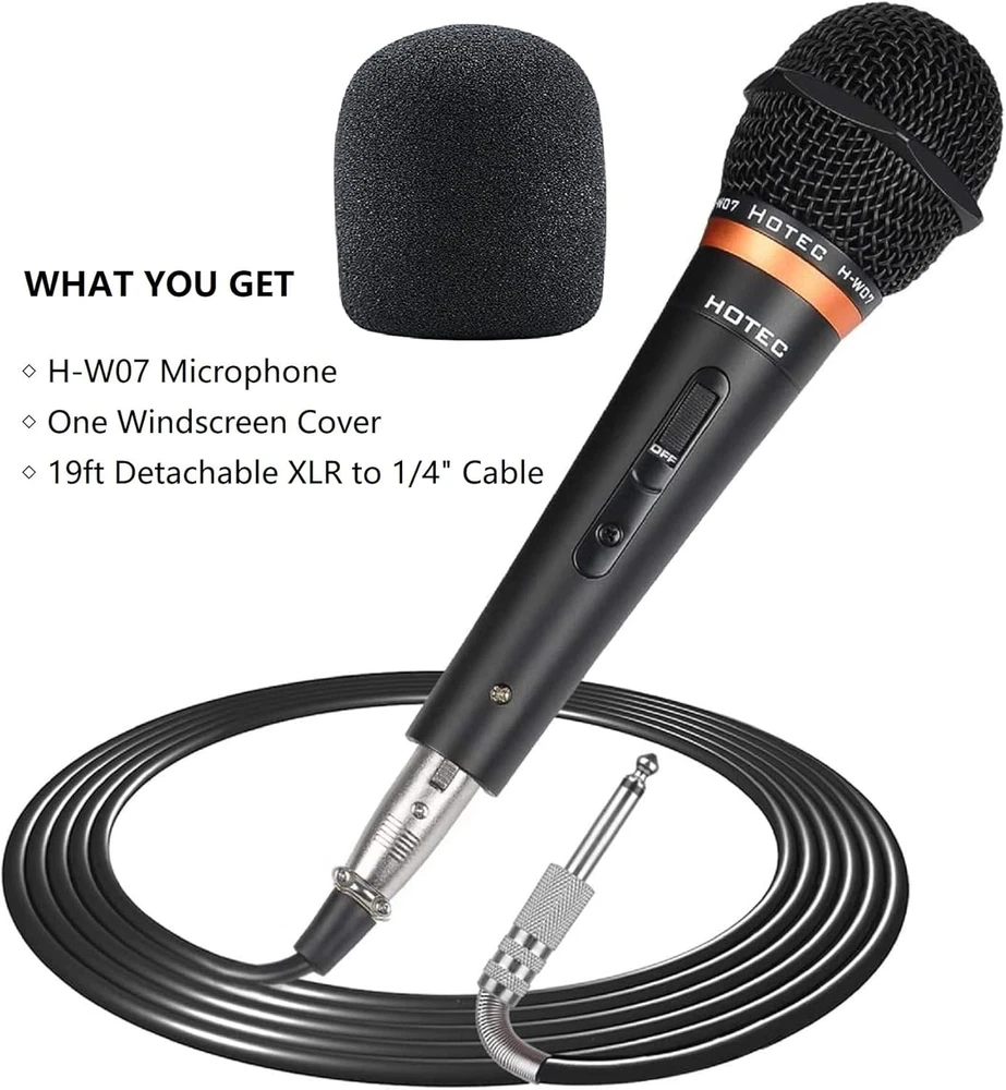 Store New Arrivals Add to Favorite View Feedback Contact Premium Vocal Dynamic Handheld Microphone with 19Ft Detachable XLR Cable and On/Off Switch (Metal Black) (H-W07) Description Item model number H-W07 Signal-to-Noise Ratio 78 Power Source Corded Electric Noise Level 10 dB Material Type Metal, Zinc Audio Sensitivity 45 dB Material Metal, Zinc Number of Channels 1 Model Name vocal dynamic microphones Microphone Form Factor Handheld Is Discontinued By Manufacturer No Package Dimensions 7.99 x 4.65 x 2.43 inches Hardware Platform Karaoke Machine, PA Speaker, DVDs, KTV audios, amplifiers, mixers, tour bus Connector Type XLR Item Weight 1 pounds Connectivity Technology XLR Special Feature Mute Function, Noise Reduction Color Black Compatible Devices Karaoke Machine, PA Speaker, DVDs, KTV audios, amplifiers, mixers, tour bus Polar Pattern Unidirectional Recommended Uses For Product Karaoke Machine, PA Speaker, DVDs, KTV audios, amplifiers, mixers, tour bus Color Name Black Included Components Handheld Microphone, 19ft Detachable XLR Cable, windscreen cover Size H-W07 PREMIUM SOUND QUALITY - This high end Hotec wired dynamic vocal microphone offers cardioid pickup pattern, capturing source signal and minimizing background noise and feedback reproducing, ensures clear and warm vocal sound without distortion SOLID AND DURABLE - Made of zinc alloy, the product solid and durable. High quality metal mesh effectively eliminate pop noise. Protected by metal spring rings, the cable is more durable and avoids bending when moving and swinging the cable FULL COMPATIBILITY - This dynamic handheld microphone supports various devices with 1/4” mic input, such as DVDs, KTV audios, amplifiers, mixers, tour bus and speakers. The mic body is of standard size, it fits standard microphone stand. WIDE APPLICATION - Perfect for professional KTV, stage performance, business meeting, public speaking, family or friend party, outdoor performances, etc. Suitable for either the beginners or the professional users. Plug and play, easy operation PACKING CONTENT – Packed with a nice gift box, a very nice gift idea. Inside the box, there is one H-W07 microphone, one 19ft detachable XLR to 1/4" Cable, one windscreen cover. Product Description Hotec premium vocal dynamic microphone is perfect for vocal transmission or recording for both beginners and professionals. Make yourself heard with this dynamic microphone in karaoke party, DJ, wedding host, church, business meetings, public speaking, classroom activities, outdoor or onstage performances. Plug and Play This handheld microphone is plug and play, easy to operate. It is perfect for the serious musician recording in the studio or out on stage, or for beginners or kids to practice singing. High quality vocal sound Thanks to the high quality moving coil unidirectional dynamic element and the copper wire inside the 19ft detachable cable, it provides clear and warm sound and is a very good choice for voice recording. Easy operation This is a plug and play microphone. This microphone comes with a 19ft detachable cable and it has a ON/OFF switch. Just press OFF when not in use, without the need to detach the cable. ABOUT US We offer the best prices around on high quality products. Our E-store includes media such as books, movies, music and games while offering electronics, toys, sporting apparel, clothing, tools, general home, garden items and more. SHIPPING We are always working hard to ensure your package arrives as soon as possible. Please understand that some factors like weather, high postal traffic, and the performance of shipping companies are outside of our control. We offer free shipping to the lower 48 states and ship within 2 business days of payment, usually sooner. We do not accept P.O. Boxes. Please provide a physical address. For shipping outside of the continental USA, we only use eBay's Global Shipping Program.The item is shipped to KY and then sent to the rest of the world. International customers are responsible for all duties and taxes. Continue to check out in order to calculate costs for shipping the item to your country. Messages regarding eBay's Global Shipping Program MUST be directed at eBay EXCLUSIVELY. RETURNS We offer a 30-Day Return Policy on items which you are not completely satisfied with. You have the option for a full-refund or an exchange of the item. No returns are available on items shipped outside of the USA. PAYMENT We accept PayPal. CONTACT US This page content is yet to come Please ad us to your favorite seller and visit again later Thank You CUSTOMER SATISFACTION We try our very best to make sure every customer is completely satisfied. If there's a problem, message us! We're happy to help. WE ACCEPT Copyright © 2021 AutoDS. | All Rights Reserved