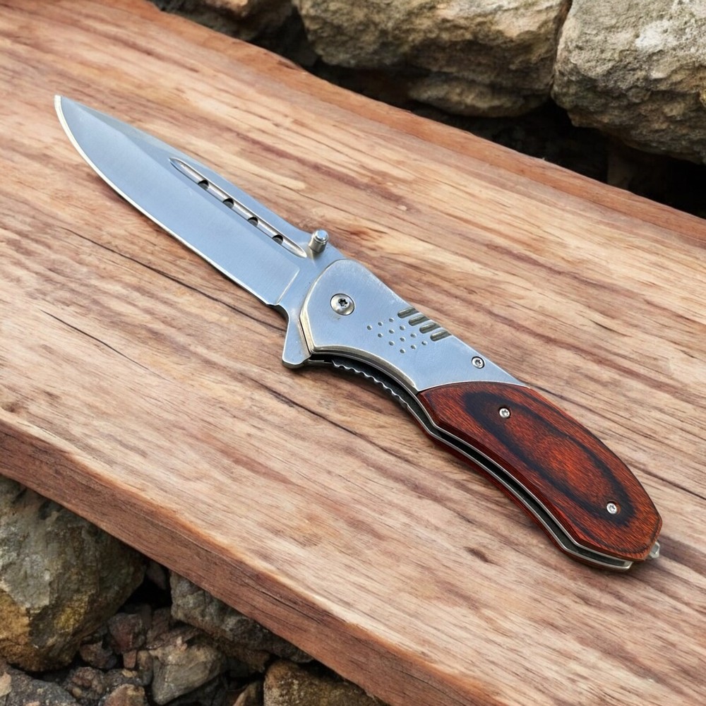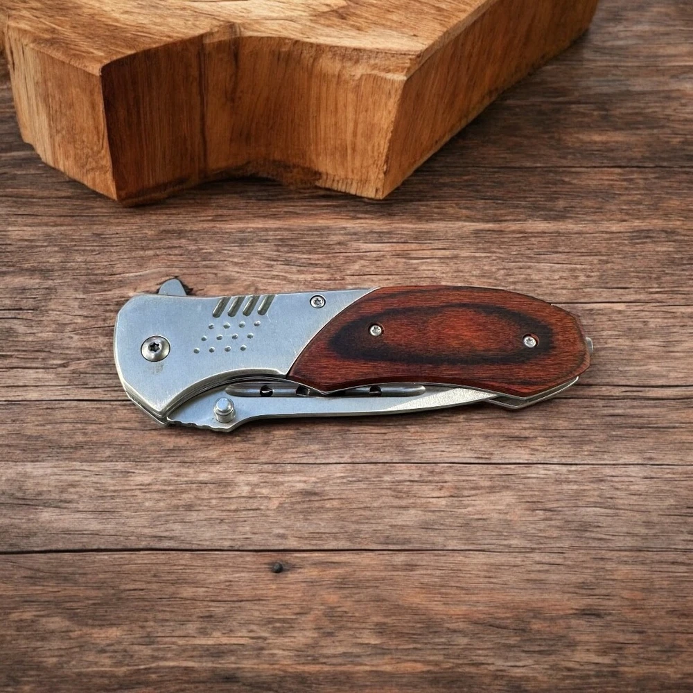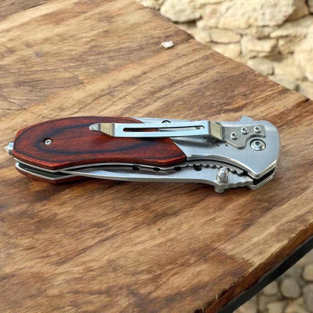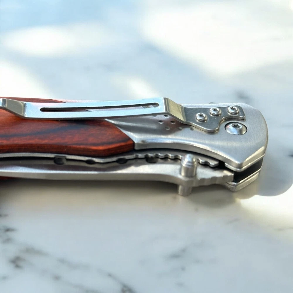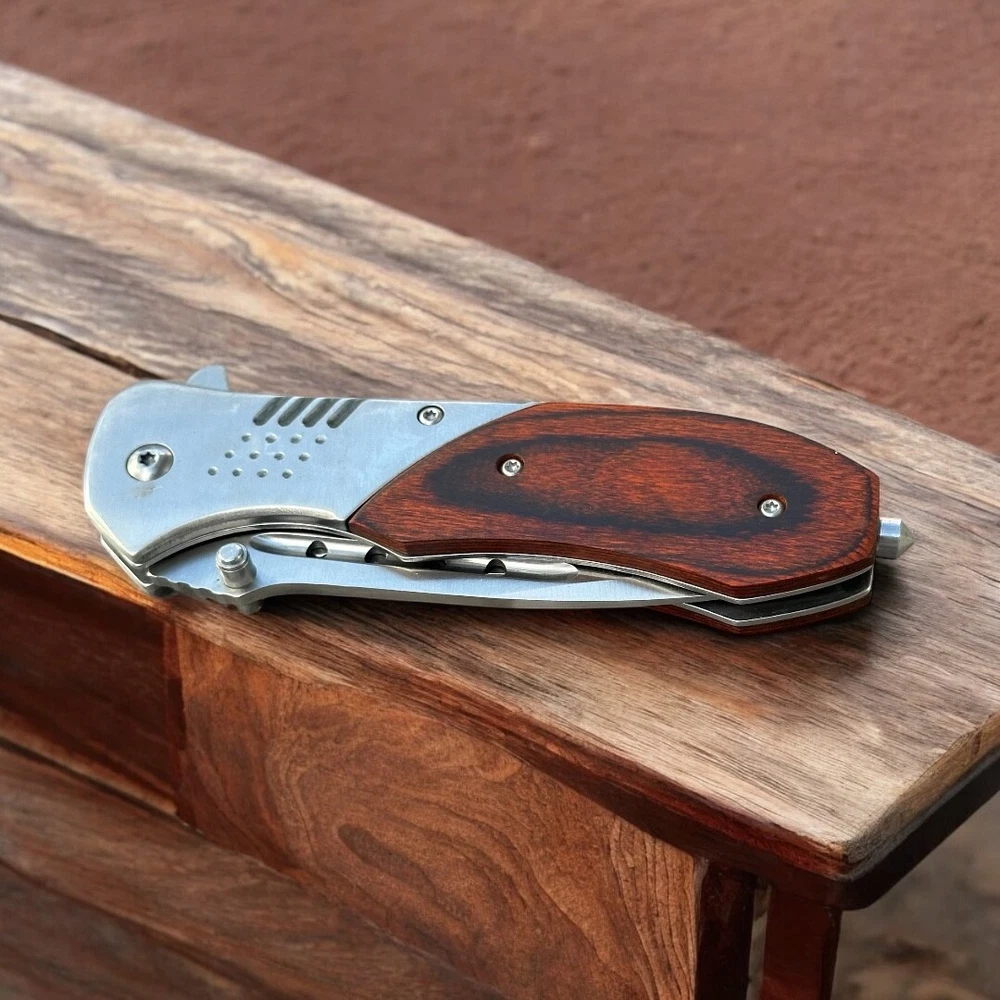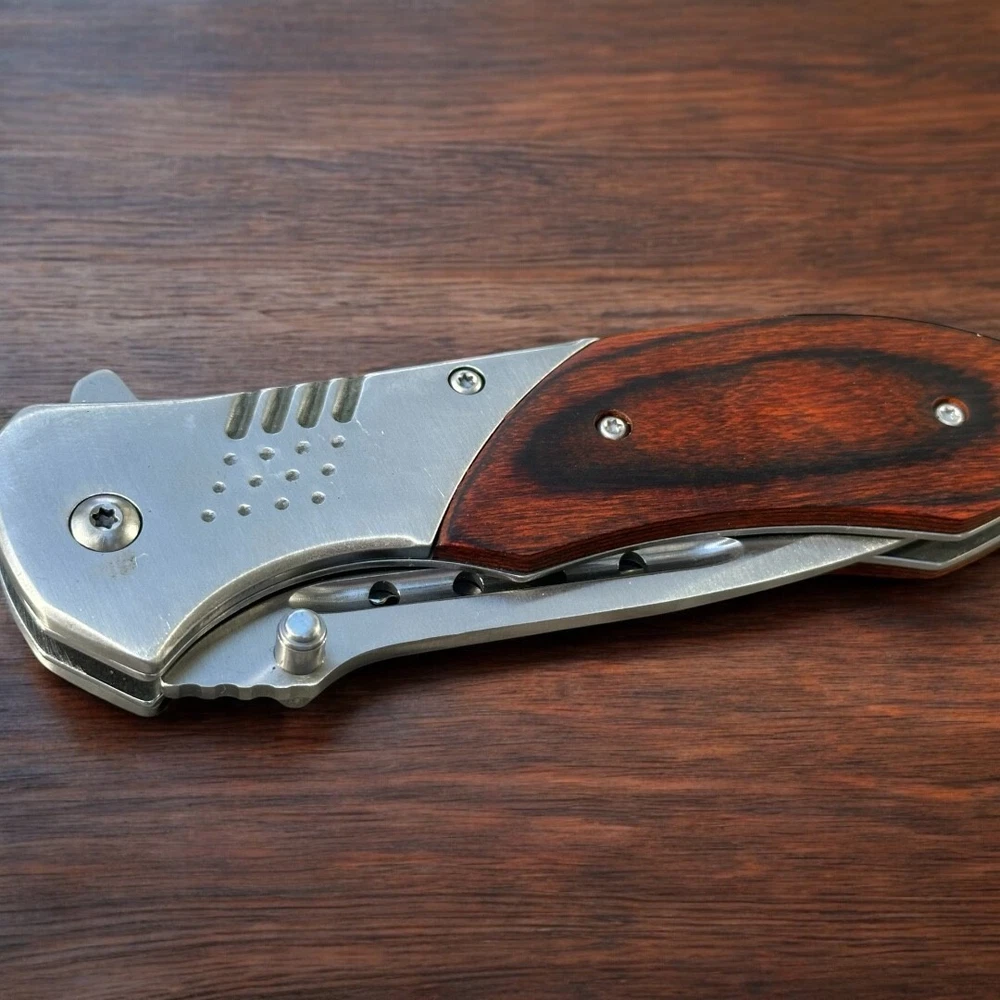 Classic style meets practical function with this Kexmo folding pocket knife , featuring a smooth stainless blade and polished wood inlay handle. Whether youβre outdoors, working on daily tasks, or adding to your collection, this knife delivers timeless utility. π² Handle: Elegant wood grain inlay with brushed stainless steel frame πͺ Blade Type: Drop point β ideal for slicing, everyday cuts, and general utility π§· Deployment: Thumb stud and flipper tab for smooth, one-handed opening π Lock Type: Secure liner lock mechanism to keep the blade safely open during use π§² Compact Design: Easily fits into pockets, toolboxes, or hiking gear π οΈ Additional Feature: Glass breaker end cap for emergency situations This Kexmo knife combines style, reliability, and performance in one sleek design β a standout for anyone who values quality craftsmanship. π¦ Brand new, ships fast and well-packaged π Great gift idea for outdoorsmen, collectors, or everyday carry fans Note: Buyer must be 18 years or older. Please follow all local laws regarding knife purchases.