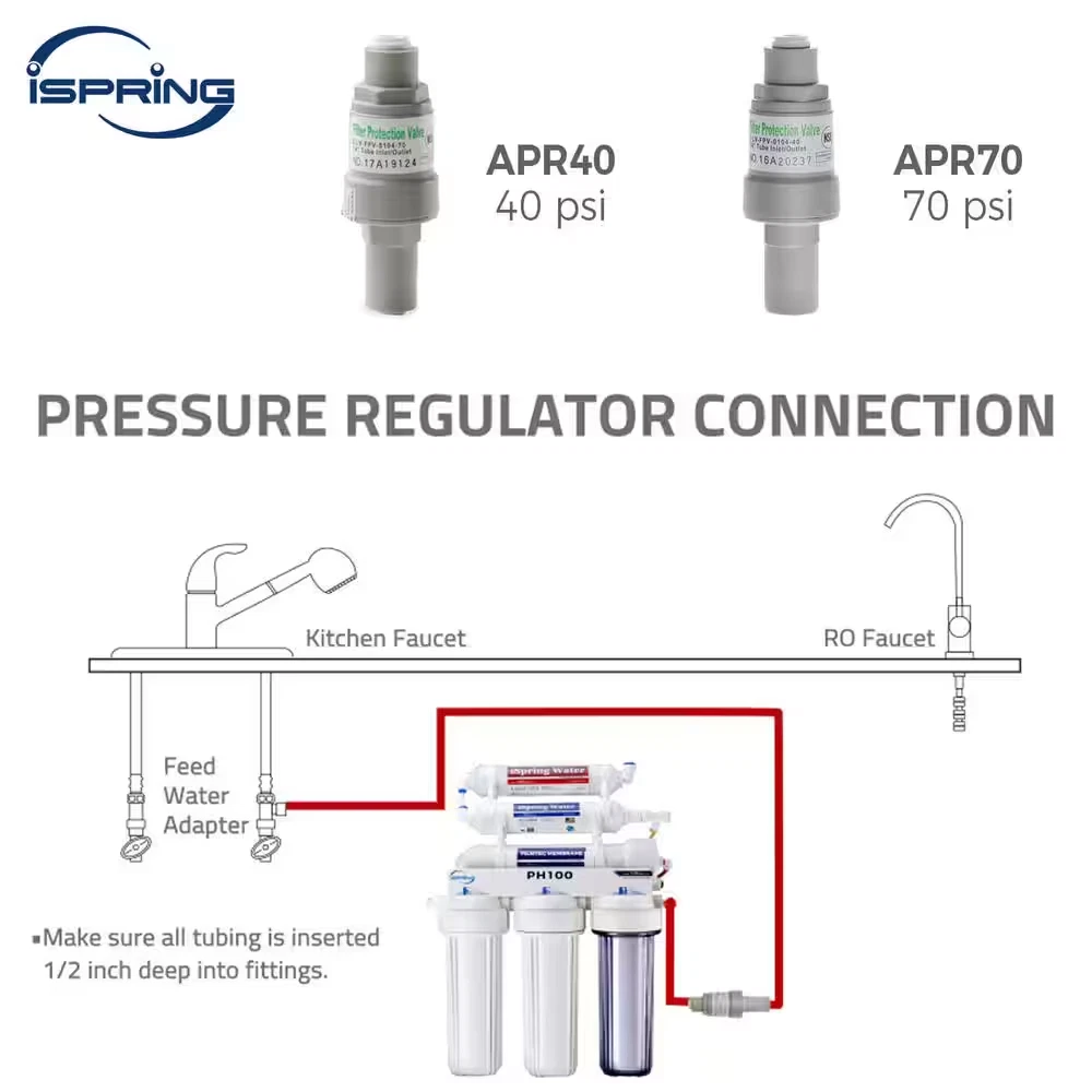 Store New Arrivals Add to Favorite View Feedback Contact Pressure Regulator Filter Protection Valve with 1/4 In. Quick Connect 40 Psi Description Accessory Type Other Brand/Model Compatibility iSpring Pack Size 1 Product Weight (lb) 0.15 lb Returnable 90-Day Manufacturer Warranty none Product Depth (in) 1.25 in Product Height (in) 4 in Product Width (in) 1.25 in Protects equipment by regulating the water pressure 1/4 in. push-in quick connect design for easy setup Ideal for RO systems, ice makers, filters, and other appliances The Pressure Regulator / Protection Valve is to be installed before water applicants such as reverse osmosis systems, water filters, ice makers, coffee machines, chillers, hot water tanks, water coolers, etc, that are sensitive to water pressure. The built-in mechanism limits water pressure to below certain level, such as 70 psi, thus reduces the impact of high water pressure and/or water hammer. The ISPRING Pressure Regulars are compliant with ISPRING's high quality standard to ensure performance and durability. Designed to be used in installations with high feed pressure Used to protect reverse osmosis systems, water filters, ice makers, and etc 1/4 in. push-in quick fittings for easy installation Water flow rate: 4 GPM (15L/min) at 100 psi How Can We Help? Text us now! (678)261-7611 Call Only M-F 9-5 EST / (470)560-0012 Text Only M-F 9-5 EST ABOUT US We offer the best prices around on high quality products. Our E-store includes tools, general home, garden items and more. SHIPPING We are always working hard to ensure your package arrives as soon as possible. Please understand that some factors like weather, high postal traffic, and the performance of shipping companies are outside of our control. We offer free shipping to the lower 48 states and ship within 4 business days of payment, usually sooner. We do not accept P.O. Boxes. Please provide a physical address. RETURNS We offer a 30-Day Return Policy on items which you are not completely satisfied with. You have the option for a full-refund or an exchange of the item. No returns are available on items shipped outside of the USA. PAYMENT We accept PayPal. CONTACT US This page content is yet to come Please ad us to your favorite seller and visit again later Thank You CUSTOMER SATISFACTION We try our very best to make sure every customer is completely satisfied. If there's a problem, message us! We're happy to help. WE ACCEPT Copyright © 2017 AutoDs. | All Rights Reserved