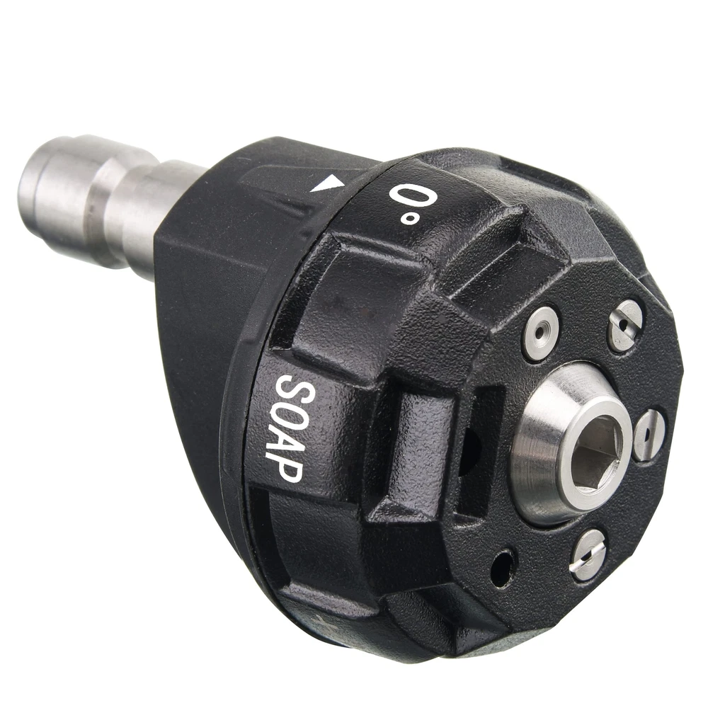 MULTI-ANGLE ADJUSTMENT: Power washer nozzle has 0 degree, 15 degree, 25 degree, 40 degree, +0 degree and soap, help you clean different angles effectively. UPGRADE FUNCTION: Pressure washer tip’s working pressure is up to 4000 PSI, and pressure washer soap nozzle’s Orifice is 3.0. Pressure washer spray nozzle’s suitable for most brand pressure washer, not easy to leak. EASY to INSTALL: 6/1 pressure nozzle sprayer with 1/4’’ quick connector, you can connect 6 in 1 pressure washer nozzle 360 to pressure washer gun and pressure washer wand directly, saving your lots of time. CONVENIENT to CARRY: 6-in-1 power washer nozzle in size and light in weight, but the water flow is strong, more convenient to carry and use, and it is a rational and reliable helper for your cleaning work. EXCELLENT QUALITY: Power washer spray nozzle is made of aluminum, high-quality plastic, and durable solid brass, which is rust-resistant, watertight, and has excellent resistance to corrosion and weathering.