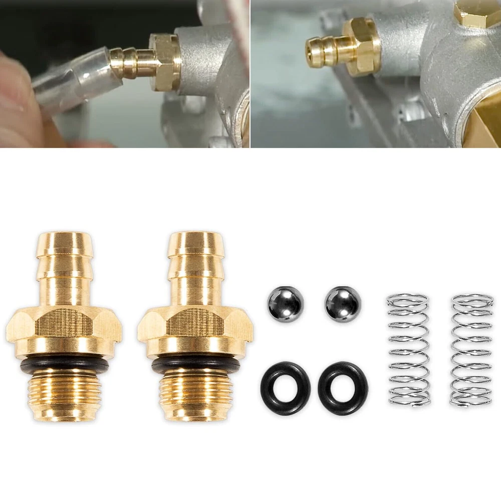 【Compatible】 Pressure Washer Soap Syringe Kit is compatible with pumps 190593GS, 190635GS and 203640GS. (1/8'' -27 BSP male thread) 【Replacement method】 Remove the old fuel injector with a wrench. Remove any sticky or dry soap from the container. Make sure the rubber o-ring is on the injector as shown. Put the ball bearing in the injector, and then use the spring on the small end of the spring against the ball bearing. Insert the injector into the socket and use a 13mm wrench to tighten the injector. Do not overtighten or it will damage the o-rings or crack the white metal on the pump. 【Function】 If parts on your high pressure washer pump are worn, rusted, or clogged with hard water deposits, you can replace it with this set. This will make your high pressure washer pump smoother to use. 【Package contains】 2 chemical syringe kits including 2 brass barbs, 2 check valve balls, 2 springs, 2 O-rings. 【Satisfaction Guarantee】 Provides a 100% satisfied after-sales service. If you are not satisfied with it, simply return it within 60 days for a full refund. Premium Support 1 year Warranty.