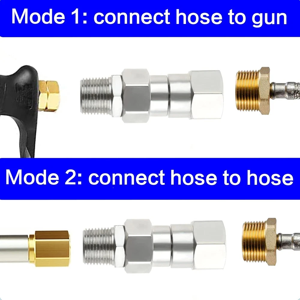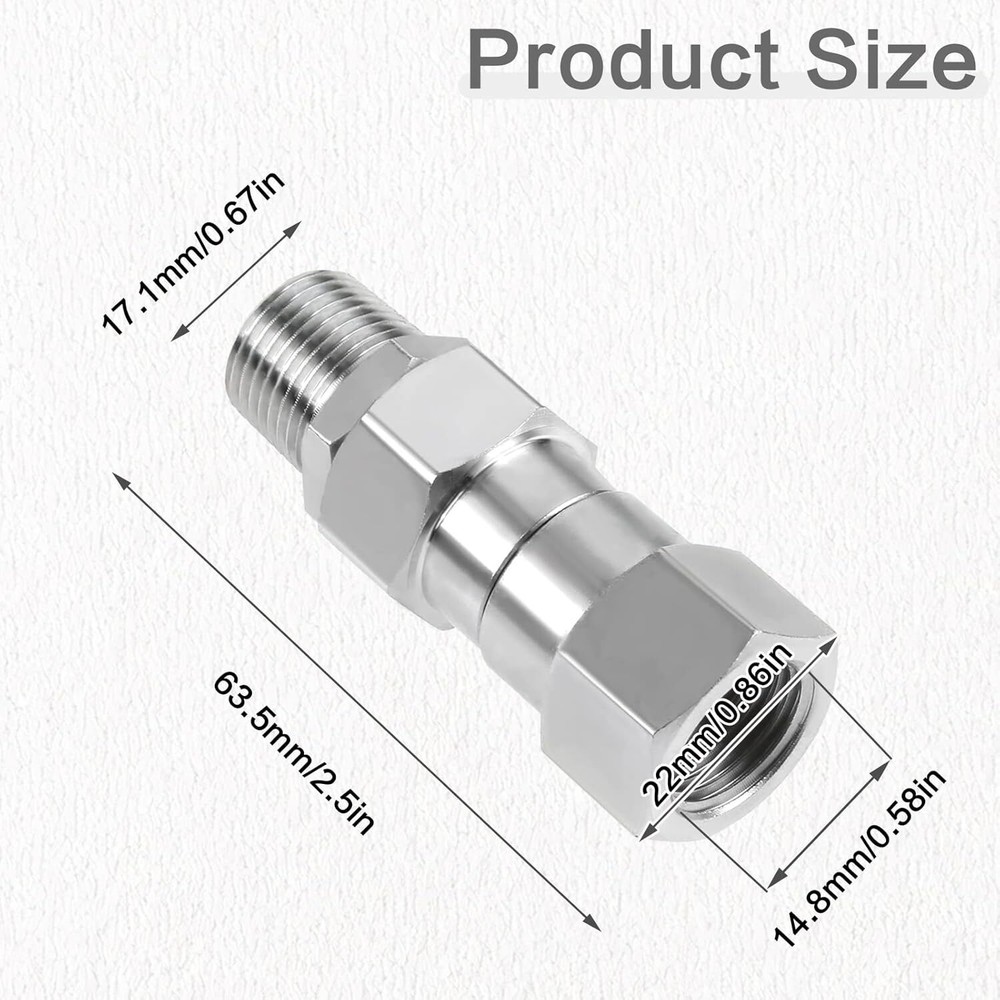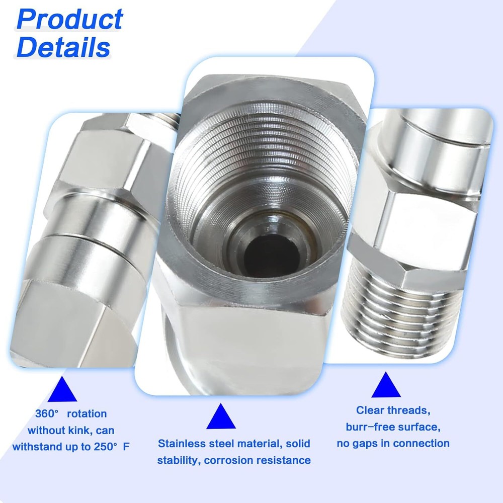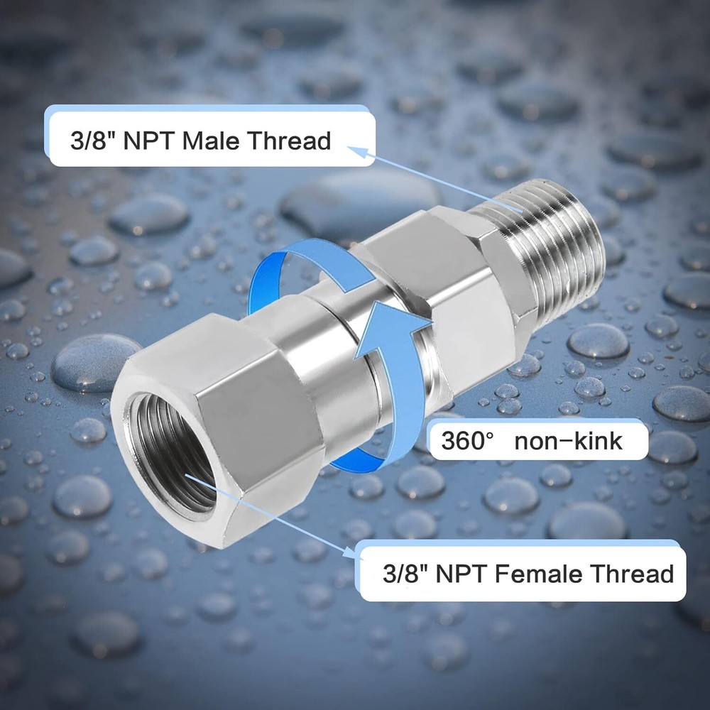 Pressure Washer Swivel 3/8 Inch NPT Male Thread Fitting Stainless Steel 360 D... 【Premium Material】:Pressure washer rotary joints are made of 304 stainless steel, with solid structure, high hardness, corrosion resistance and long service life. >【Excellent Design】: 360 degree rotating design easily solves twisting and kinking of the hose while working, reducing stress on the gun, hose and operator, making your cleaning job easier. >【Fitting Size】: 3/8'' NPT female thread to 3/8''NPT male thread, suitable for standard 3/8''NPT fitting, can connect hose to hose or gun to hose. >【Features】: The maximum temperature can reach 120℃/250 F, the maximum working pressure is 4500 PSI, and the maximum flow rate is 30.0 GPM. >【SERVICE】: Please make sure you buy the correct model before purchase to avoid wasting your money and time. If there is a problem with the kit, please contact us as soon as possible, we will reply to you in time. Shipping We offer FREE shipping on all orders! We ship within Three business days of payment, usually sooner. Local pickups and combined shipping options are not provided at this time. Return You can return a product for up to 30 days from the date you purchased it. Any product you return must be in the same condition you received it and in the original packaging. Please keep the receipt. Payment We accept payment by any of the following methods: PayPal Please pay as soon as possible after winning an auction, as that will allow us to post your item to you sooner! Feedback Customer satisfaction is very important to us. If you have any problem with your order, please contact us and we will do our best to make you satisfied. Contact Us If you have any queries, please contact us via ebay. We usually respond within 24 hours on weekdays. Please visit our eBay store to check out other items for sale! Thank you for shopping at our store.