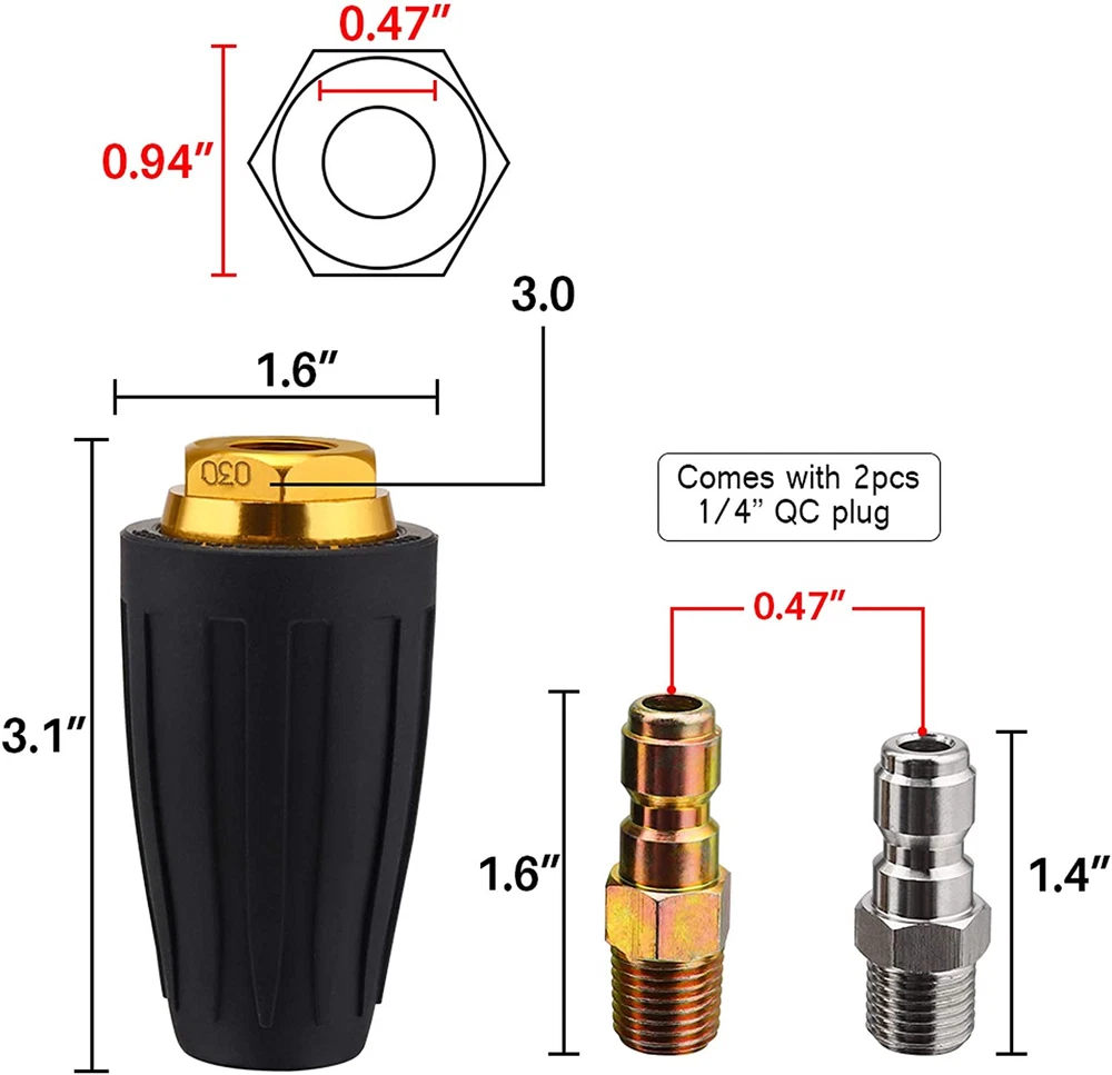 Store New Arrivals Add to Favorite View Feedback Contact Pressure Washer Turbo Tip 3000PSI Turbo Nozzle Kit 360° Rotating Presure Washer Turbo Nozzles 1/4'' Quick Connect with 5 Nozzle Tips Kit Multiple Degrees(0, 15, 25, 40,Soap) 3.0 GPM 3.0 Orifice Description Valve Type turbo valve Inlet Connection Type National Pipe Tapered Outlet Connection Size 0.25 Inches Exterior Finish Aluminum,Rubber,Stainless Steel Material Stainless Steel Maximum Operating Pressure 3.6E+3 Pound per Square Inch Item Weight 6.3 ounces Number of Ports 2 Outlet Connection Type National Pipe Tapered Inlet Connection Size 0.25 Inches Specification Met ASME B16.34 Package Dimensions 5.67 x 4.8 x 1.46 inches Size 1- Turbo Nozzles 【Turbo Spray Nozzle Kit】- The pressure washer turbo nozzle is made of aluminum alloy and a brass 1/4" quick connect plug with a sharp ceramic nozzle and rubber exterior resistant to oxidation and corrosion for better cleaning your garden. 【Powerful Jet of Water】- 1/4" quick connect design, for use with pressure washers up to 3,600 PSI, gallons per minute: 3.0(3 GPM), nozzle orifice size: 3.0, maximum operating temperature: 114°F. Creates 360° powerful jet of water! 【5 Pressure Washer Tip】- 1 Red 0 Degree Nozzle Tip (Stainless Steel), 1 Yellow 15 Degree Nozzle Tip (Stainless Steel), 1 Green 25 Degree Nozzle Tip (Stainless Steel), 1 White 40 Degree Nozzle Tip (Stainless Steel), 1 Black Soap Nozzle (Brass). 【200% Rotate Speed】- Turbo Tip spin in a circular motion (0-degree nozzle is a straight line)at high speeds to increase both the intensity and cleaning area of the nozzle. There is a ceramic ball inside that spins under pressure and the pattern is circular regardless of nozzle position. Turbo nozzles clean up to 40% faster than. 【Clean Any Area】- The Spray Nozzle is ideal for removing a large amount of dirt.Cleaning of soiled bricks, concrete, vinyl, or any other large amount of dirt or heavily soiled areas. It can also strip paint, and it has the ability to damage whatever it comes in contact with. Product Description ABOUT US We offer the best prices around on high quality products. Our E-store includes media such as books, movies, music and games while offering electronics, toys, sporting apparel, clothing, tools, general home, garden items and more. SHIPPING We are always working hard to ensure your package arrives as soon as possible. Please understand that some factors like weather, high postal traffic, and the performance of shipping companies are outside of our control. We offer free shipping to the lower 48 states and ship within 2 business days of payment, usually sooner. We do not accept P.O. Boxes. Please provide a physical address. For shipping outside of the continental USA, we only use eBay's Global Shipping Program.The item is shipped to KY and then sent to the rest of the world. International customers are responsible for all duties and taxes. Continue to check out in order to calculate costs for shipping the item to your country. Messages regarding eBay's Global Shipping Program MUST be directed at eBay EXCLUSIVELY. RETURNS We offer a 30-Day Return Policy on items which you are not completely satisfied with. You have the option for a full-refund or an exchange of the item. No returns are available on items shipped outside of the USA. PAYMENT We accept PayPal. CONTACT US This page content is yet to come Please ad us to your favorite seller and visit again later Thank You CUSTOMER SATISFACTION We try our very best to make sure every customer is completely satisfied. If there's a problem, message us! We're happy to help. WE ACCEPT Copyright © 2021 AutoDS. | All Rights Reserved