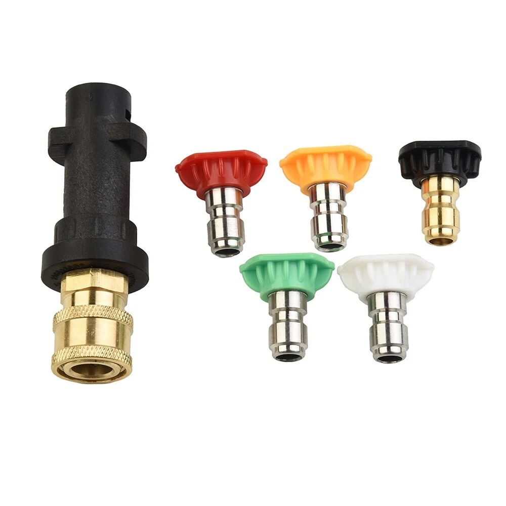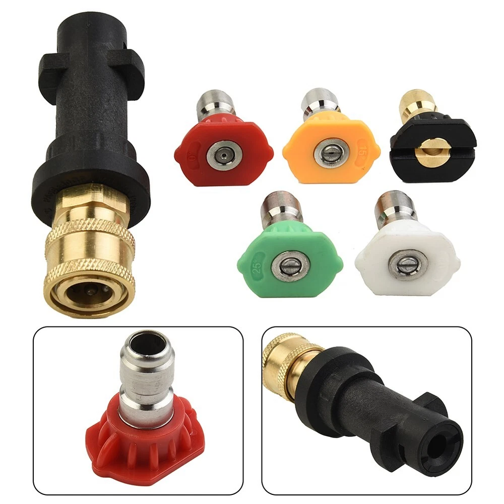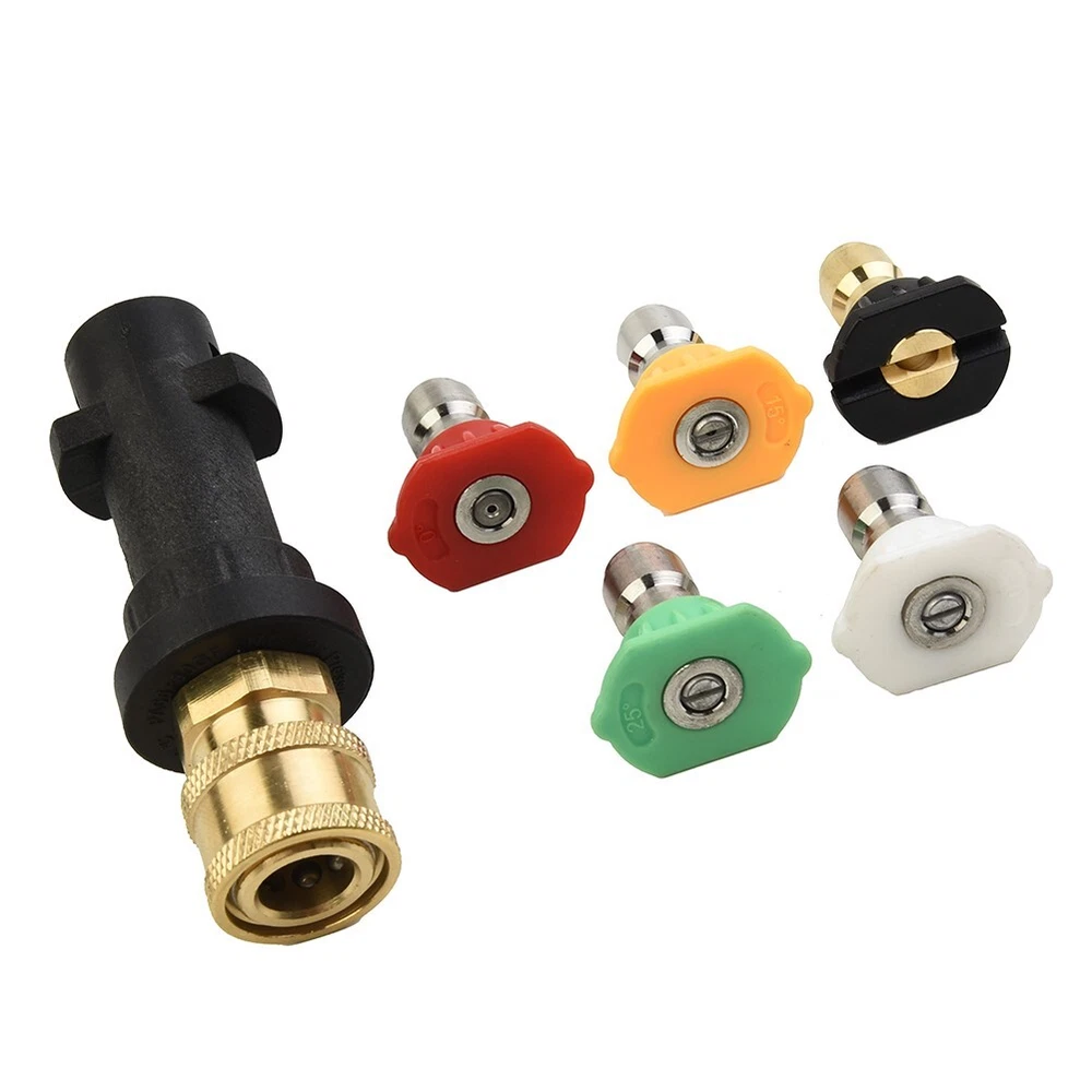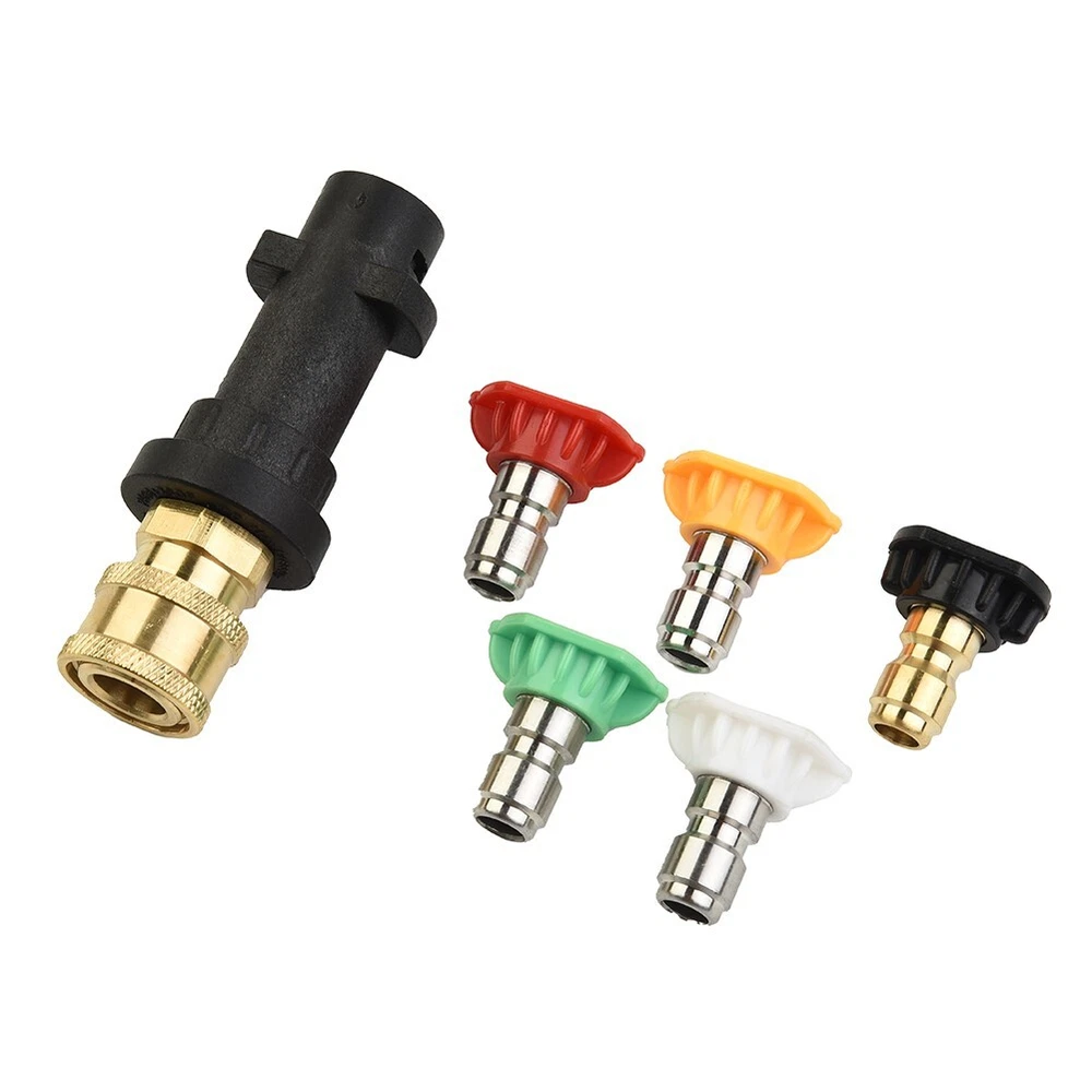 Pressure-Washer Spray Nozzles+ Adapter For K Series 1/4 Quick Connect DESCRIPTION Description: * brand new and high quality. *Made of high quality material, and practical to use. *Pressure Washer Spray Nozzles+ Adapter For for for K Series 1/4 Quick Connect *1 Adapter for for , 1 Black Brass soap nozzle, 1 Red Stainless Steel Nozzle Tip (0 Degree), 1 Yellow Stainless Steel Nozzle Tip (15 Degree), 1 Green Stainless Steel Nozzle Tip (25 Degree), 1 White Stainless Steel Nozzle Tip (40 Degree). *5 Nozzle Tips have different angle (0, 15, 25, 40, soap). You can choose to use different nozzles according to actual needs. Such as cleaning the house, washing the car. They also can be attached to a Quick-Connect Wand for swifter application and more. Nozzles allow you to quickly and easily clean hard-to-reach areas without a ladder. for reaching the bottom of the car, car rims, inaccessible corners, sink cleaning, etc. *5 high pressure washer nozzles are made of high-quality brass and stainless steel with 1/4 '' quick-connect design, pressure up to 4000 PSI. Nozzle orifice size is 3.0, It can be used in combination with a foam. All of our nozzles are high quality, long-term work, environmentally friendly, . *1/4 inch internal thread quick connector is made of brass, which can prevent rust and . 1/4 inch quick link design can realize faster application, easy to connect and disassemble. *Watering equipment is for quick cleaning of large vehicles such as RVs, watering equipment, agricultural equipment, spraying on plants such as trees, and cleaning a wide range of ground. Package includes: 1*Adapter+5*Nozzle Note: 1. The real color of the item may be slightly different from the pictures shown on website caused by many factors such as brightness of your monitor and light brightness. 2. Please allow slight manual measurement deviation for the data. POLICES Shipping Payment WARRANTY We only ship to confirmed ebay Order addresses. Please comfirm that your Order address is in line with your shipping address. Please kindly note that the c ombined shipping is not provided because the shipping fee is calculated by weight. Also, the each additional item means exactly the the same color and size. It takes about 7 -15 working days to US; about 10-30 working days to other countries. Transit time may be a little delayed because of the bad weather and customs inspection . If you do not receive your item within 30 working days since payment finished, please contact us immediately for further assistance. Payment must be completed within 5 days. If you have any problems about payment, please contact us via ebay message. We strive for 100% customer satisfaction! Positive Feedback is very important to us. If you have any questions, p lease feel free to contact us via "Ask seller a question" . We will reply your email within 24 working hours.