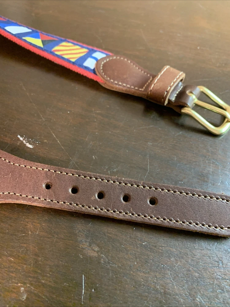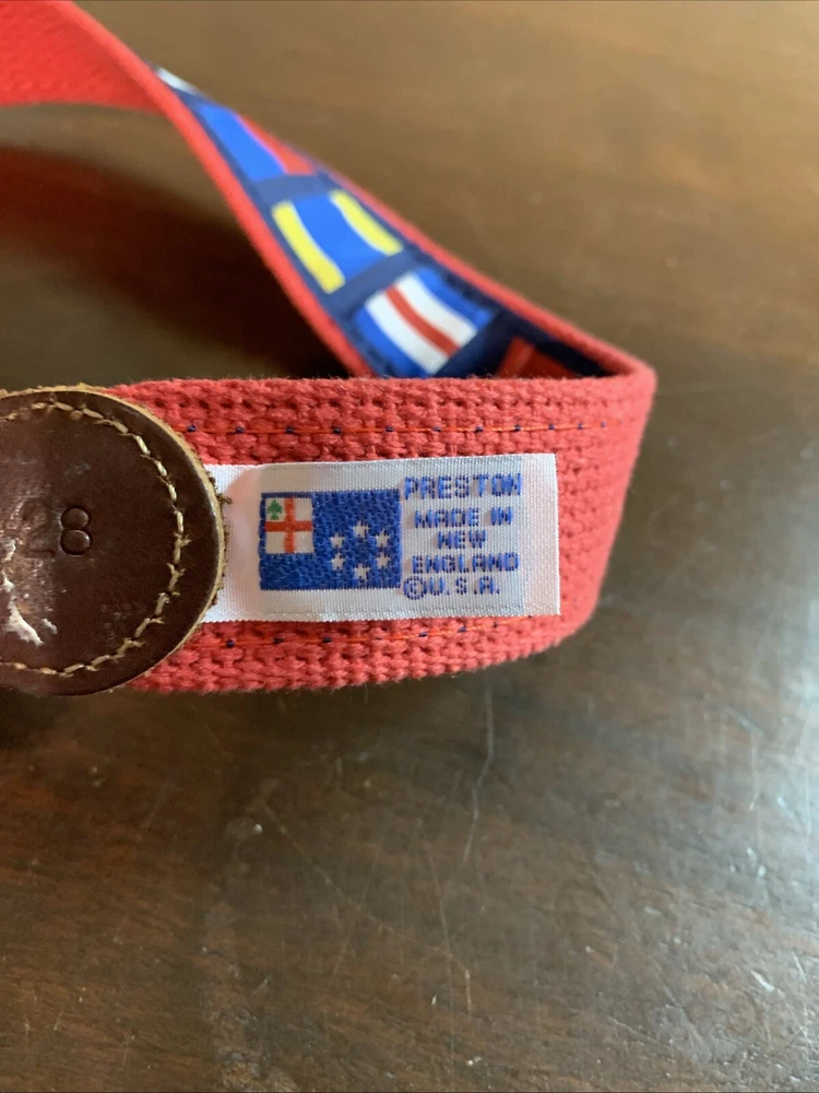 Hardware Material:BrassAccents:BuckleMPN:n/aColor:BlueCharacter:BlueMaterial:Cotton, LeatherDepartment:TeensCountry/Region of Manufacture:United StatesTheme:NauticalBelt Width:NormalFeatures:BucklePattern:NauticalSize:28Brand:Preston LeatherSize Type:RegularType:BeltVintage:NoHandmade:YesStyle:Braided/Woven Belt
