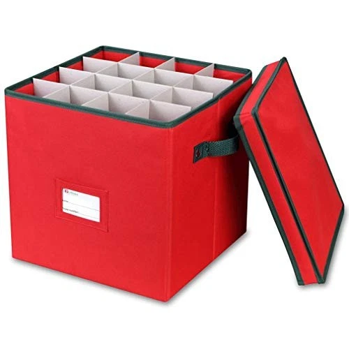 Primode Christmas Ornament Storage Box with Dividers | Stores up to 64 Red Description Features: PRIMODE Durable Ornament Storage Box & Organizer, Strong tear-proof material Heavy duty polyester construction Dimensions: 12" Height X 12" Wide X 12" Length, Large enough to hold up to 64 Accessories & exam’s Tree Decorations Individual compartments - 4 Trays with 4 panels set horizontally & diagonally are included with the storage box to form perfectly sized square 64 compartments Storage Cube comes with a Removable lid that is easy to open and close keeping insects and dust out Built-in Heavy duty reinforced Handles for easy Carrying when fully loaded, includes Plastic tag compartment on side Product Details: Brand: Primode Color: Red Material: Polyester, Polyester Blend Special Feature: foldable, portable, lightweight Recommended Uses For Product: Decorations Product Dimensions: 12"L x 12"W x 12"H Water Resistance Level: Water Resistant Item Weight: 3.51 Pounds Opening Mechanism: Lift-Off Lid Shape: Square Pattern: Solid Number of Items: 1 Number of Compartments: 64 Item Package Quantity: 1 Closure Type: Flip Top Manufacturer: Primode Item Weight: 3.51 pounds Is Discontinued By Manufacturer: No Number Of Pieces: 1 Special Features: foldable, portable, lightweight Batteries Included?: No Batteries Required?: No Brand: Primode Color: Red Material: Polyester, Polyester Blend Special Feature: foldable, portable, lightweight Recommended Uses For Product: Decorations Handling We will ship all orders within 3 business day of payment. Delivery We take pride in offering fast and reliable delivery for your orders! We are committed to getting your products to you as quickly as possible. Generally, we would like to inform you that all orders will be delivered to you within 1-3 business days after processing.However, in some cases, delivery times may vary depending on the buyer's location. Especially in remote or rural areas, the expected delivery time may be extended. In such situations, we do our best to ensure that your order reaches you as quickly as possible.If there are any delays, we will be happy to contact you to explain the situation. Our goal is to enhance your satisfaction with our fast delivery times. We work diligently to ensure that your order arrives safely.Trust us and enjoy our speedy delivery! Return Policy All items qualify for returns within 30 days of receipt. Buyer is responsible for return shipping on any item that is not damaged. Feedback We take our reputation seriously, we buy and sell online, so we understand the value of trust. If you are unsatisfied with your order, please contact us and we will work with you to resolve it to your satisfaction.