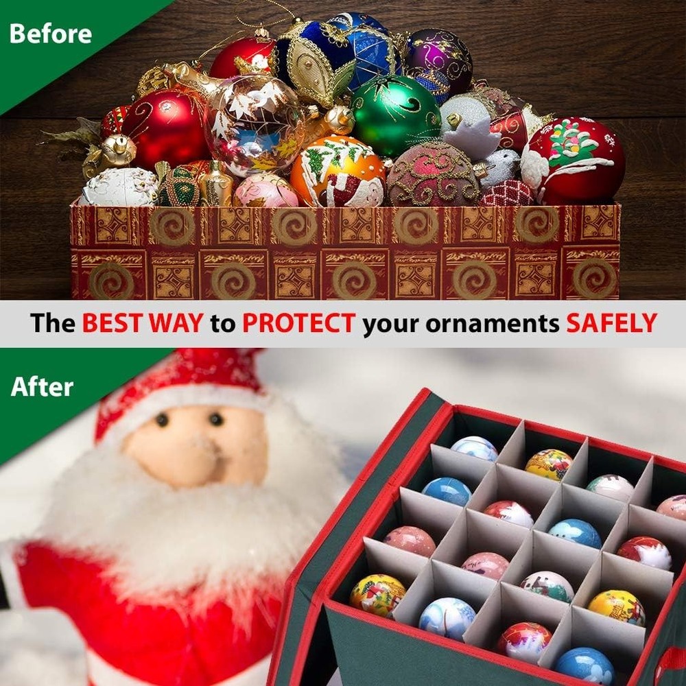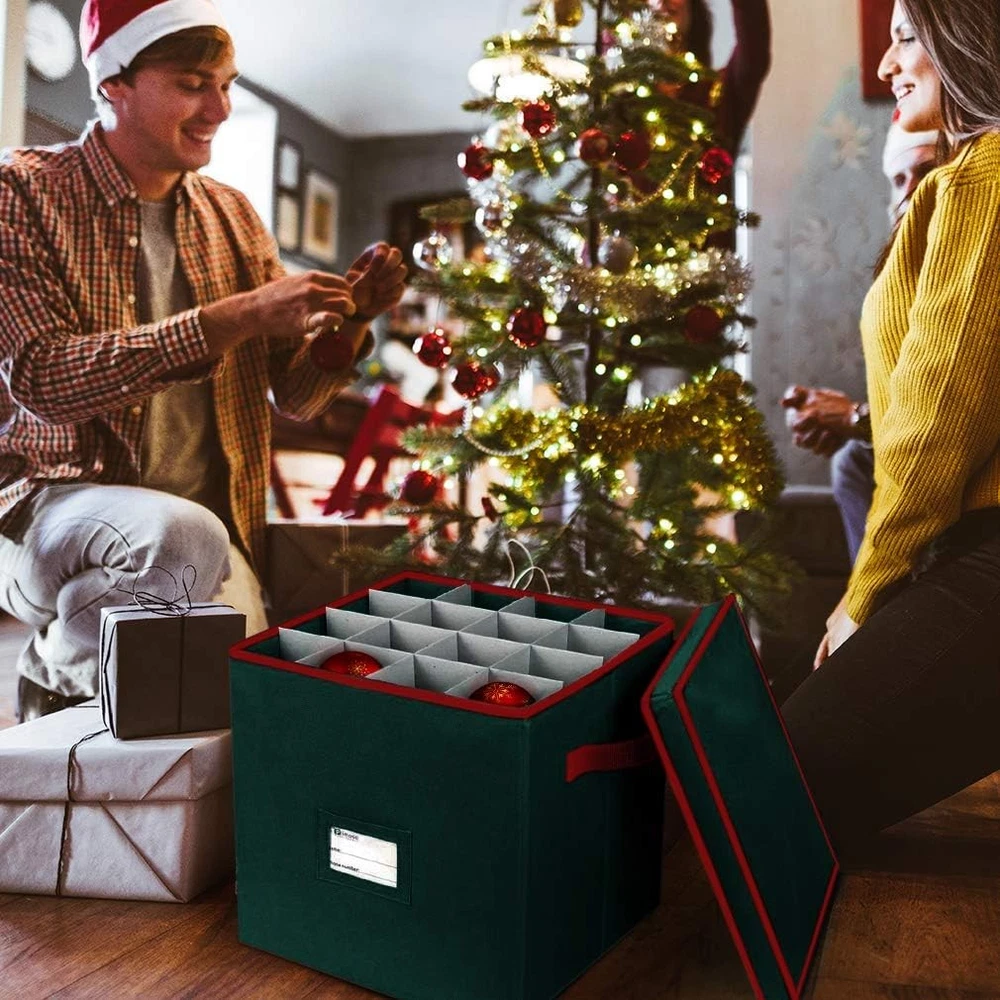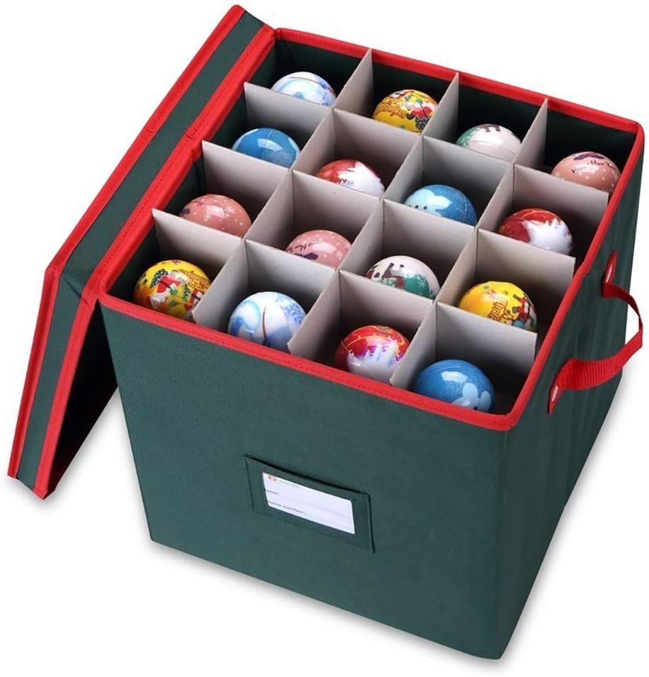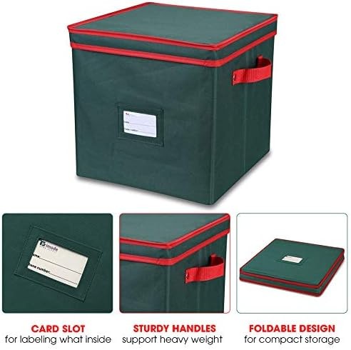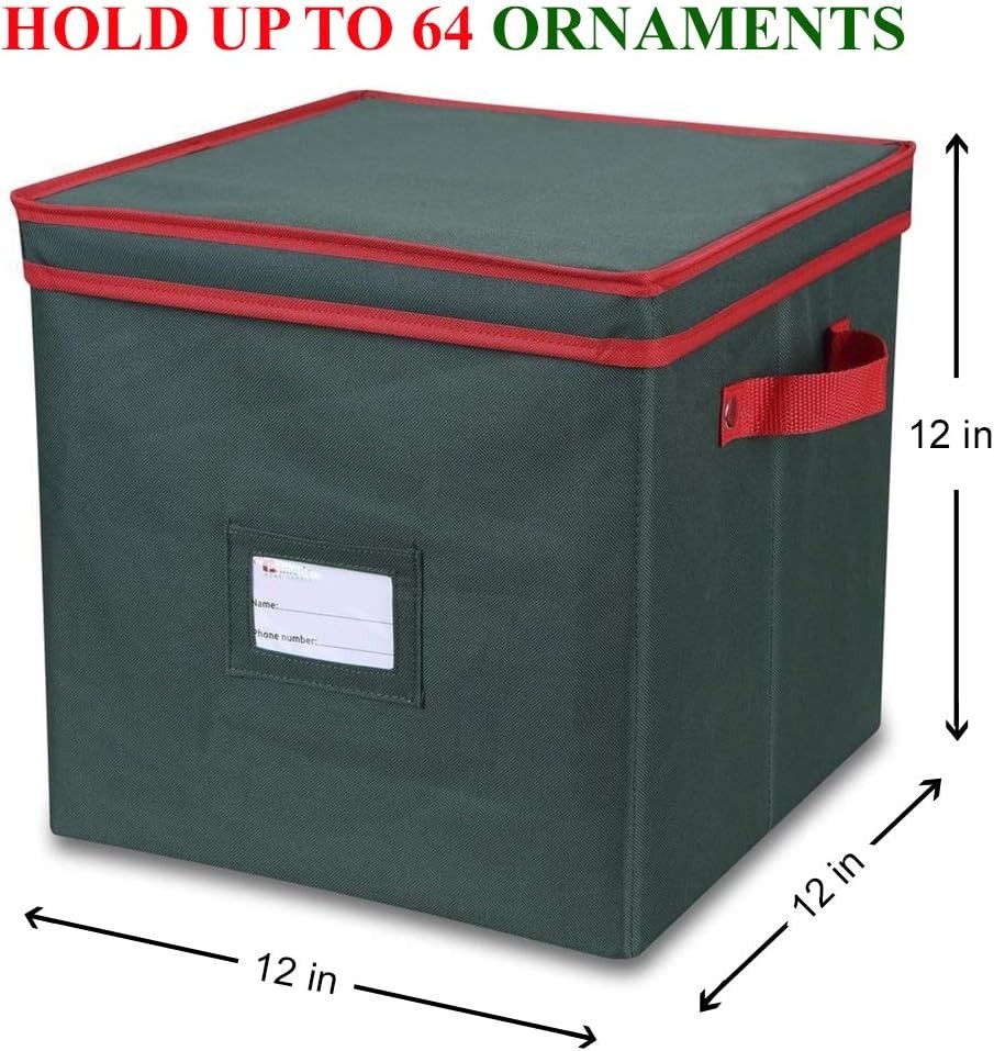 Primode Christmas Ornament Storage Box with 4 Trays, Holds Up to 64 Green Product Details Brand: Primode Color: Green Material: 600D Oxford Material Special Feature: impact_resistant, stackable, portable, lightweight, lockable, Durable Removable Style: Modern Recommended Uses For Product: Decoration Product Dimensions: 12"L x 12"W x 12"H Closure Type: Snap Water Resistance Level: Not Water Resistant Item Weight: 3.5 Pounds Opening Mechanism: Lift-Off Lid Shape: Square Pattern: Solid Number of Items: 1 Number of Compartments: 16 Item Package Quantity: 1 Material Feature: Durable, Tear-proof Occasion: Christmas Manufacturer: Primode Part Number: No Model Item Weight: 3.5 pounds Item model number: No Model Is Discontinued By Manufacturer: No Number Of Pieces: 1 Special Features: impact_resistant, stackable, portable, lightweight, lockable, Durable Removable Batteries Included?: No Batteries Required?: No Brand: Primode Color: Green Material: 600D Oxford Material Special Feature: impact_resistant, stackable, portable, lightweight, lockable, Durable Removable Style: Modern PRIMODE Durable Ornament Storage Box & Organizer, Strong tear-proof material Heavy duty polyester construction Dimensions: 12" Height X 12" Wide X 12" Length, Large enough to hold up to 64 Accessories & Xmas Tree Decorations Individual compartments - 4 Trays with 4 panels set horizontally & diagonally are included with the storage box to form perfectly sized square 64 compartments Storage Cube comes with a Removable lid that is easy to open and close keeping insects and dust out Built-in Heavy duty reinforced Handles for easy Carrying when fully loaded, includes Plastic tag compartment on side