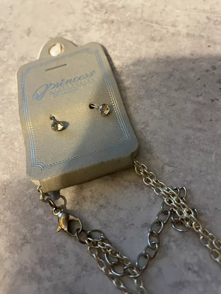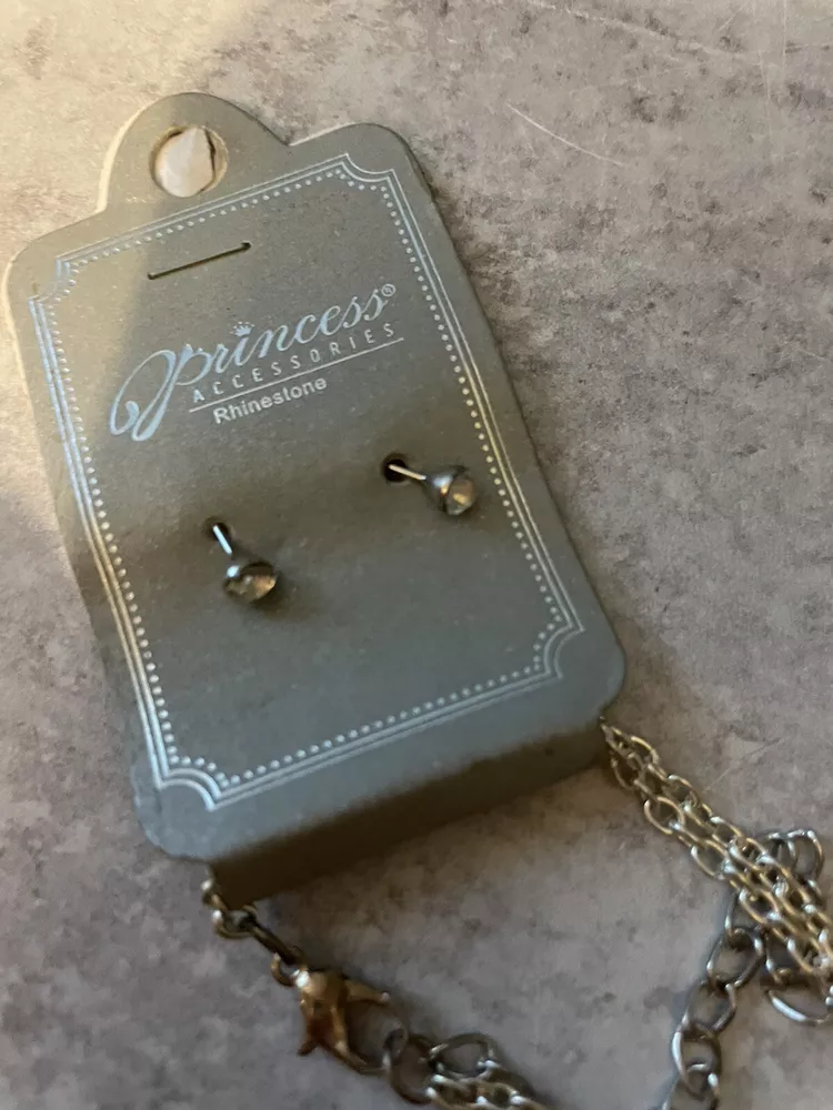 Princess Accessories Rhinestone Cross Necklace And Earrings With Mustache NWT