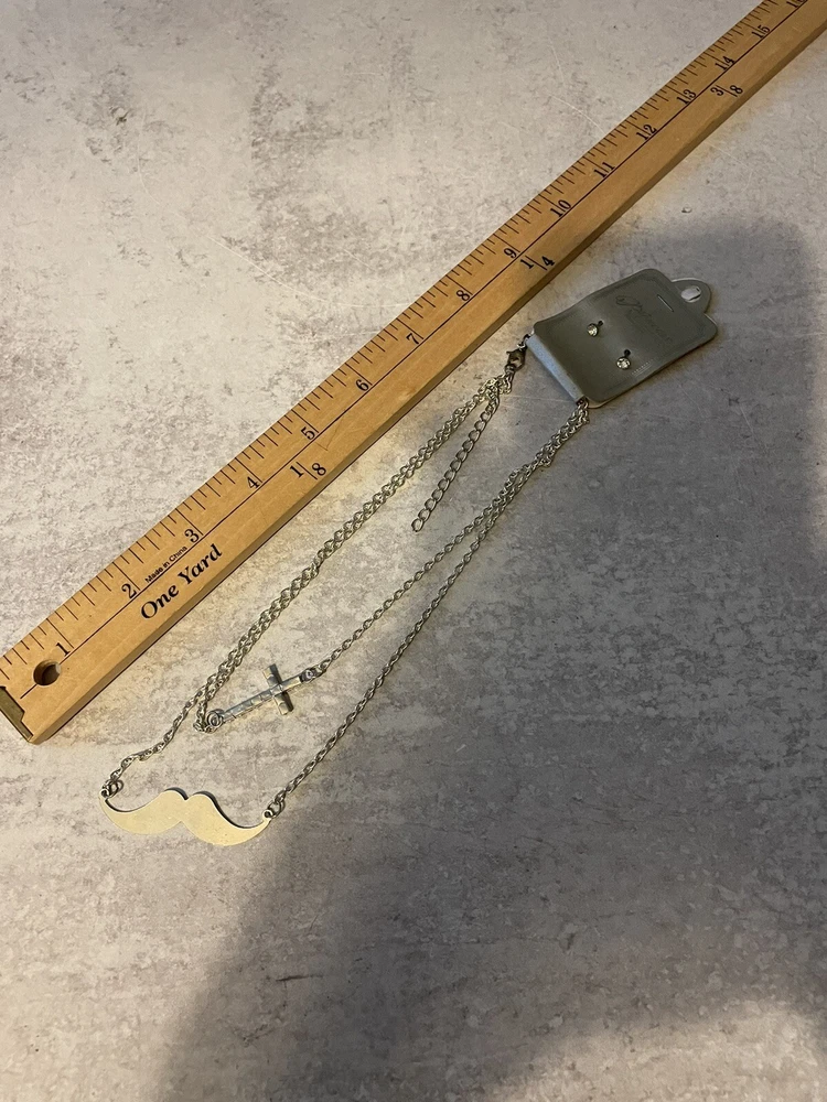 HomePrincess Accessories Rhinestone Cross Necklace And Earrings With Mustache NWT