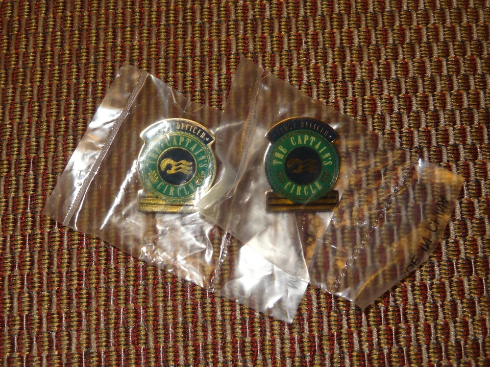 Enhance your collection with this set of two Princess Cruise Lines Captain's Circle First Officer Lapel Pins. These pins are a perfect addition for any collector who is interested in souvenirs and travel. The pins are not handmade and have not been modified in any way. The set includes two pins with the same design. The pin's design features the title "Captain's Circle" and the other one features the title "First Officer". These pins are great for anyone who loves to collect souvenirs or travel-related items. They are perfect for pinback enthusiasts and collectors alike. Add this set to your collection today!