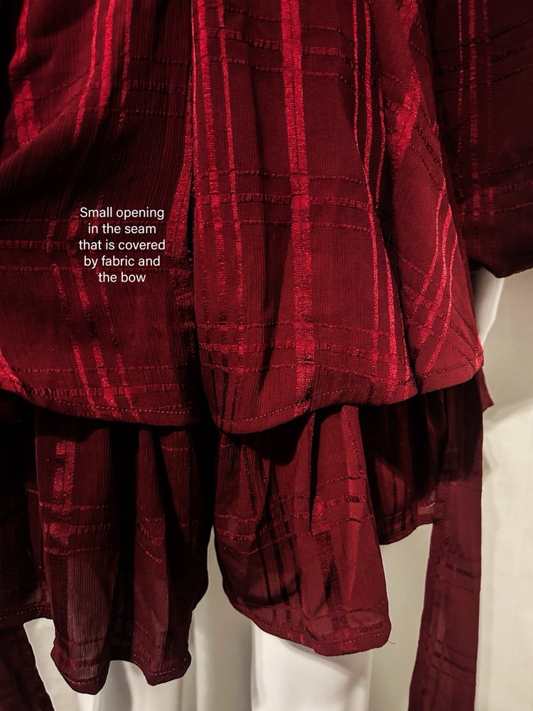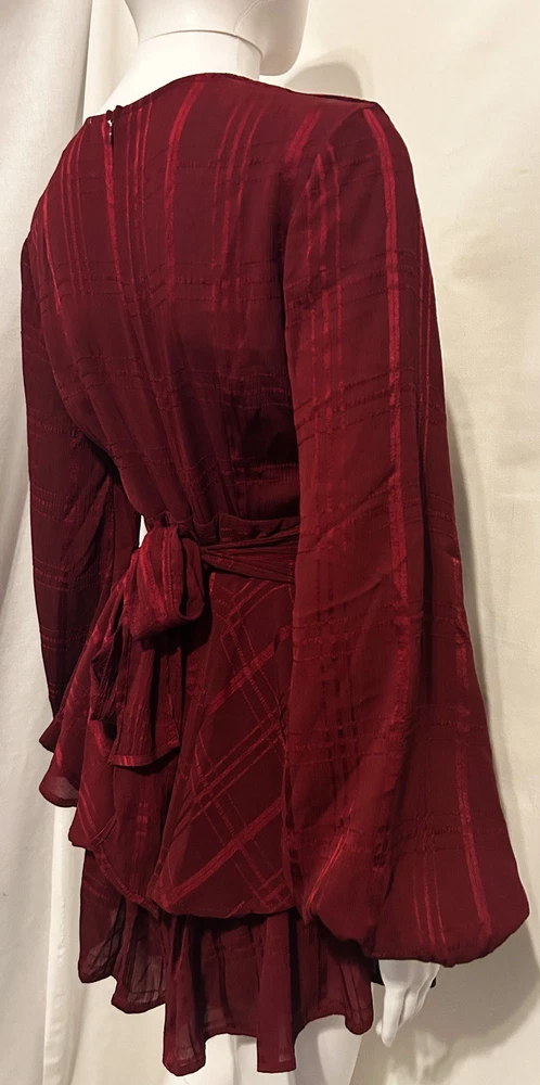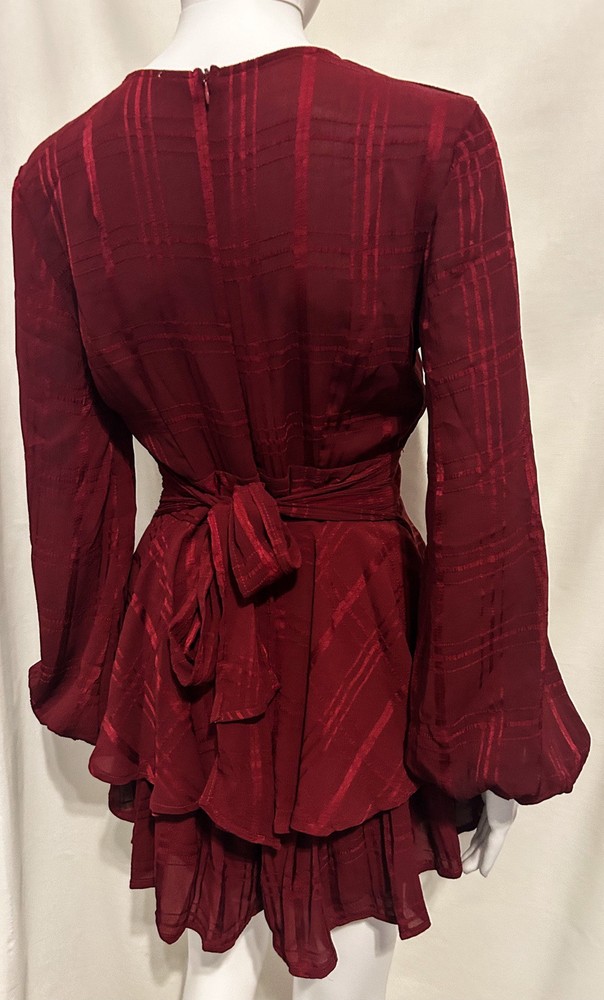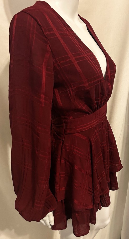Get ready to turn heads in this boho-chic Princess Polly romper, size 4! 🍷✨ Perfect for festivals, parties, or a fun night out, this deep red plaid romper features flirty ruffles, a flattering wrap design, and breezy long sleeves. 🌸💃 A small inner seam tear (hidden by the bow) adds charm and is easy to fix! 🌟 Effortlessly stylish and comfy—your new fave outfit awaits! 🥂🎶 A small tear in the inner seam (hidden by fabric and bow) and priced accordingly.