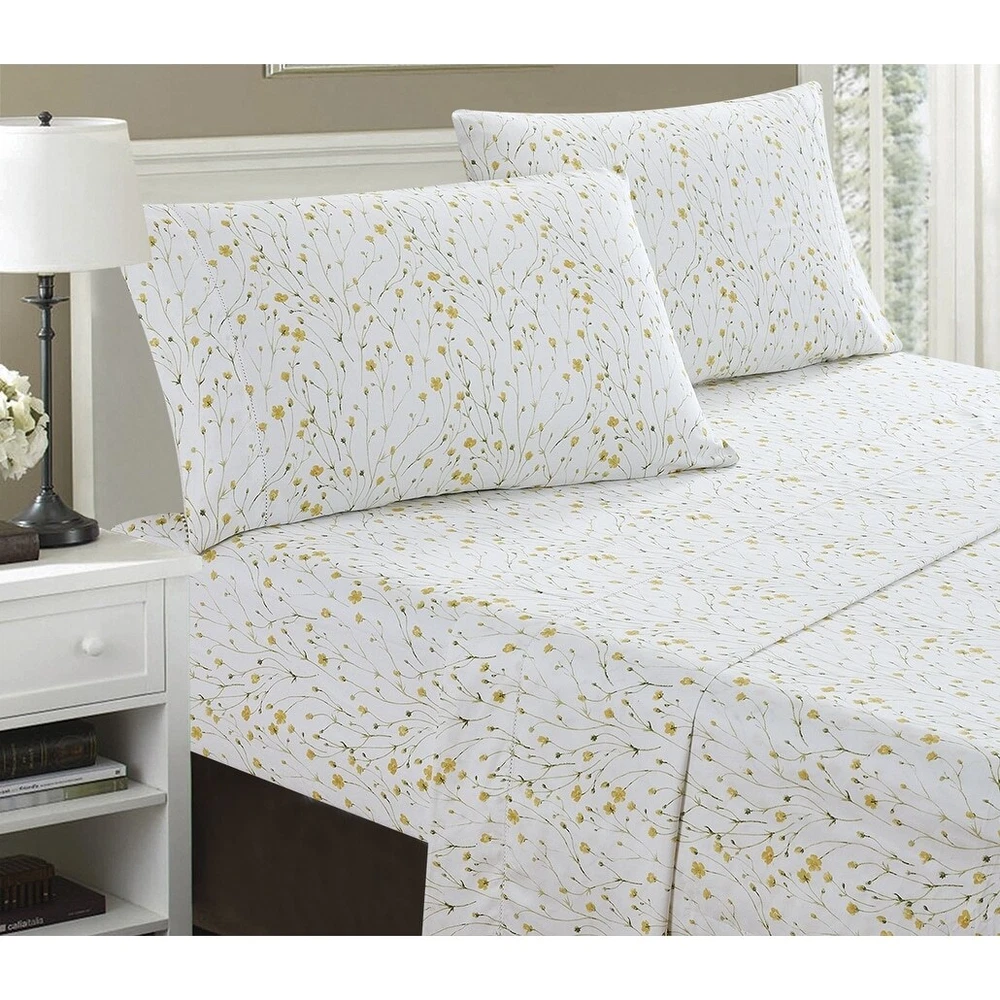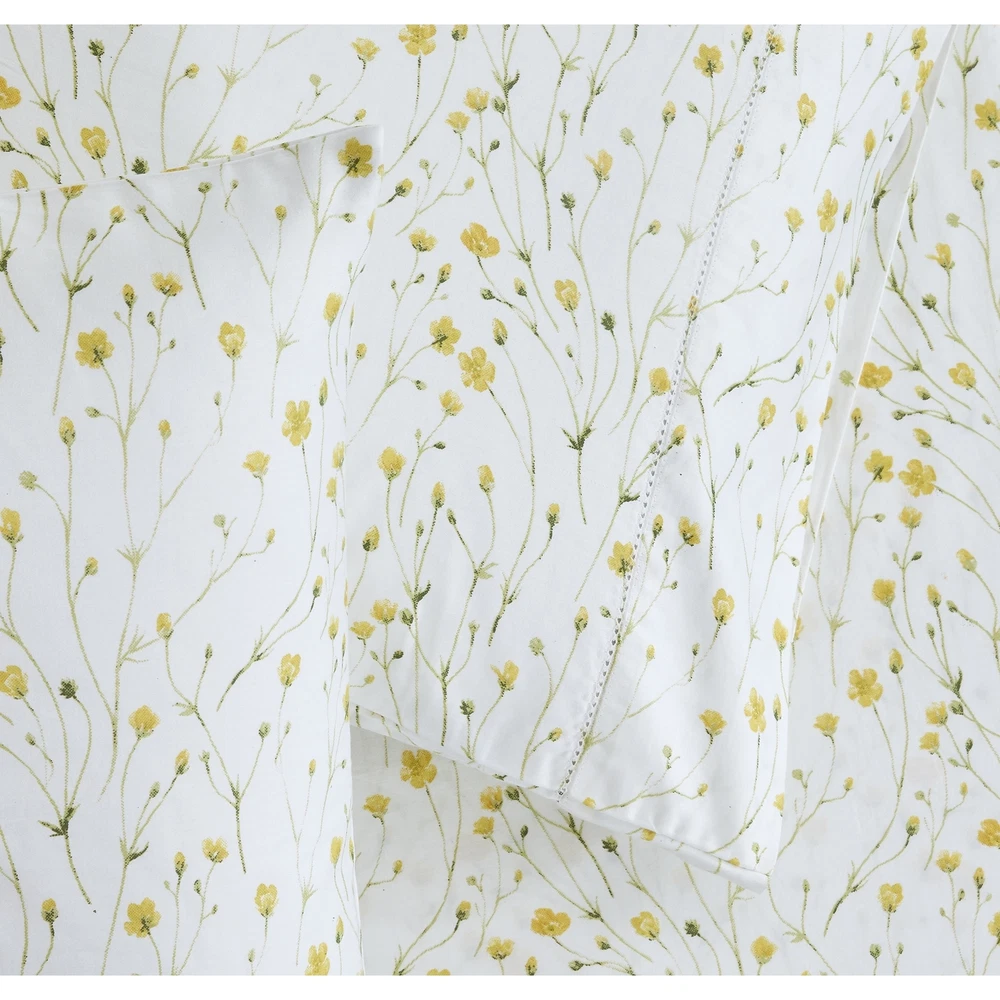 Experience the ultimate comfort and style with our Printed Design Cotton Collection 400TC Hemstitch Buttercup Sheet Set. Made of high-quality cotton, this sheet set is soft, breathable, and easy to care for. The charming buttercup print will brighten up any bedroom decor, while the hemstitch detailing adds a touch of elegance. Available in a range of sizes, this sheet set is perfect for any bed.Features: High-quality cotton material Charming buttercup print Hemstitch detailing Easy care, machine washable Available in multiple sizes Free Shipping Over $49.99* Details Printed Design Cotton Collection 400TC Hemstitch Buttercup Sheet Set Product Description: Experience the ultimate comfort and style with our Printed Design Cotton Collection 400TC Hemstitch Buttercup Sheet Set. Made of high-quality cotton, this sheet set is soft, breathable, and easy to care for. The charming buttercup print will brighten up any bedroom decor, while the hemstitch detailing adds a touch of elegance. Available in a range of sizes, this sheet set is perfect for any bed. Features: High-quality cotton material Charming buttercup print Hemstitch detailing Easy care, machine washable Available in multiple sizes