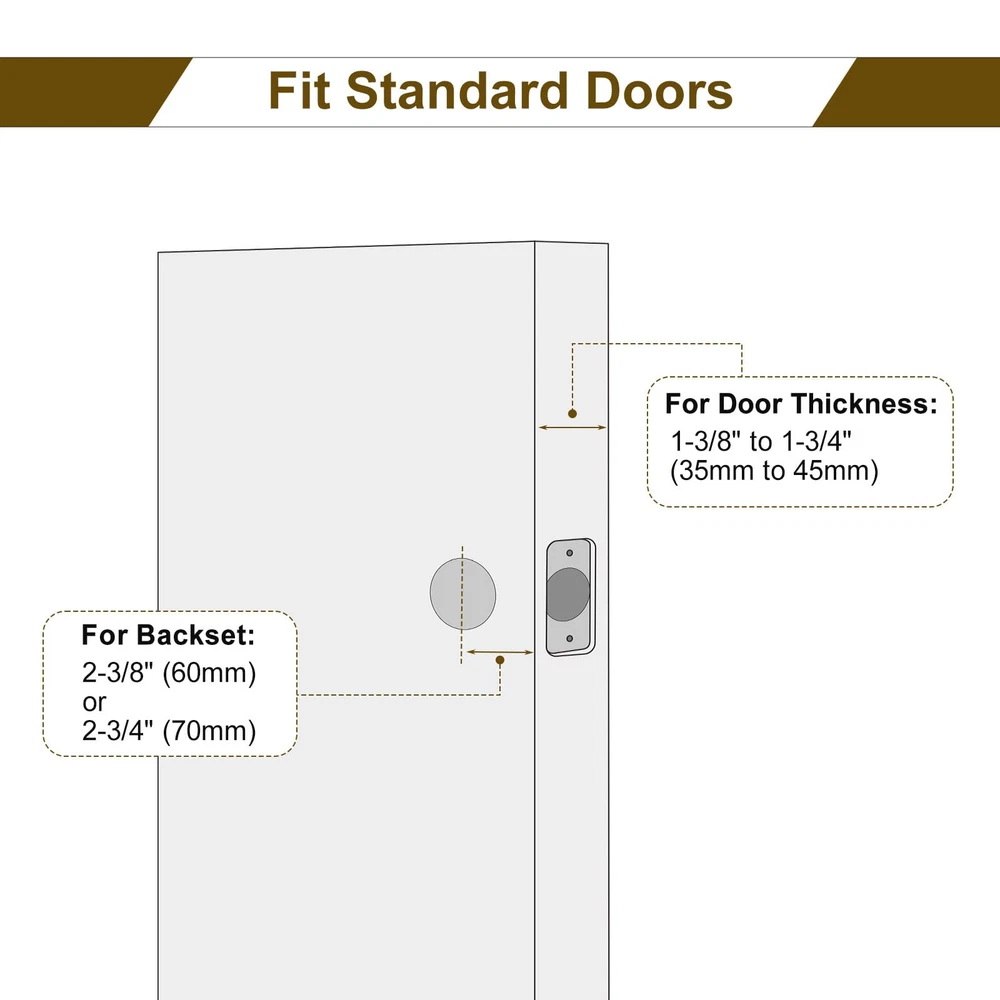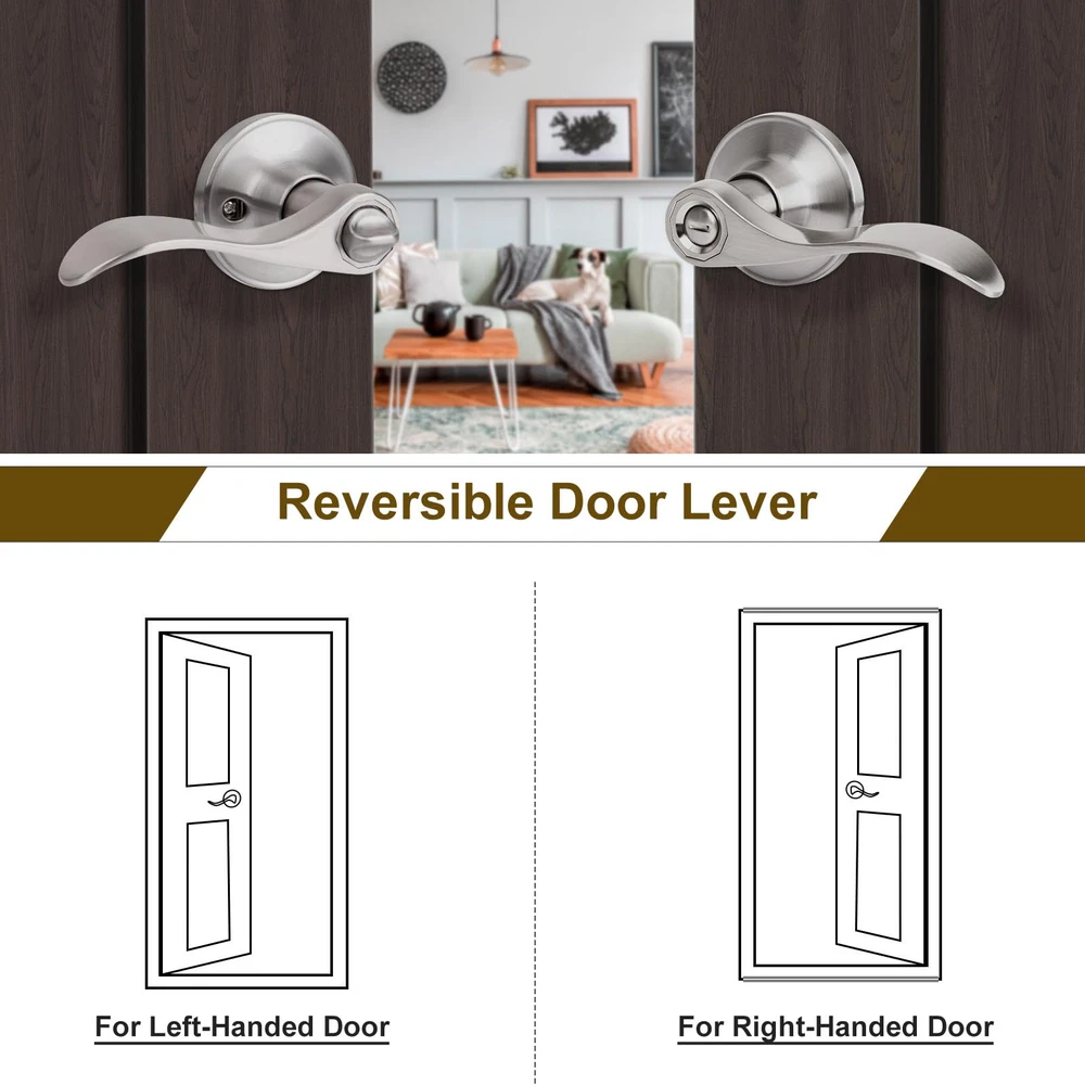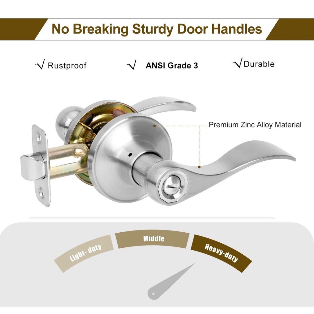 【Privacy Protection】 The door handle with lock can be used in the bedroom, bathroom, office, or any other private place by locking the inside without a key to secure your privacy. 【Door Compability】 Perfect for left or right doors with adjustable latches fitting 2-3/8" (60mm) or 1-3/4" (40mm) backsets, catering to your varied needs. 【Premium Material】 Constructed from heavy-duty zinc alloy and with the certification of ANSI Grade 3, the bedroom door handle ensures durability and rust resistance that will last years. 【Modern Design】 The satin nickel door handle knob features a trendy slim square look with wave-style handles and a stain nickel finish, providing a simple yet stylish touch to your private space 【Easy to Install】 Assembly is a breeze with only a screwdriver needed. Simple privacy door handle for easy installation.